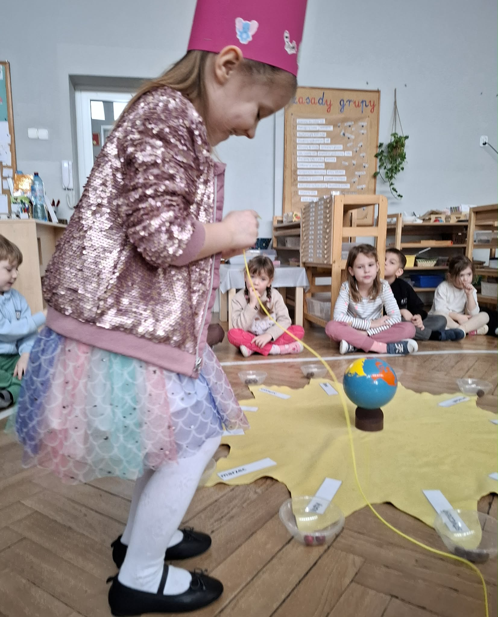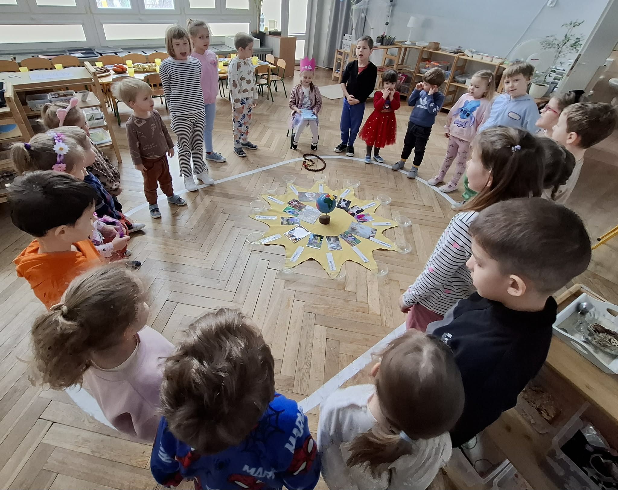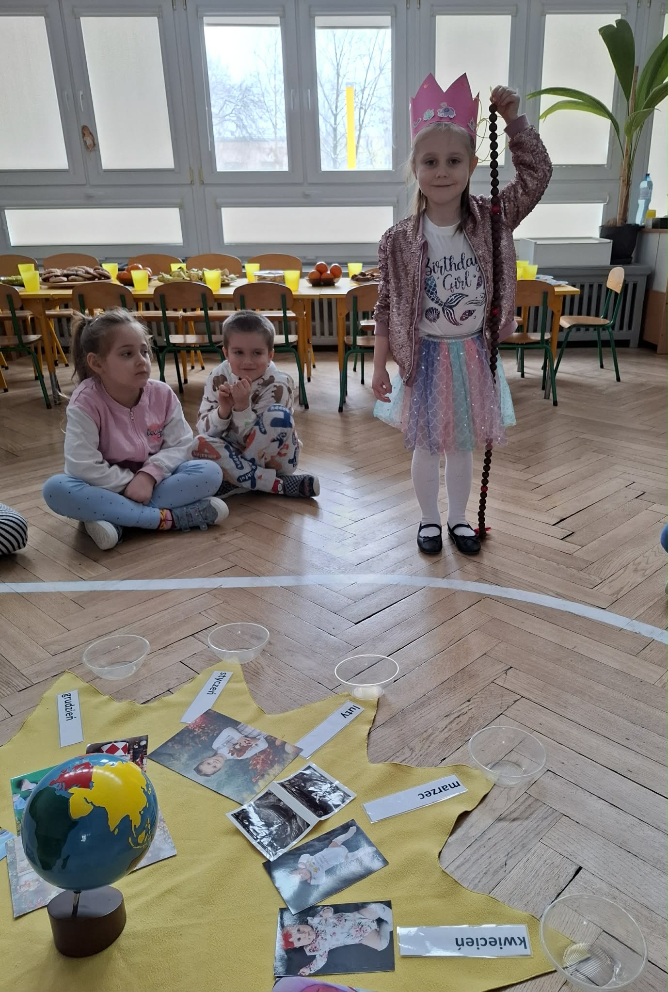Nasza Matylda skończyła 5 lat, z tej okazji odbyło się przyjęcie i montessoriańskie słoneczko, dzięki któremu Matylda mogła zobaczyć swoją linię życia. Oglądaliśmy pamiątkowe zdjęcia Matyldy, zaśpiewaliśmy głośne "Sto lat", Jasio wręczył prezent Matyldzie, przygotowany przez wszystkie dzieci. Każdy też złożył indywidualne życzenia. Matylda, na koniec poczęstowała wszystkich piernikowym ogonkiem. Matyldziu, jeszcze raz, wszystkiego najlepszego