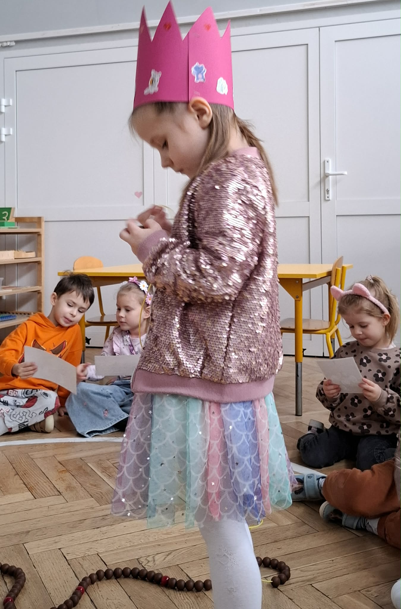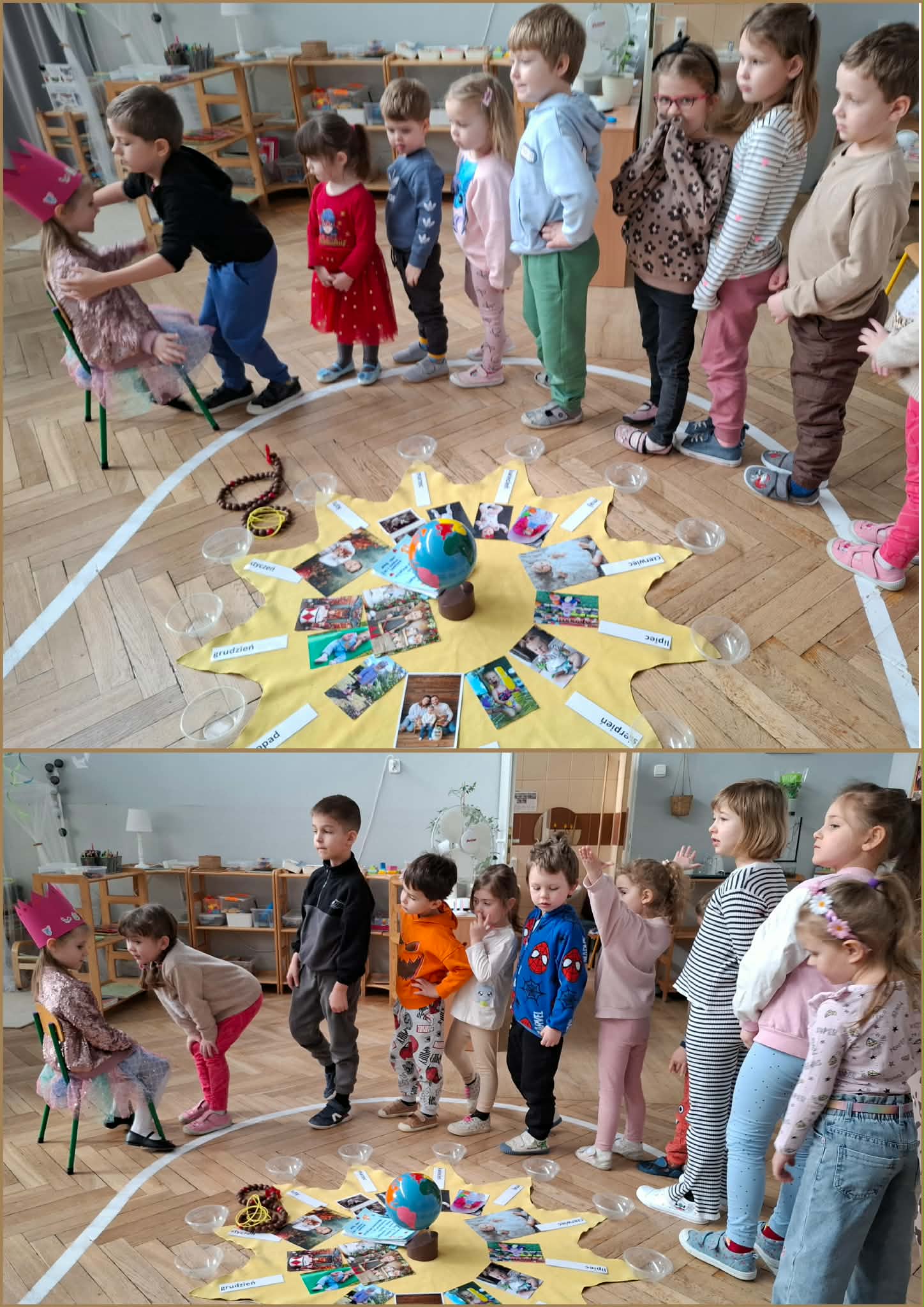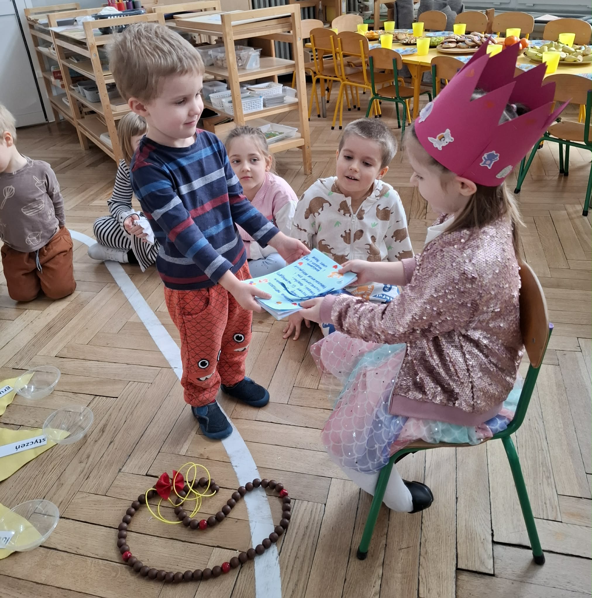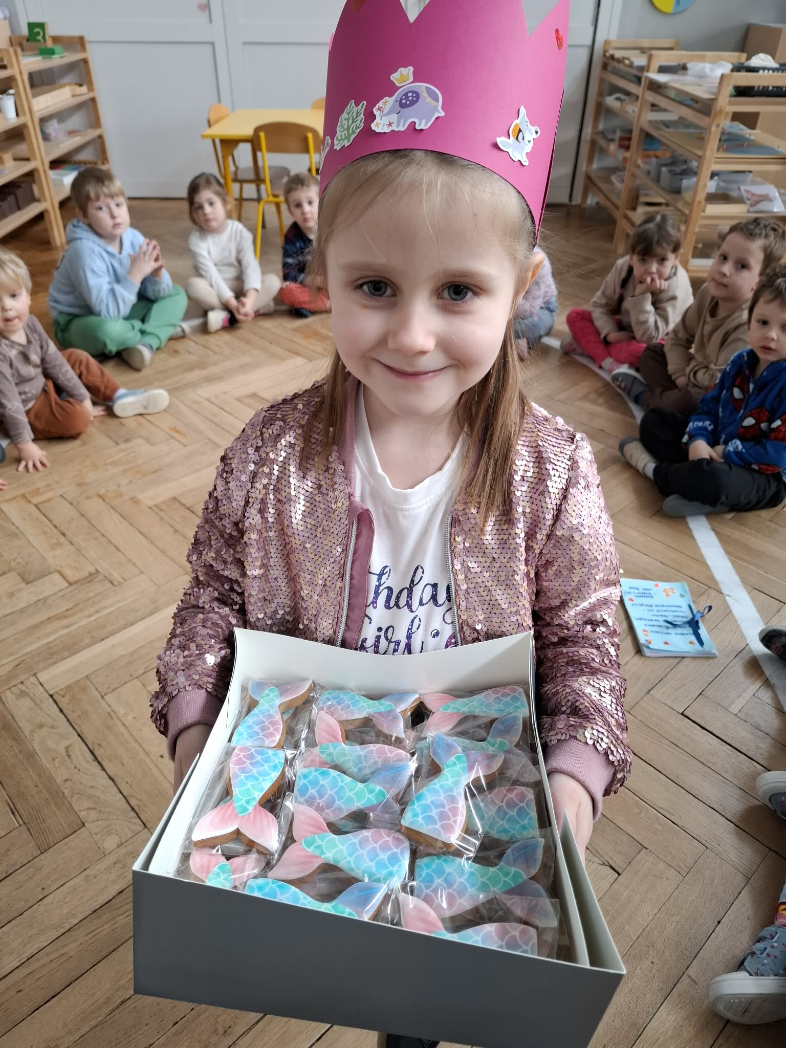Nasza Matylda skończyła 5 lat, z tej okazji odbyło się przyjęcie i montessoriańskie słoneczko, dzięki któremu Matylda mogła zobaczyć swoją linię życia. Oglądaliśmy pamiątkowe zdjęcia Matyldy, zaśpiewaliśmy głośne "Sto lat", Jasio wręczył prezent Matyldzie, przygotowany przez wszystkie dzieci. Każdy też złożył indywidualne życzenia. Matylda, na koniec poczęstowała wszystkich piernikowym ogonkiem. Matyldziu, jeszcze raz, wszystkiego najlepszego