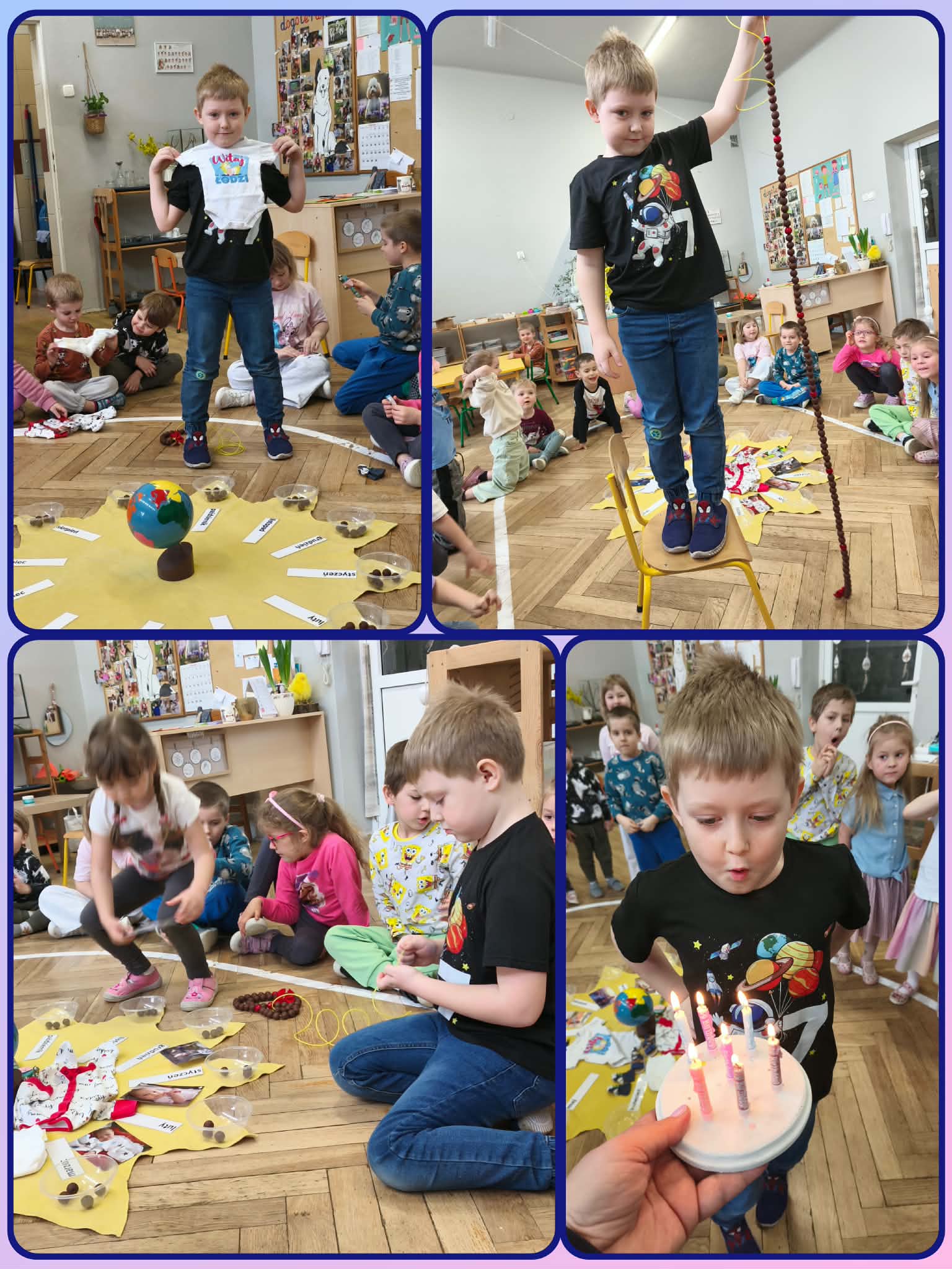 Dziś po raz kolejny obchodziliśmy 7 urodziny tym razem Pawła. Wszyscy z ochotą oglądali zdjęcia Pawła z wczesnego dzieciństwa oraz jego pamiątki, ubranka i zabawki. Składanie życzeń, głośne "Sto lat", zdmuchiwanie świeczek oraz wspólny poczęstunek były ważnym punktem tej kosmicznej uroczystości. Paweł od września wyrusza w nową drogę - do szkoły, mamy nadzieję, że również tam spotka tak fajnych kolegów i koleżanki. Powodzenia Pawełku !