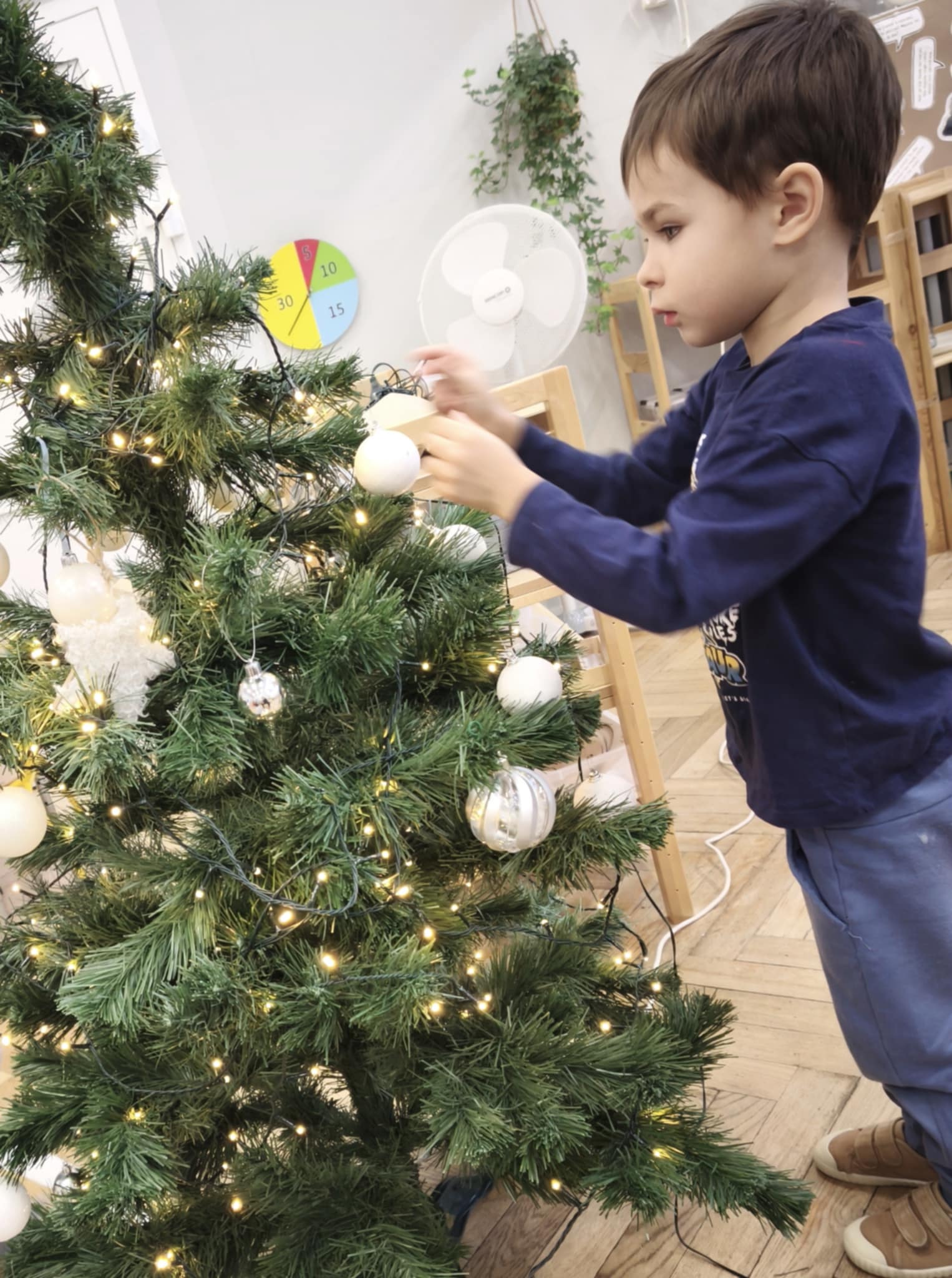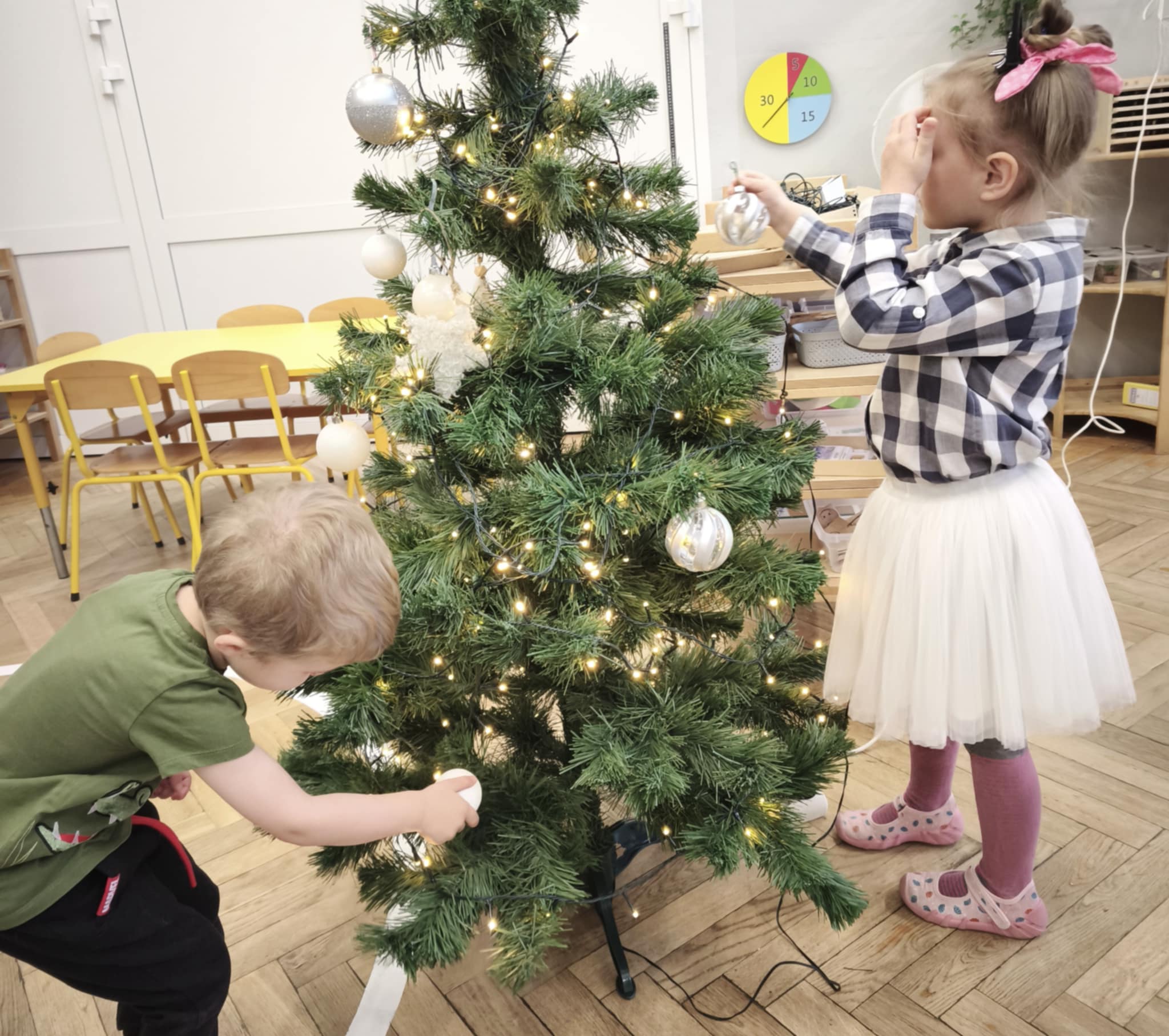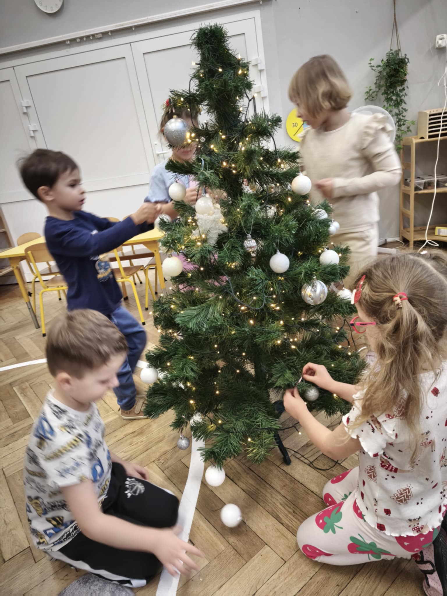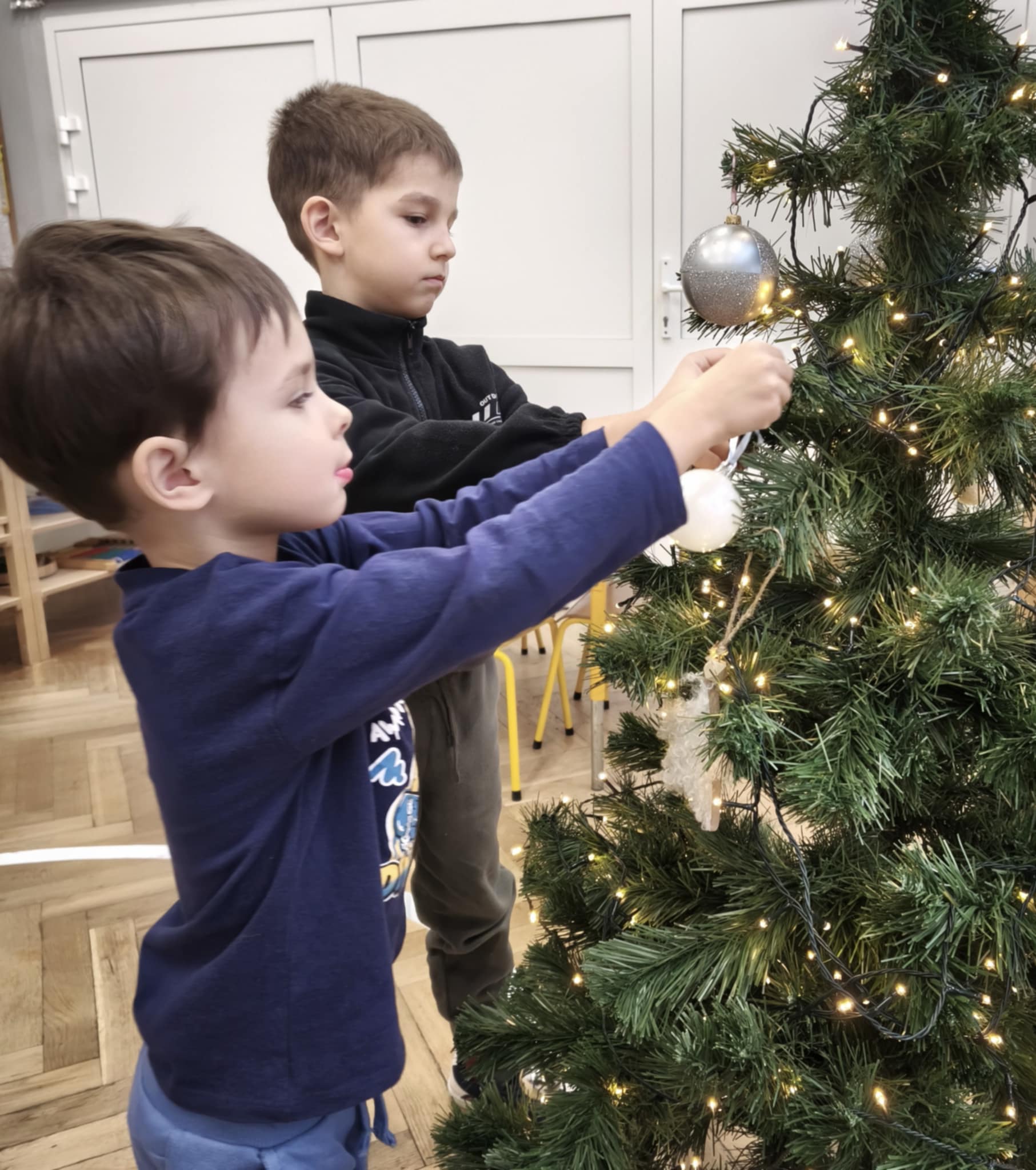 Święta Bożego Narodzenia zbliżają się wielkimi krokami dlatego w naszej sali zagościła już choinka. Wszyscy z wielkim zapałem porządkowali ozdoby i zawieszali je na drzewku. Naszym pracom towarzyszyły kolędy, których dźwięki rozbrzmiewały w całym przedszkolu.