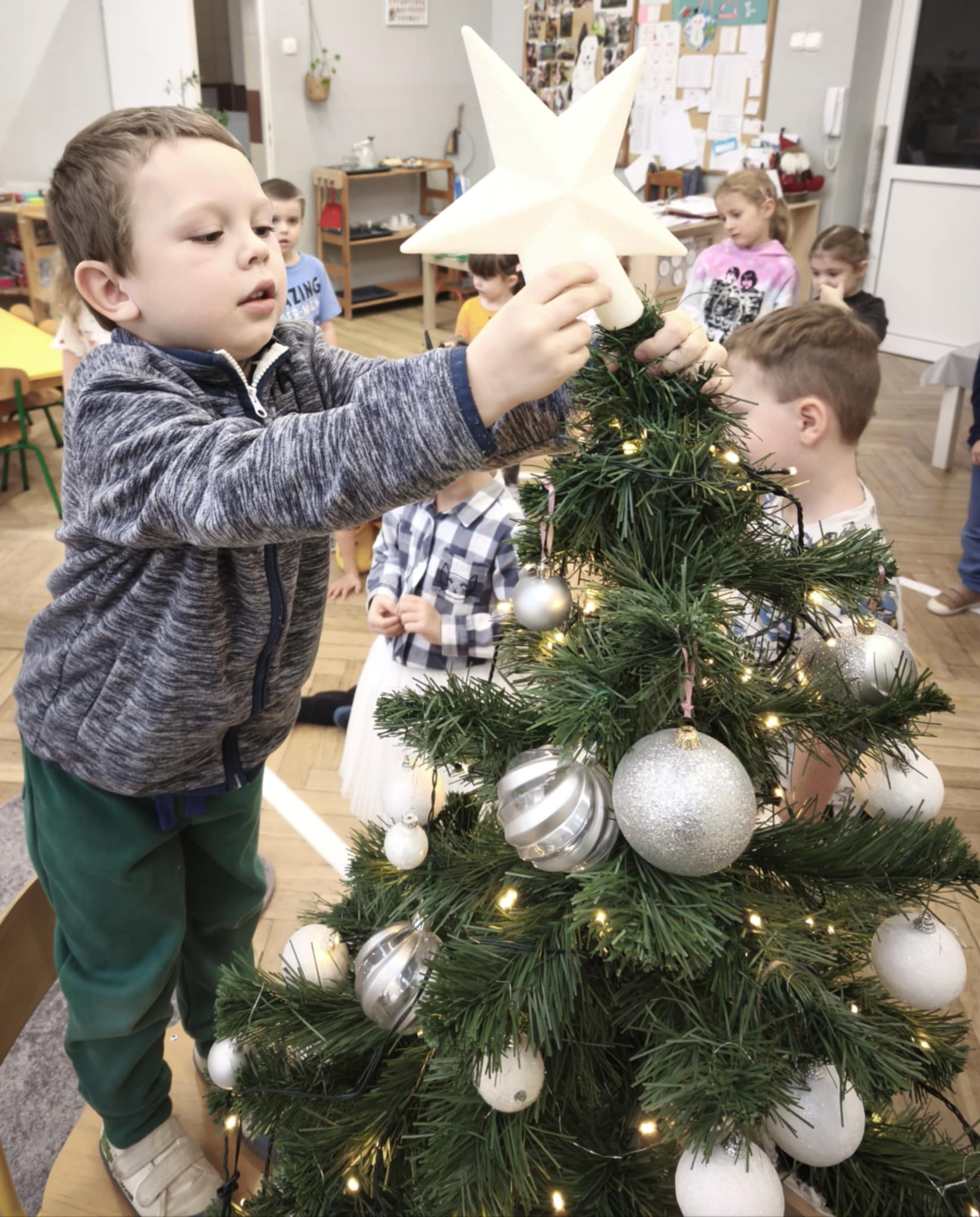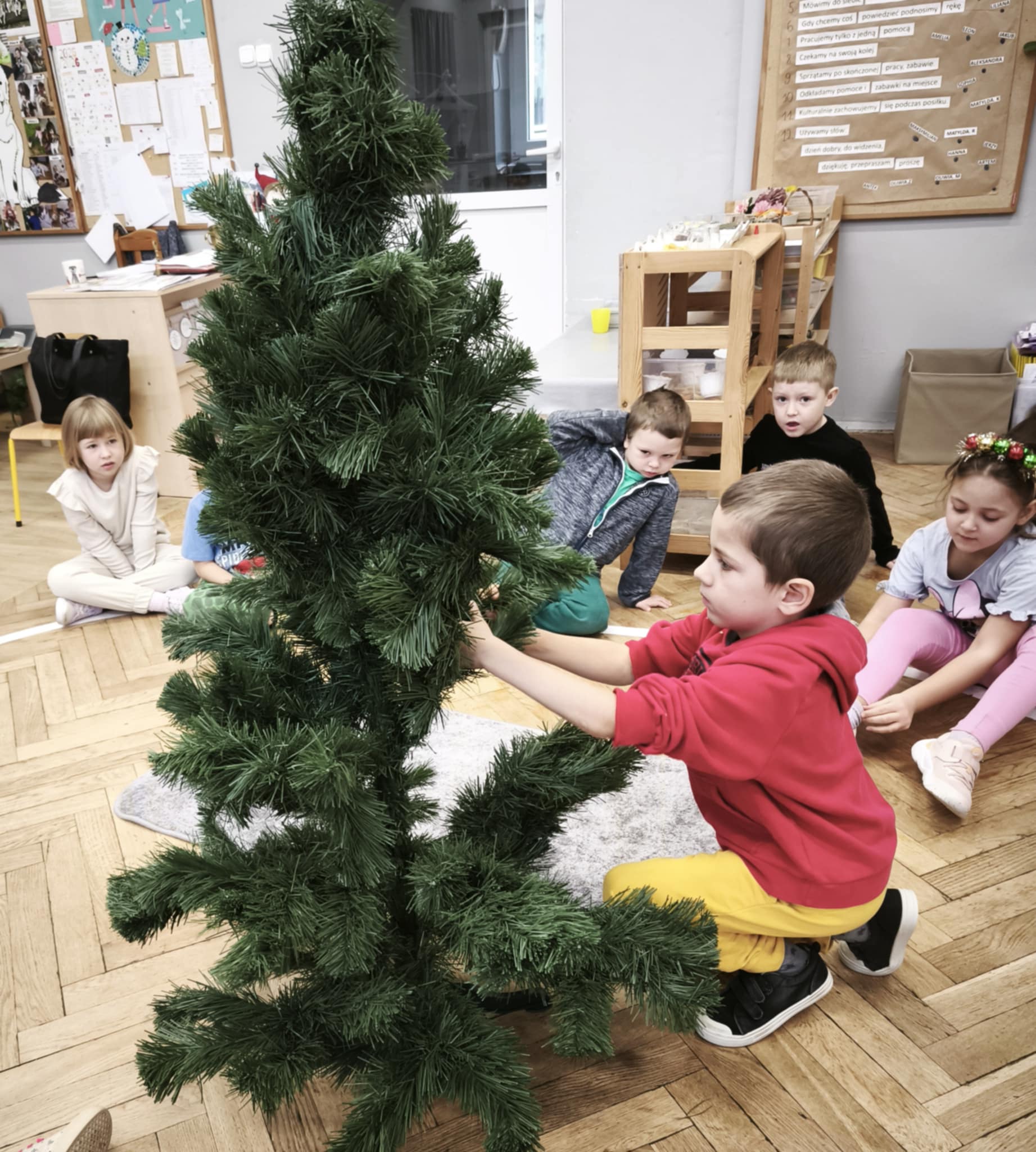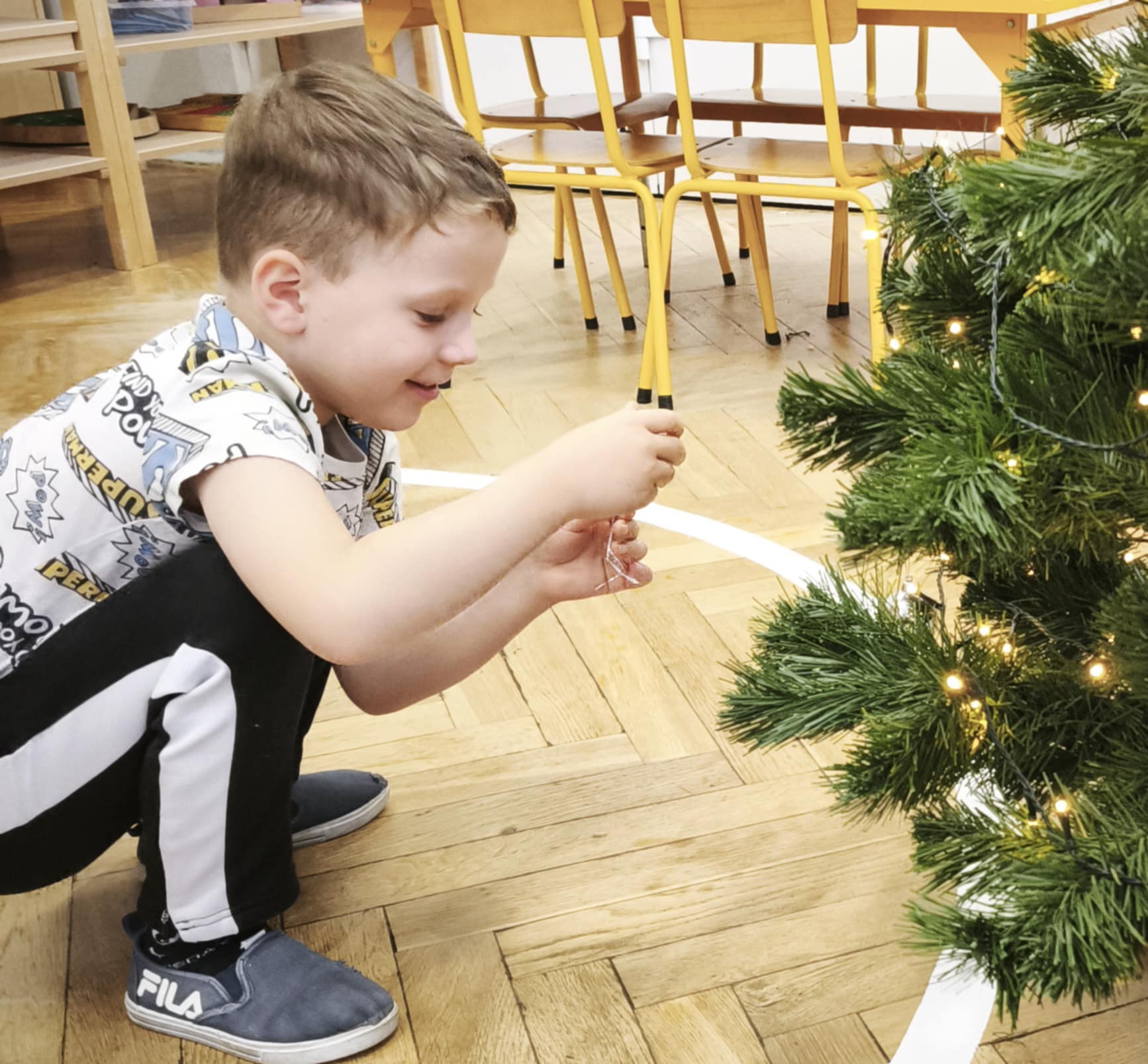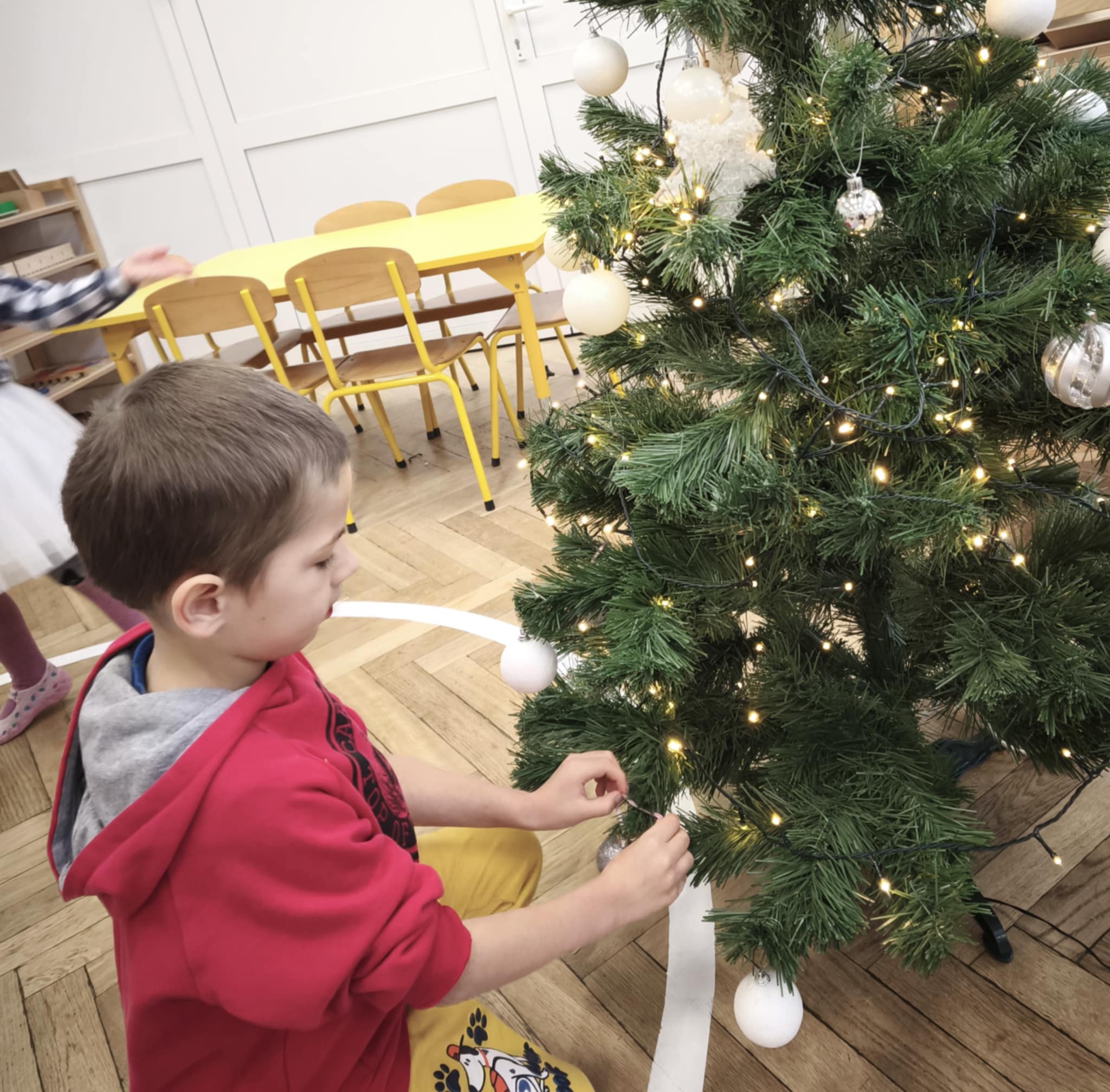 Święta Bożego Narodzenia zbliżają się wielkimi krokami dlatego w naszej sali zagościła już choinka. Wszyscy z wielkim zapałem porządkowali ozdoby i zawieszali je na drzewku. Naszym pracom towarzyszyły kolędy, których dźwięki rozbrzmiewały w całym przedszkolu.