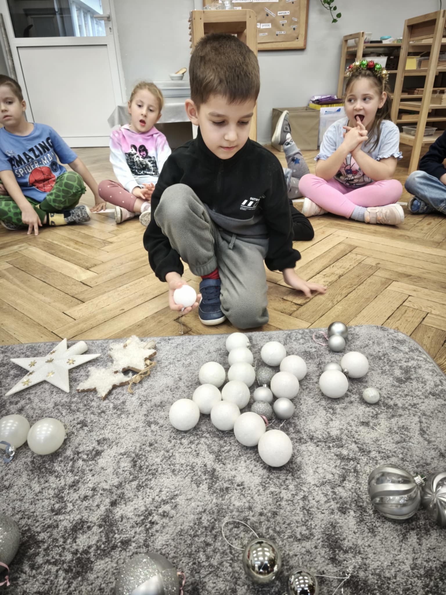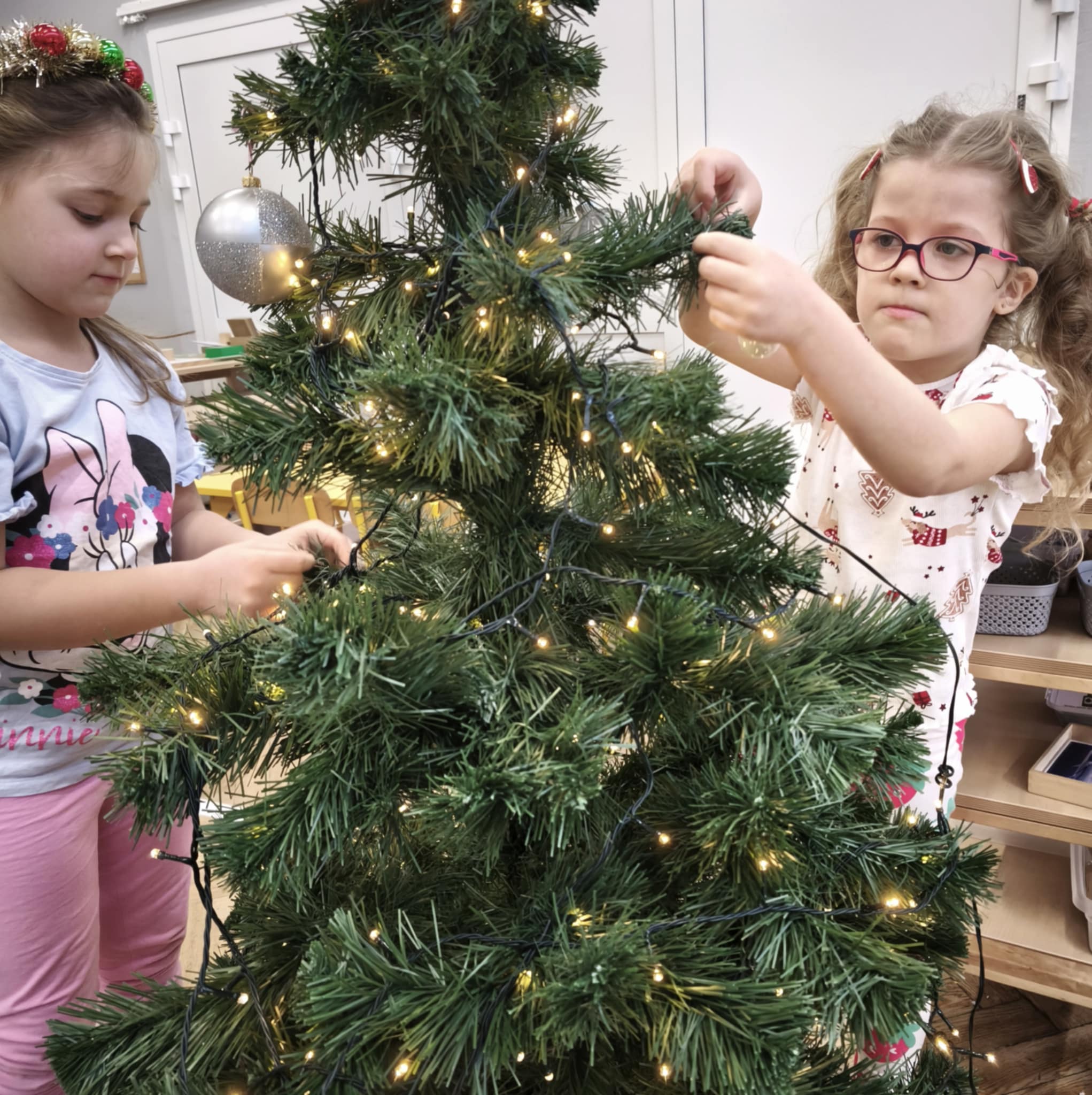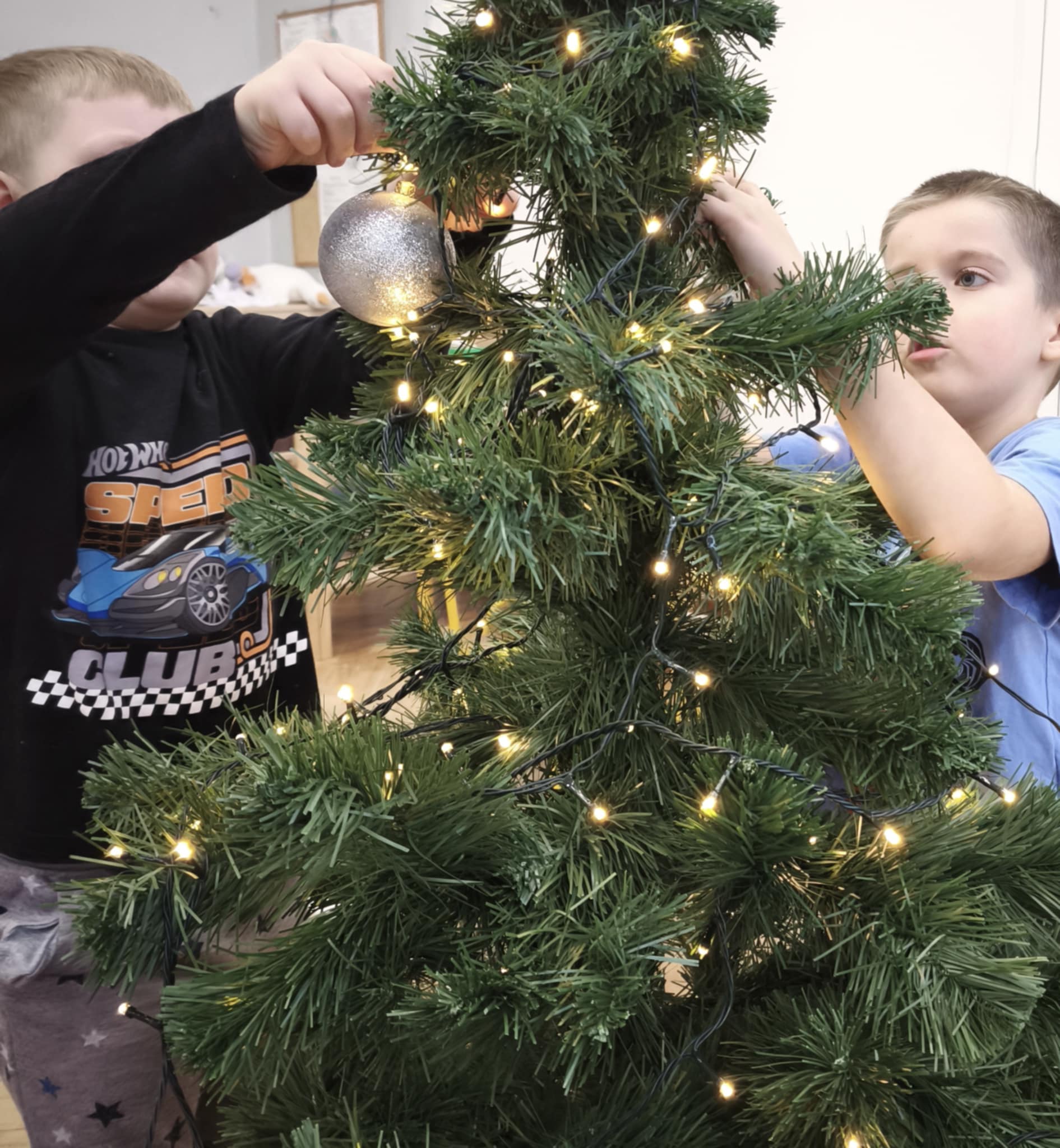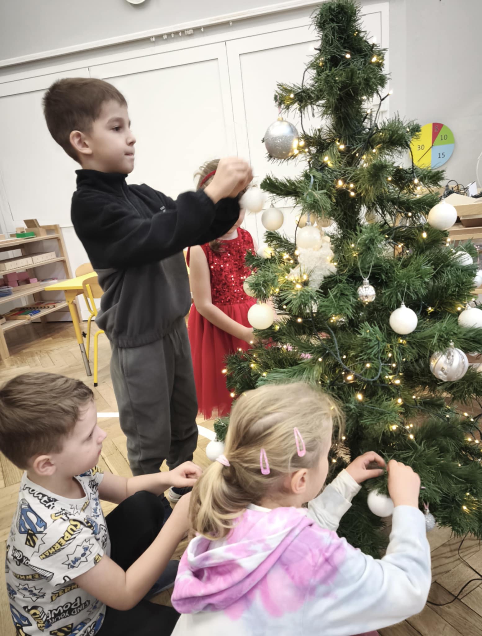 Święta Bożego Narodzenia zbliżają się wielkimi krokami dlatego w naszej sali zagościła już choinka. Wszyscy z wielkim zapałem porządkowali ozdoby i zawieszali je na drzewku. Naszym pracom towarzyszyły kolędy, których dźwięki rozbrzmiewały w całym przedszkolu.