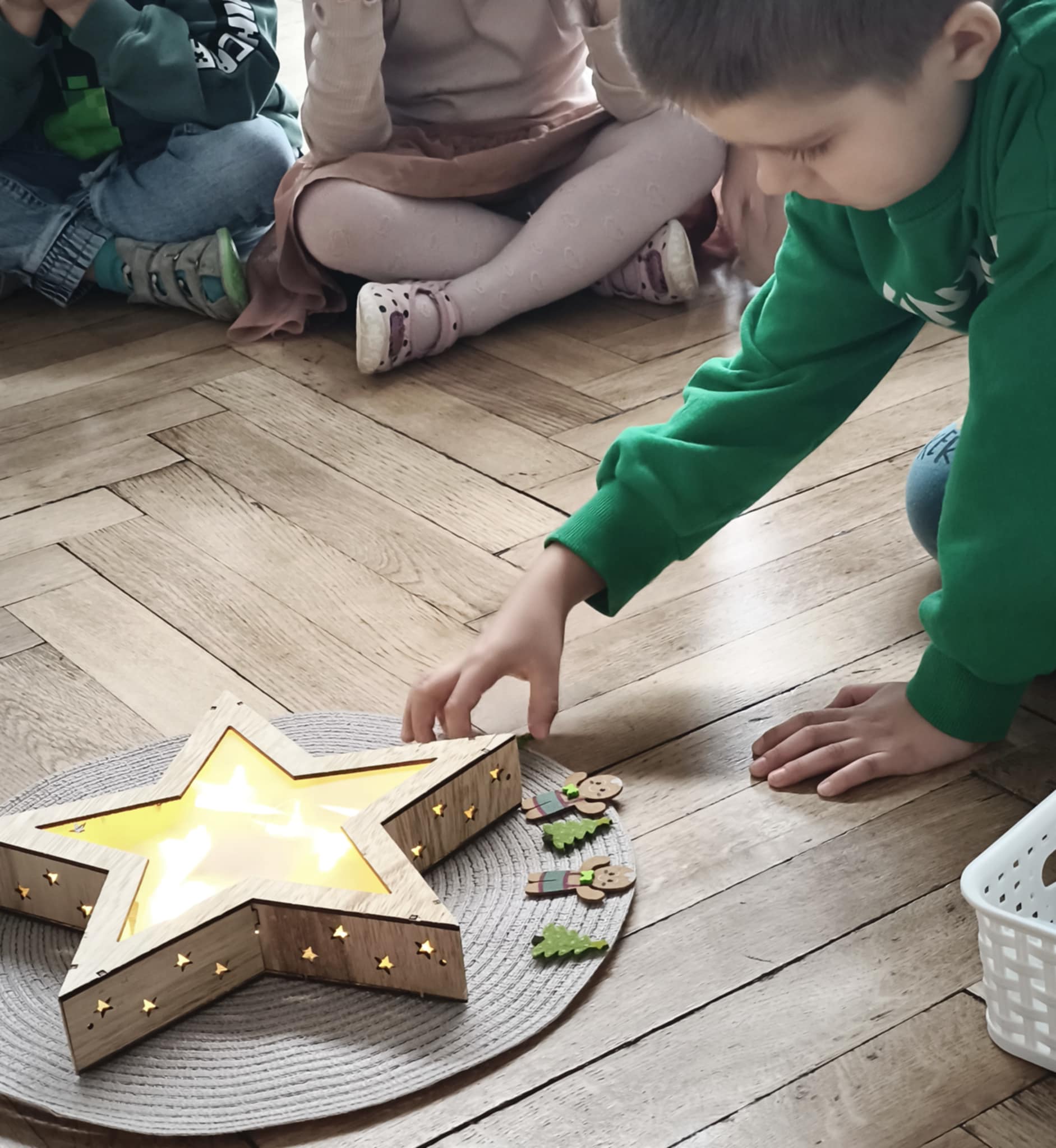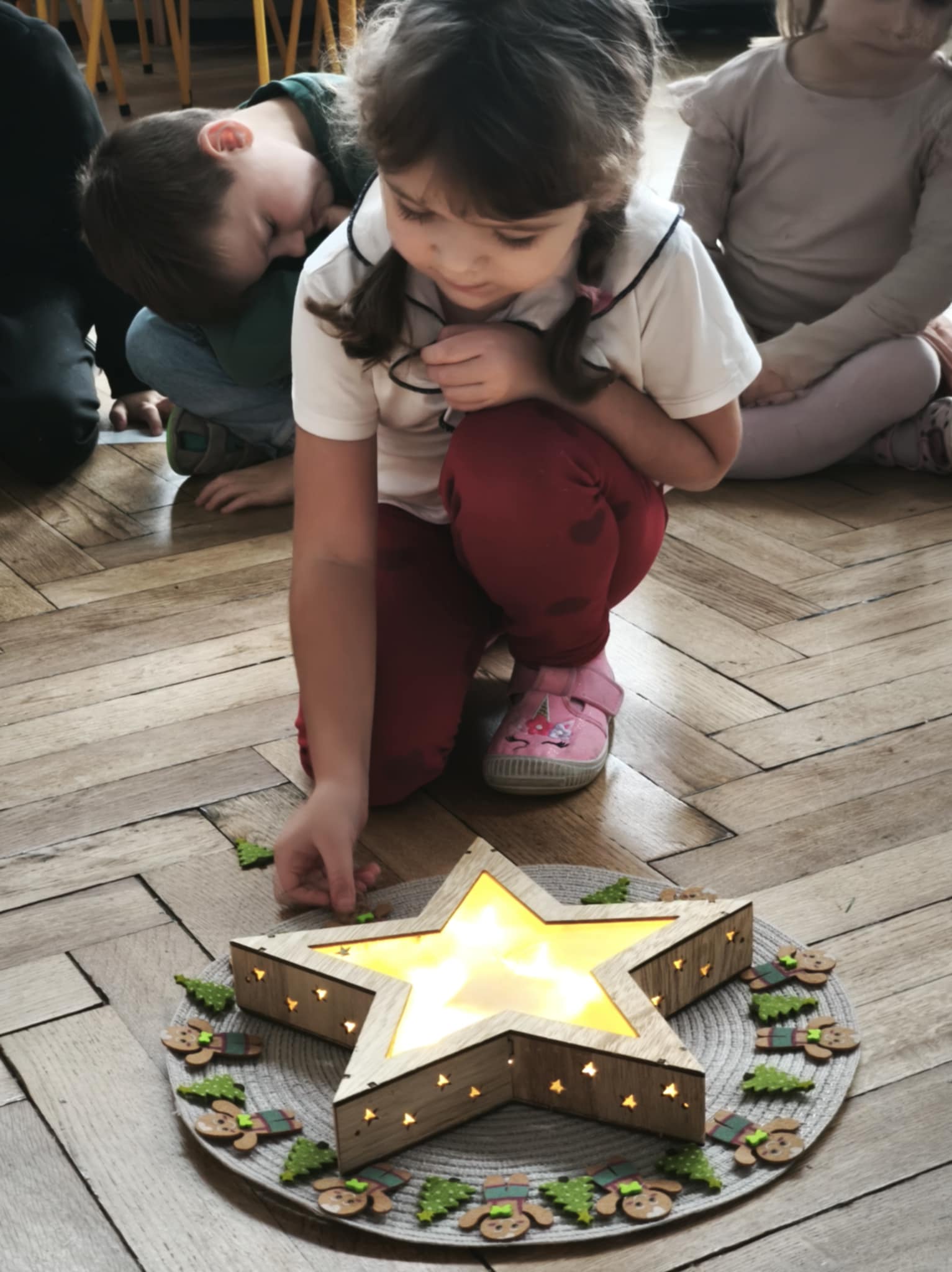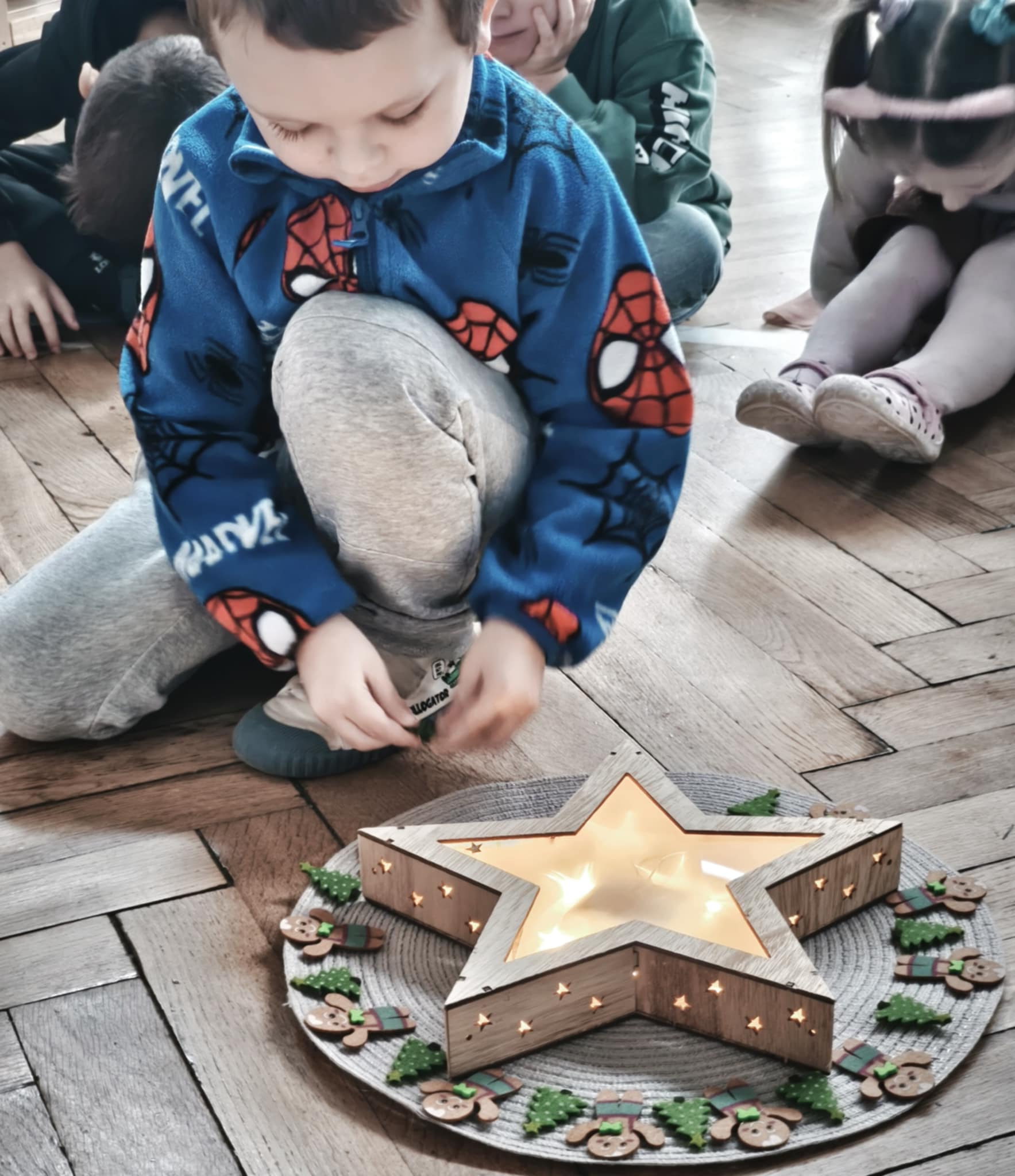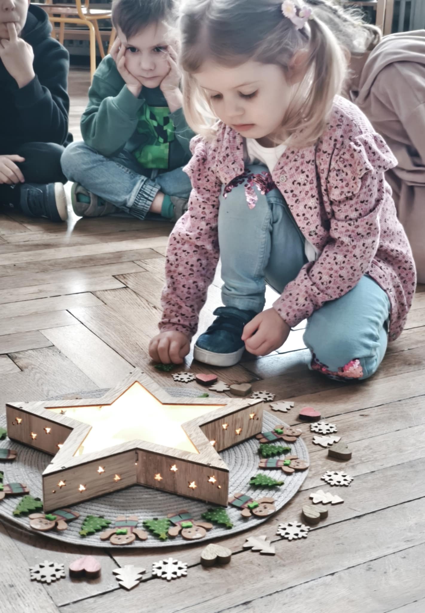 Święta Bożego Narodzenia zbliżają się wielkimi krokami dlatego w naszej sali zagościła już choinka. Wszyscy z wielkim zapałem porządkowali ozdoby i zawieszali je na drzewku. Naszym pracom towarzyszyły kolędy, których dźwięki rozbrzmiewały w całym przedszkolu.