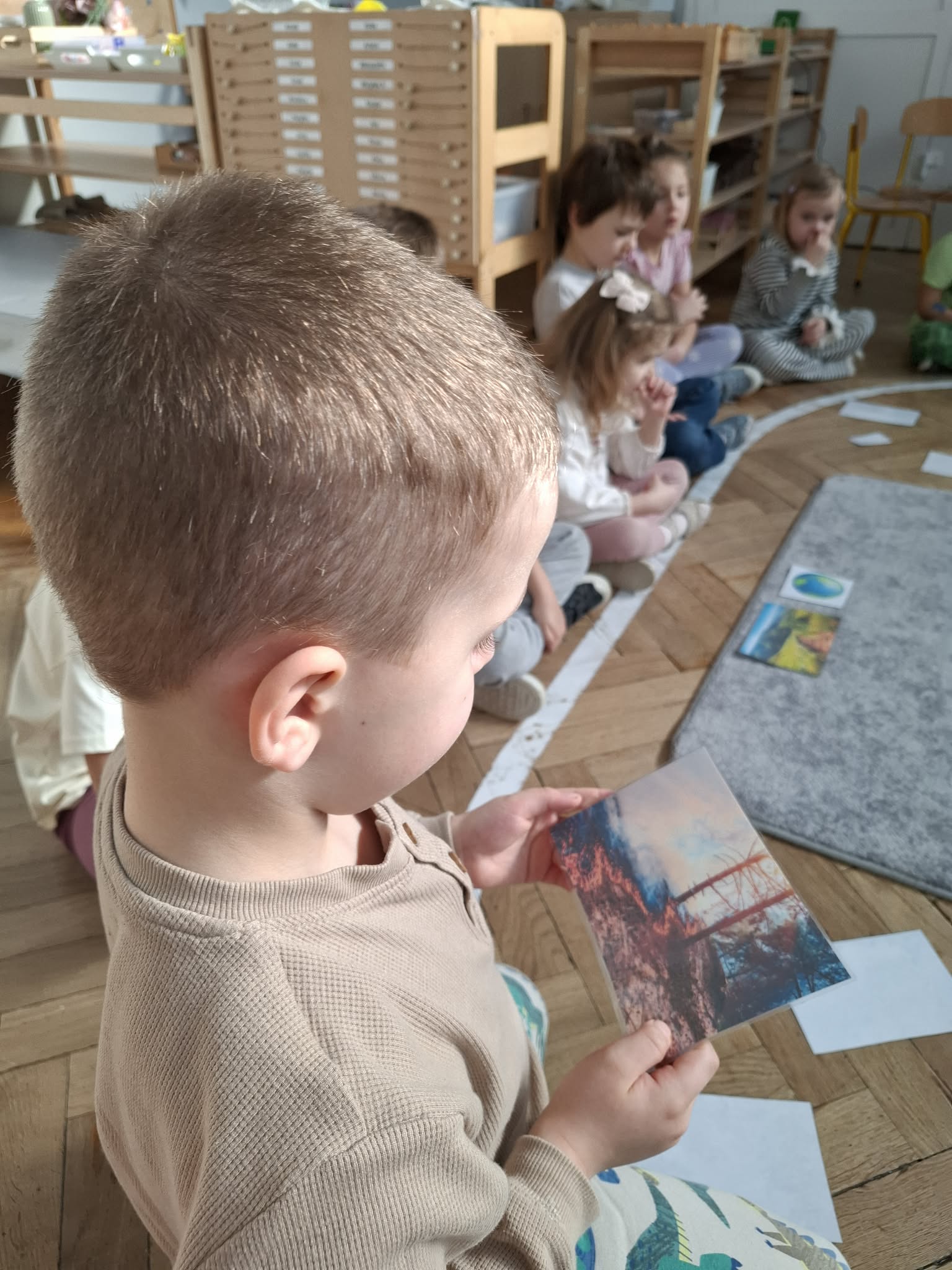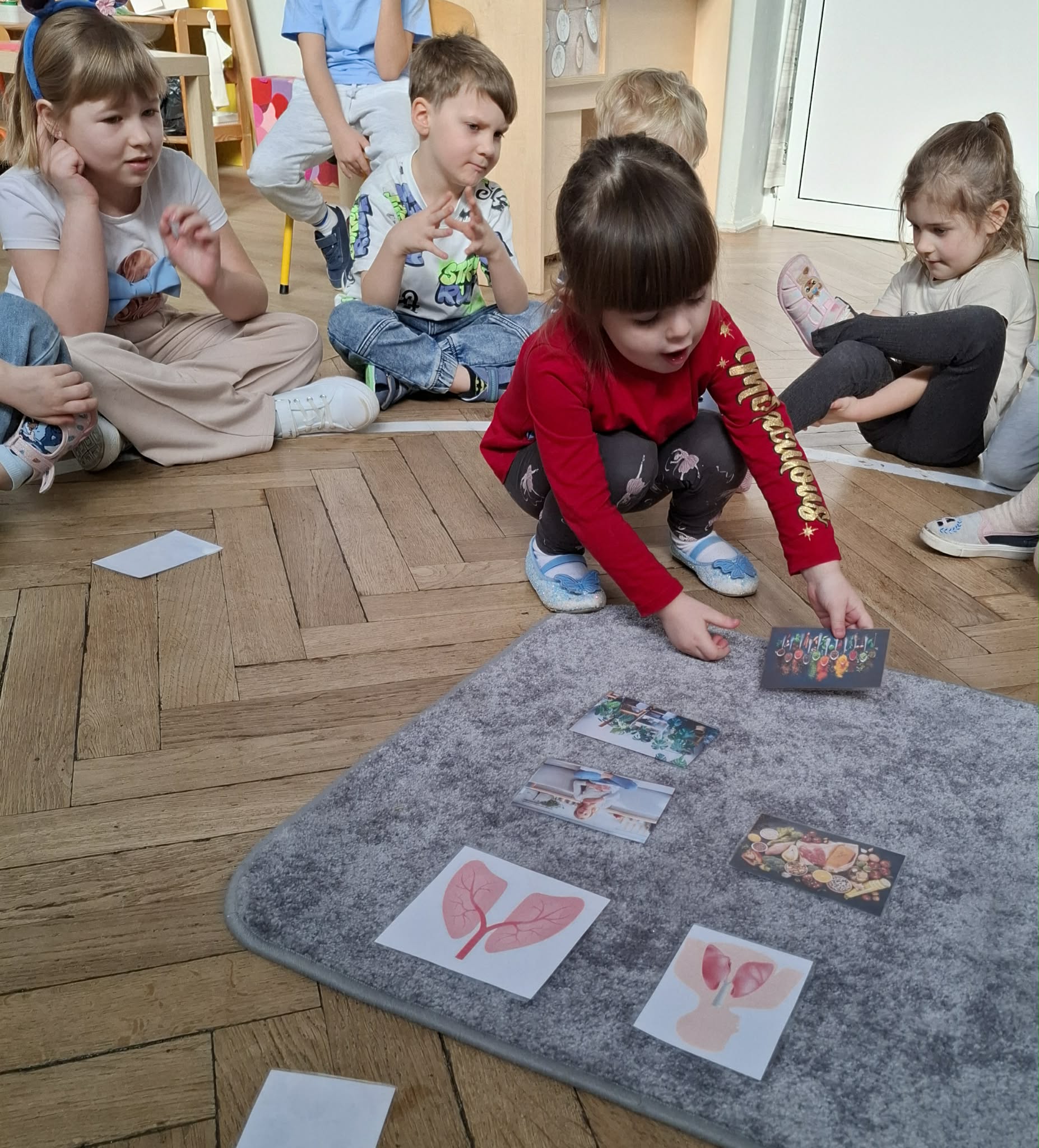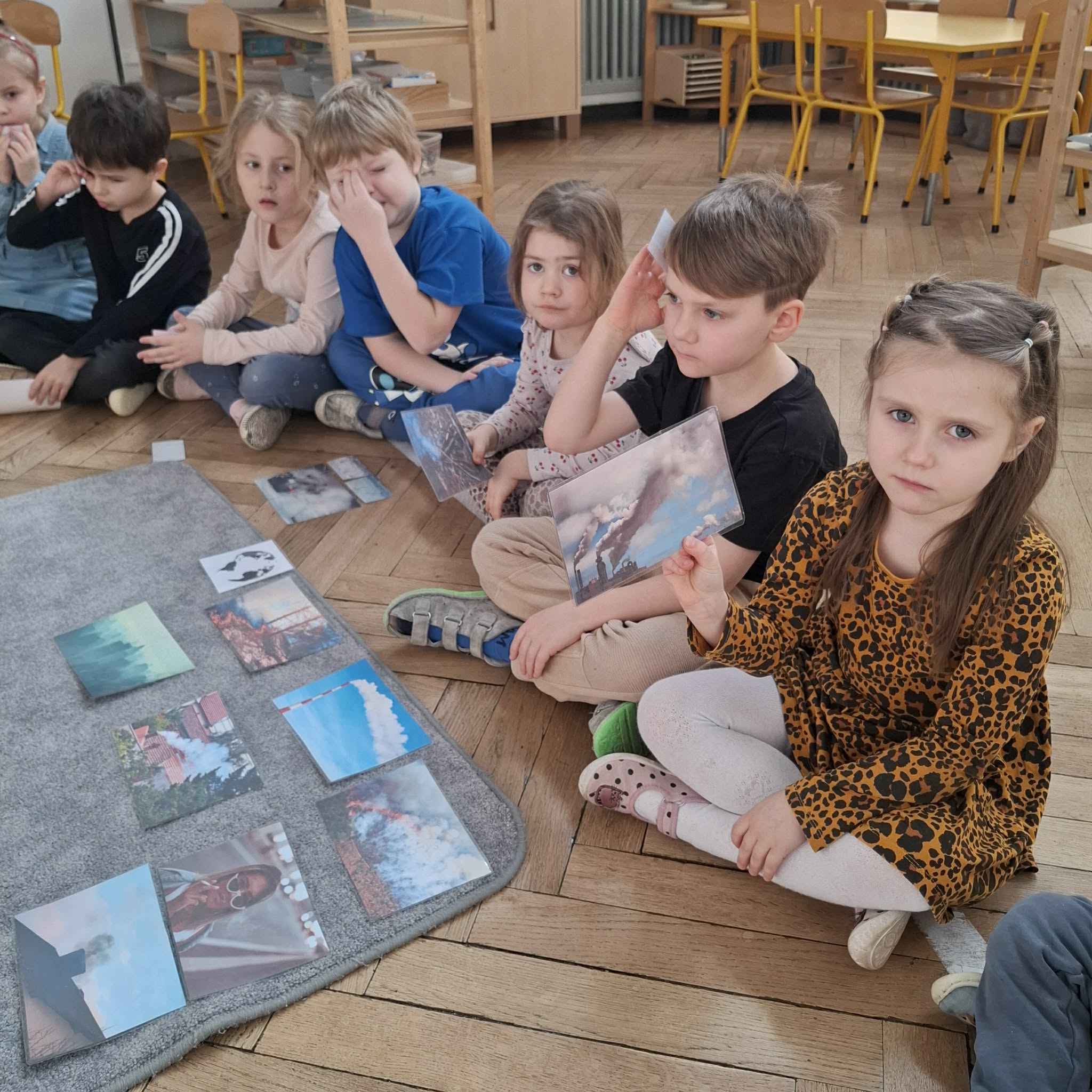 W ramach realizacji programu rozmawiałyśmy z dziećmi o znaczeniu czystego powietrza dla zdrowia i środowiska. W czasie spaceru po okolicy, podczas którego dzieci obserwowały źródła dymu, rozmawialiśmy o tym, co powoduje zanieczyszczenie powietrza. Spotkanie osób poruszających się na rowerach i hulajnogach, stały się okazją do rozmowy o ekologicznych alternatywach dla samochodów. W czasie zajęć w grupie rozmawialiśmy również na temat ochrony lasów, i konieczności dbania o przyrodę.