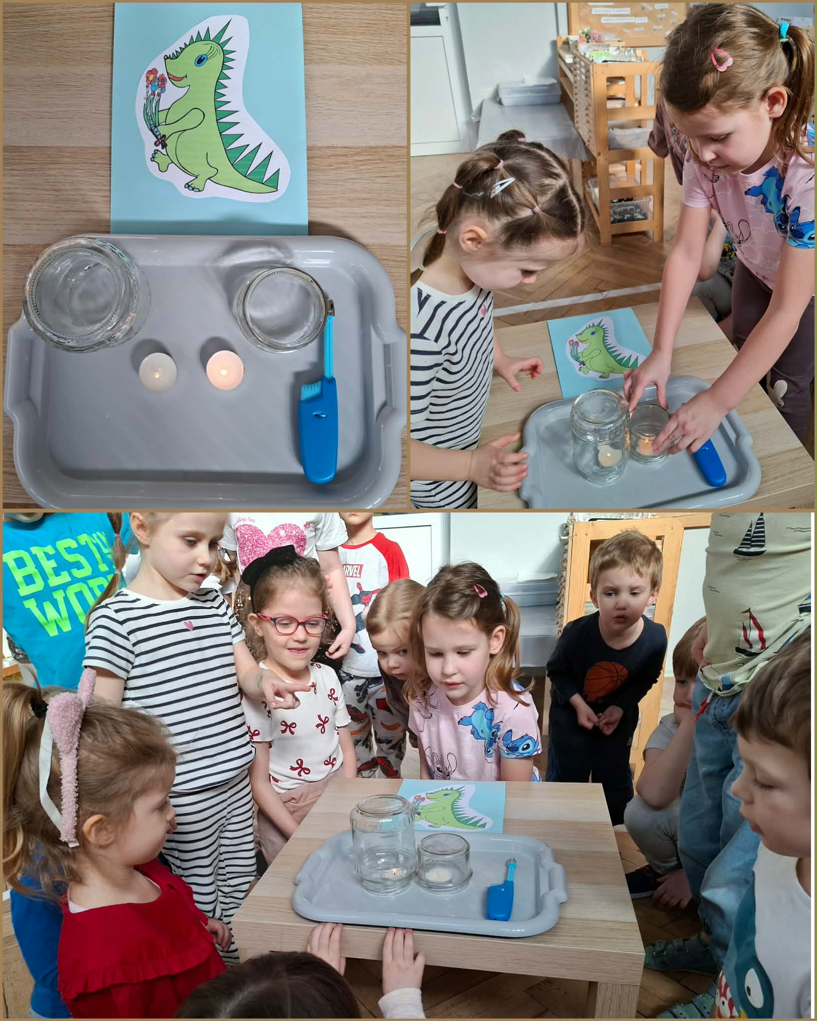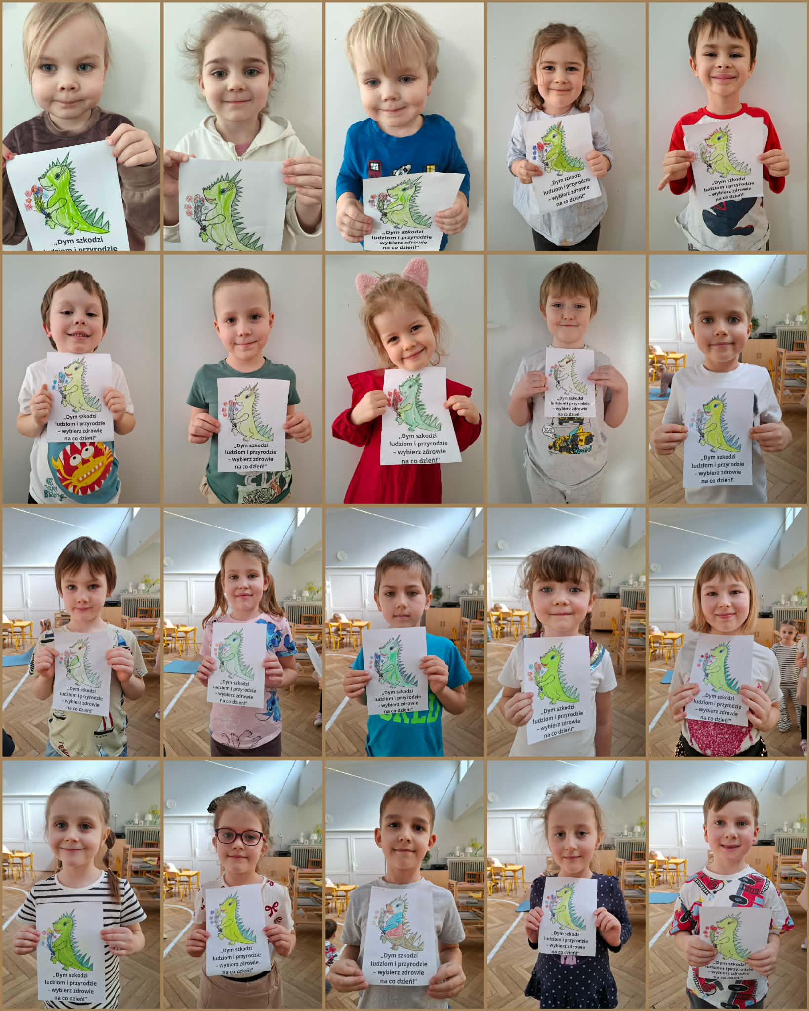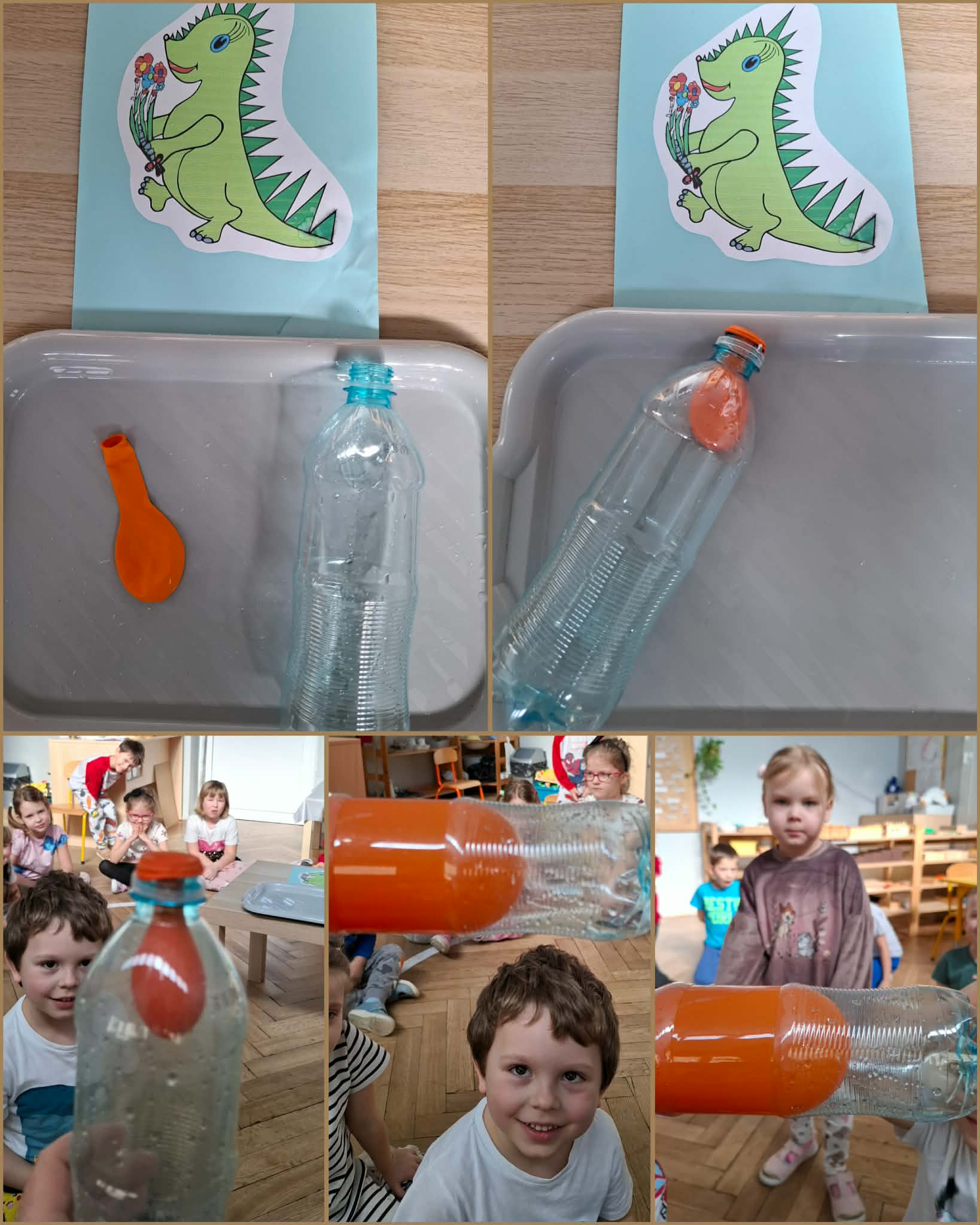 Dinek to smok, bohater edukacyjny programu „Czyste powietrze wokół nas”, który towarzyszył dzieciom podczas zajęć. Jest przyjazną postacią przewodnika, pomagającą zrozumieć, czym jest powietrze, skąd biorą się zanieczyszczenia oraz dlaczego należy dbać o zdrowie i środowisko. Tym razem podczas zajęć Dinek "przygotował" proste doświadczenia, które miały pokazać, że powietrze istnieje, mimo że go nie widzimy. Dzieci z zaangażowaniem brały udział i obserwowały efekty doświadczeń. Dzięki nim upewniły się, że powietrze jest wszędzie wokół nas, jest potrzebne do oddychania i ma duże znaczenie dla życia ludzi, zwierząt i roślin.