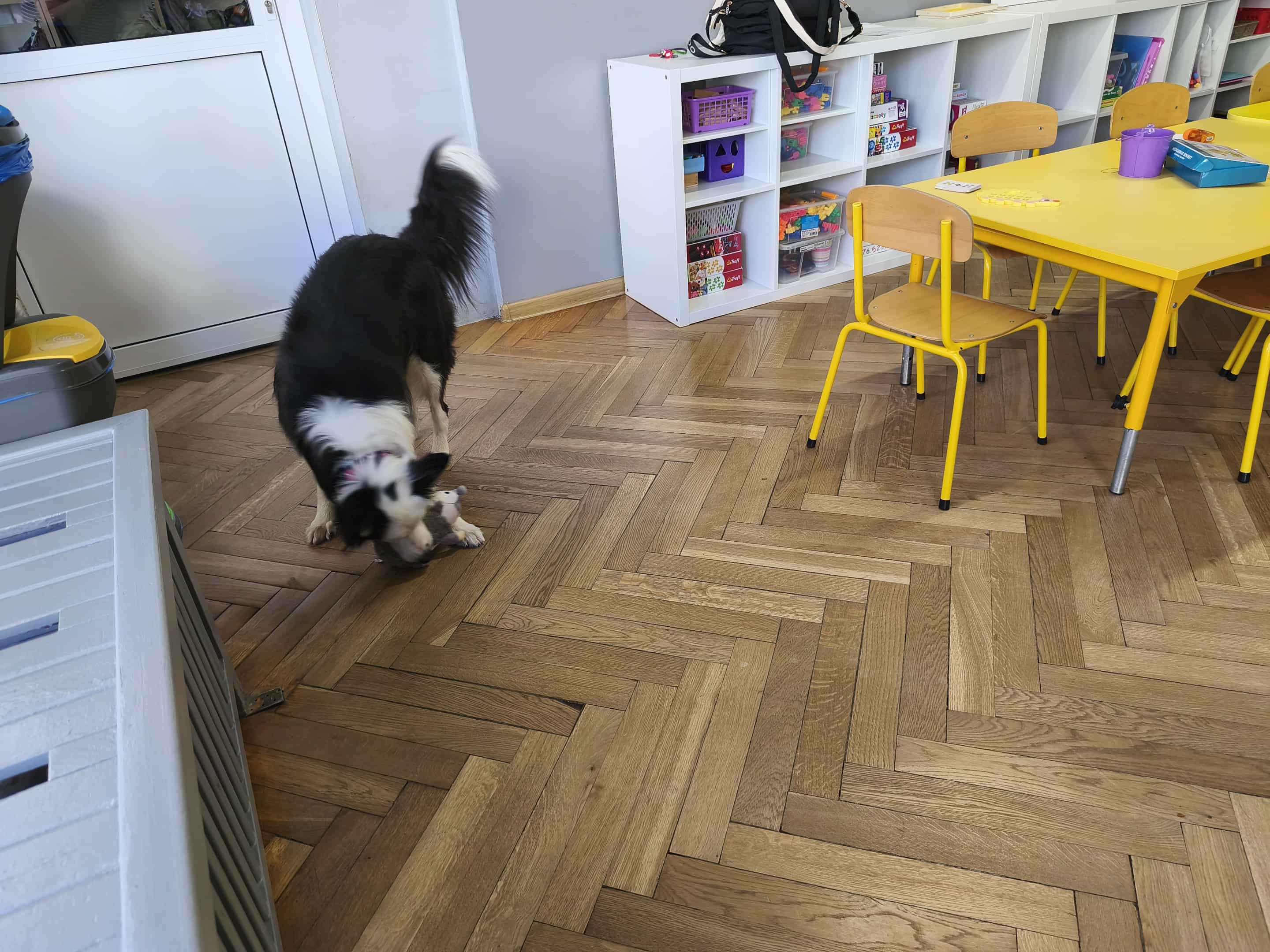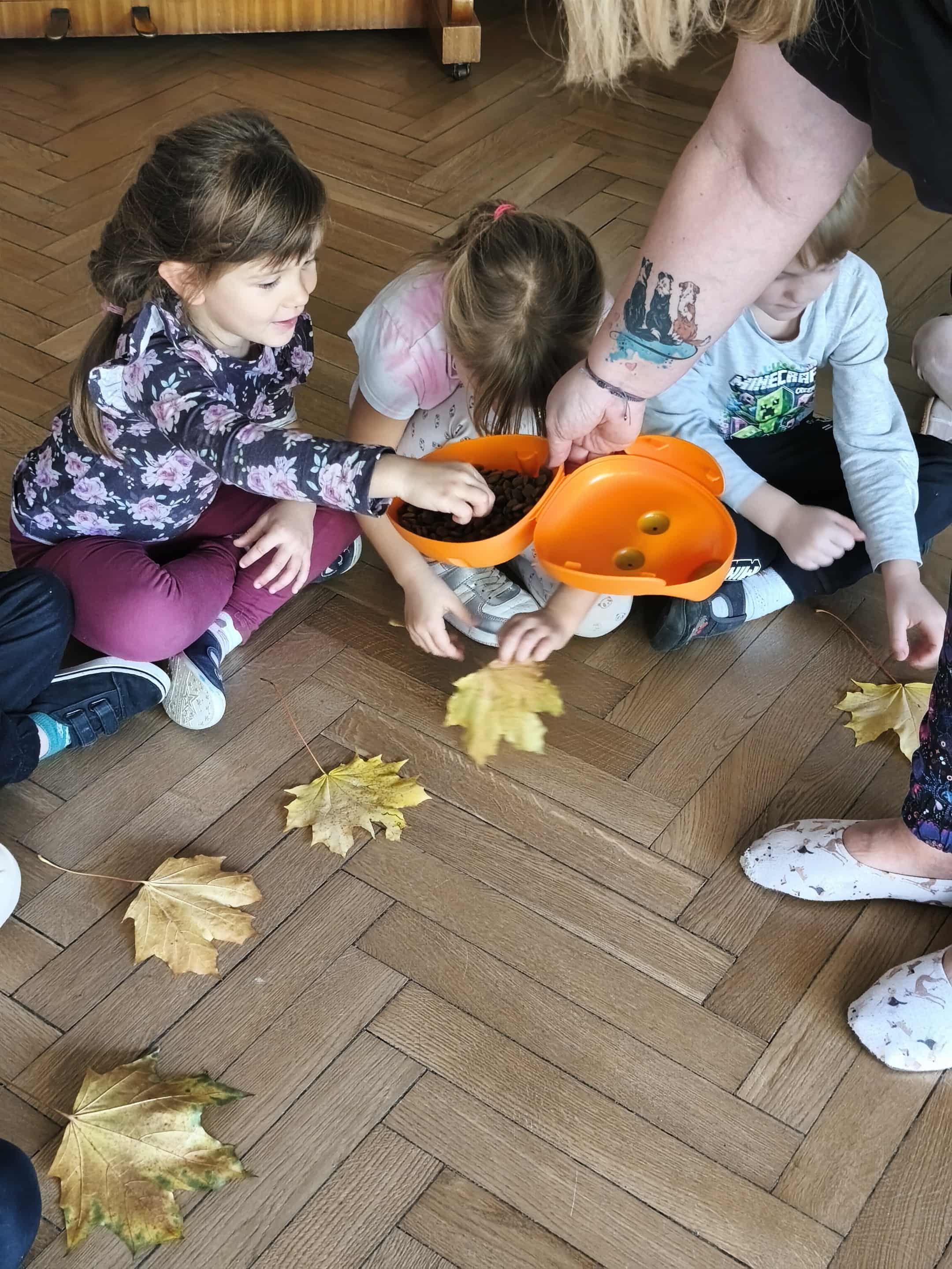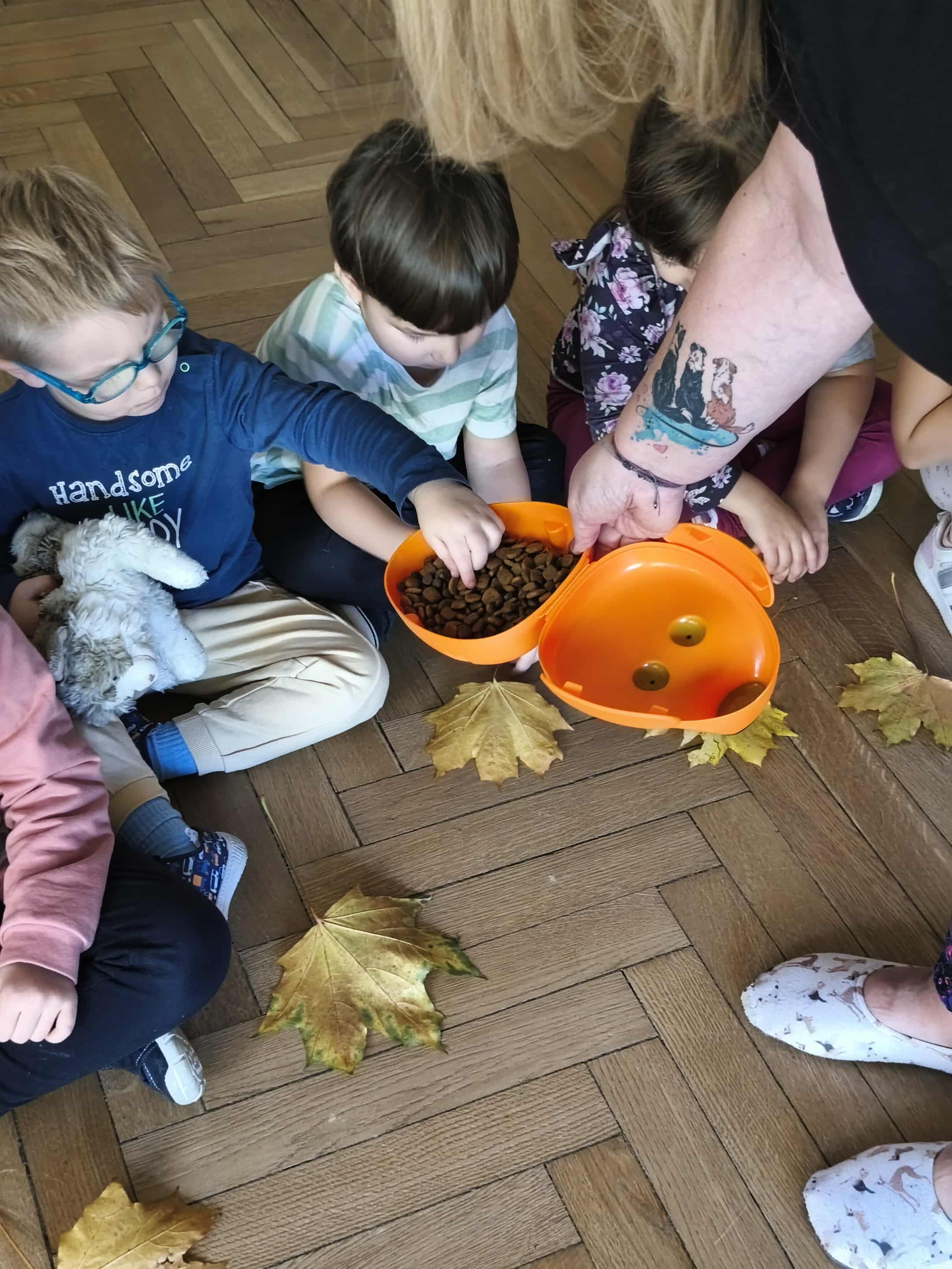 Dzisiejszego dnia na zajęciach odwiedziła na Lily, która na początku miała za zadanie wyszukać pod liściem ukrytego smakołyka. Następnie dowiedzieliśmy się, jak ważne mają zadania psy ratownicy, m.in: poszukują osób pod zawalonymi budynkami, ratują osoby tonące, pomagają osobom niewidomym. Na zakończenie Lily pokazała nam, jak Ona poszukuje swojego ulubionego przytulaka "Jeżyka".