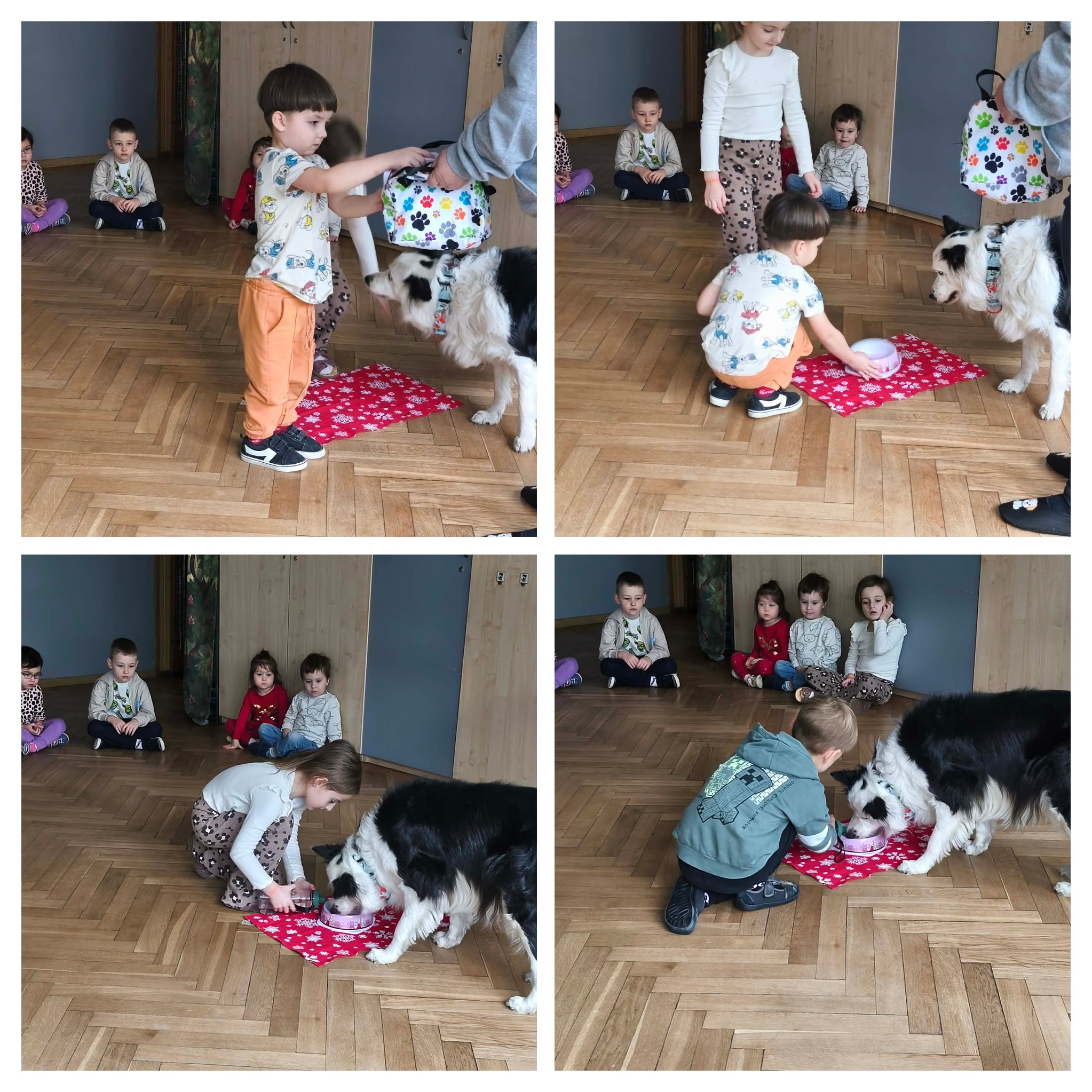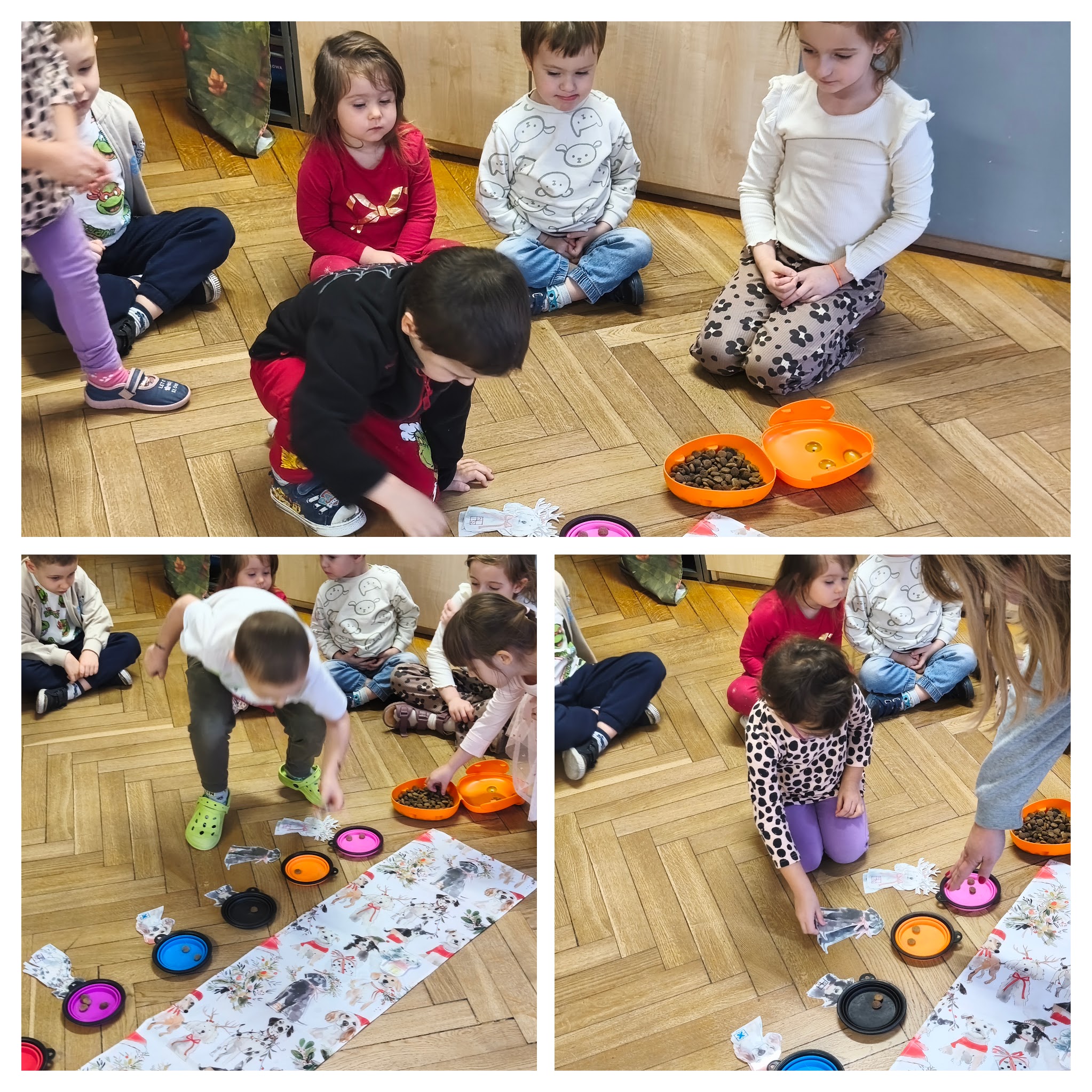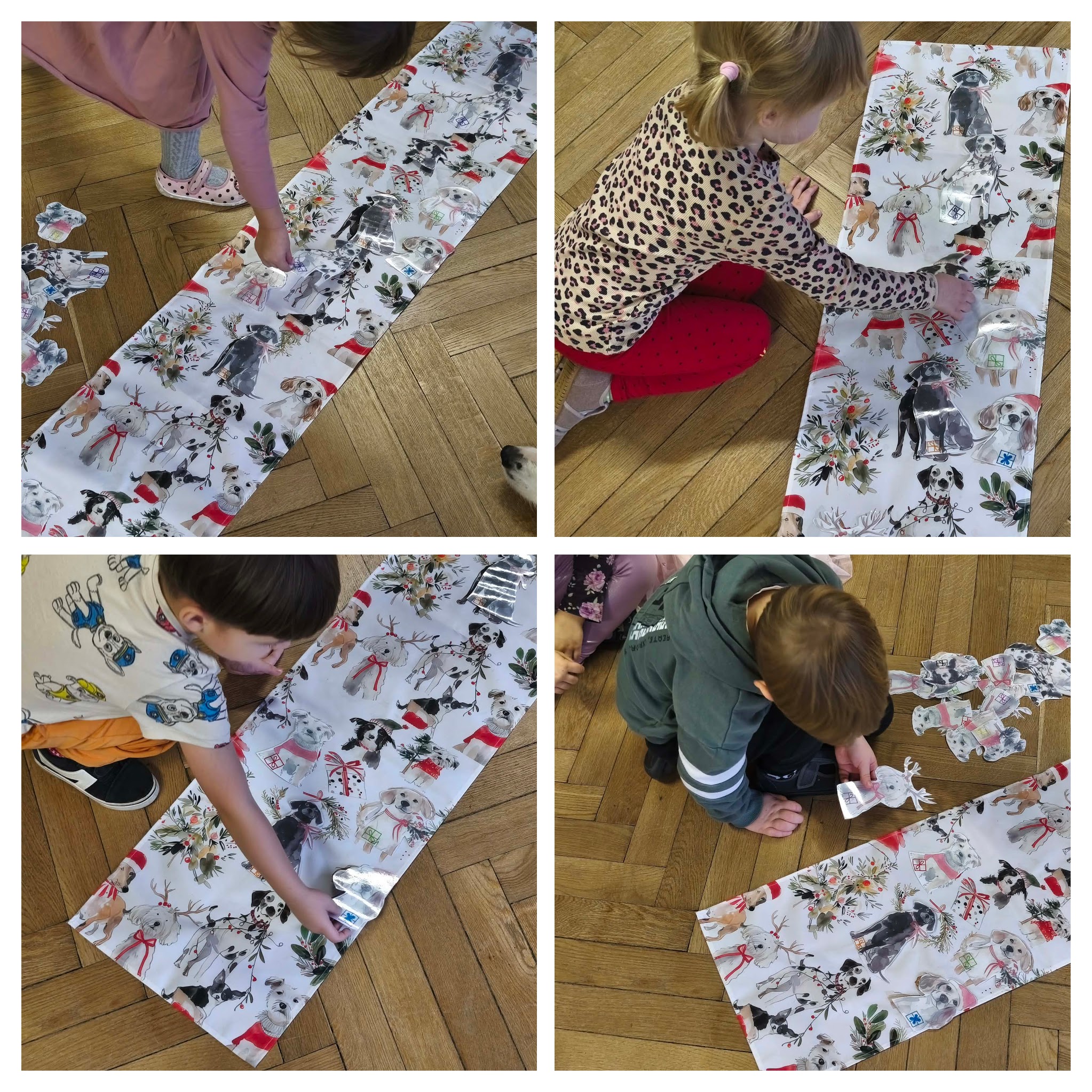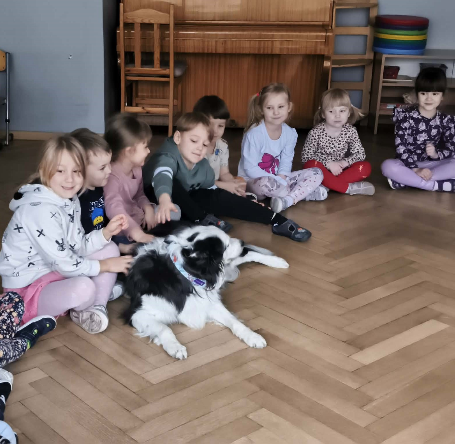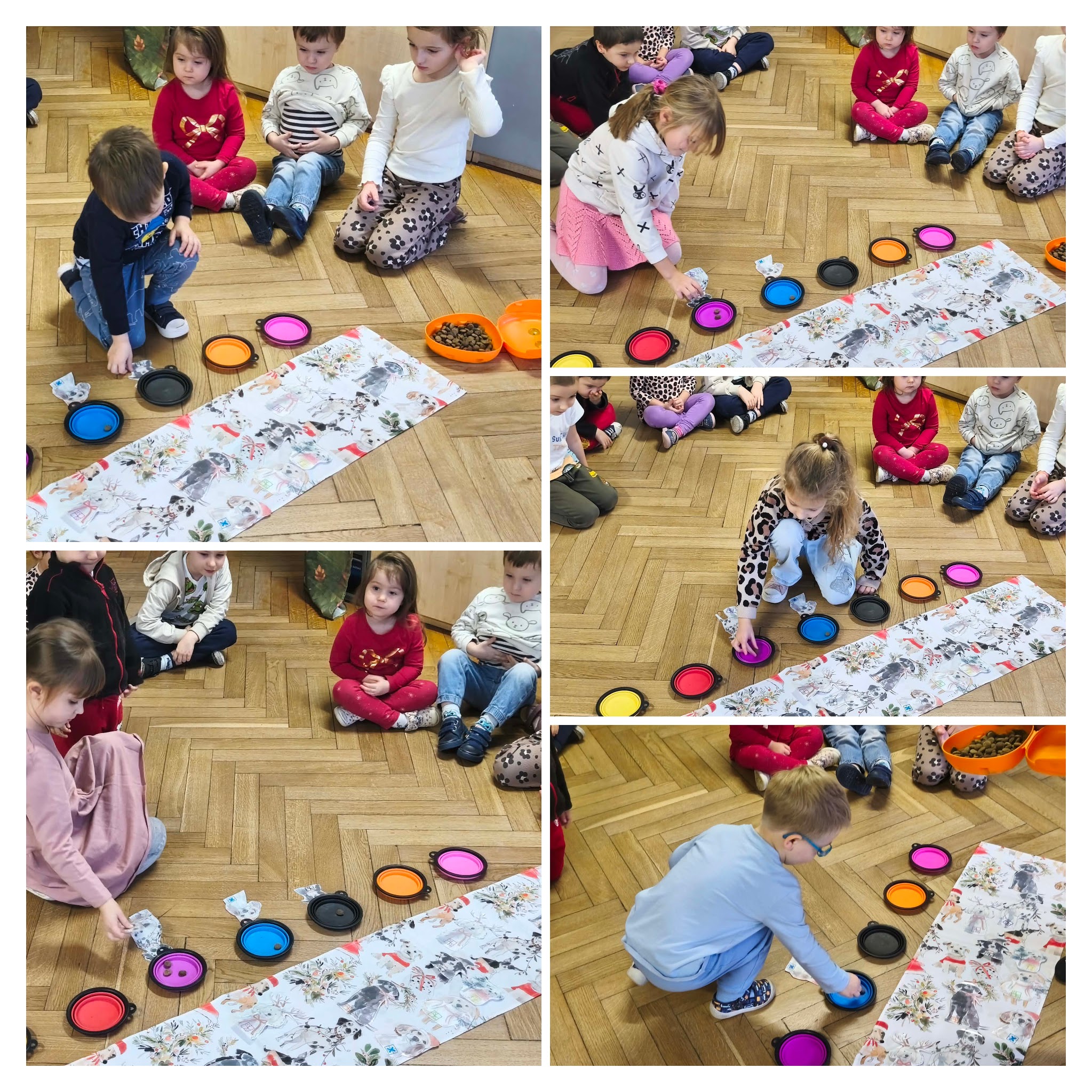 Dzisiejszego dnia odwiedziła nas Lily. Jak zawsze mogliśmy ją delikatnie pogłaskać, a Ona czasami odwzajemniała się buziakiem. Lily i Pani Beatka przygotowały dla nas świąteczną zabawę, która ćwiczyła naszą spostrzegawczość, utrwalała nazwy kolorów. Na zakończenie Lily "powróżyła" nam swoim głosem, ile dostaniemy prezentów w Wigilijną Noc. Mamy nadzieję, że szczeknięcia Lily się sprawdzą i dzieci dostaną mnóstwo prezentów.