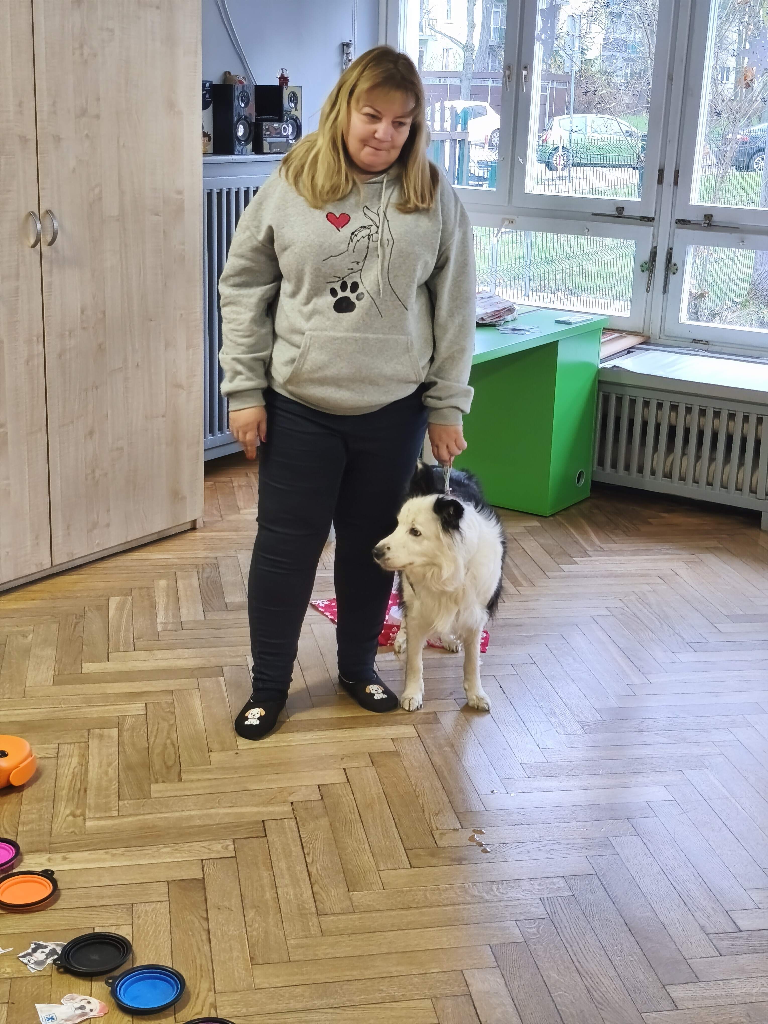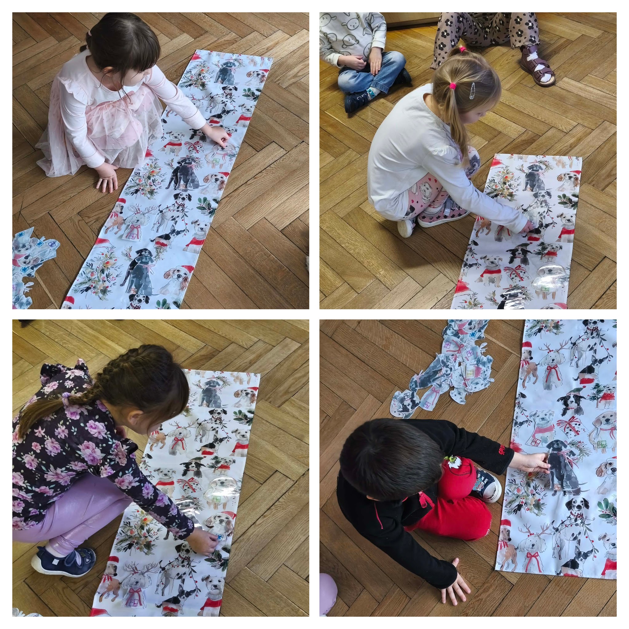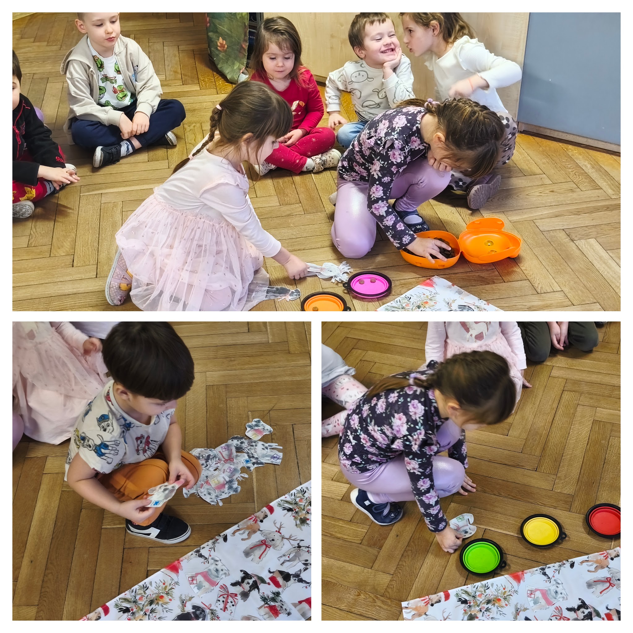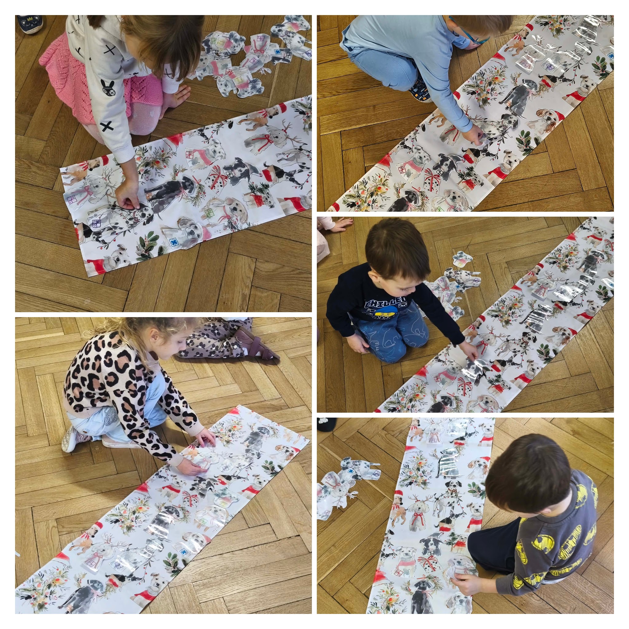 Dzisiejszego dnia odwiedziła nas Lily. Jak zawsze mogliśmy ją delikatnie pogłaskać, a Ona czasami odwzajemniała się buziakiem. Lily i Pani Beatka przygotowały dla nas świąteczną zabawę, która ćwiczyła naszą spostrzegawczość, utrwalała nazwy kolorów. Na zakończenie Lily "powróżyła" nam swoim głosem, ile dostaniemy prezentów w Wigilijną Noc. Mamy nadzieję, że szczeknięcia Lily się sprawdzą i dzieci dostaną mnóstwo prezentów.