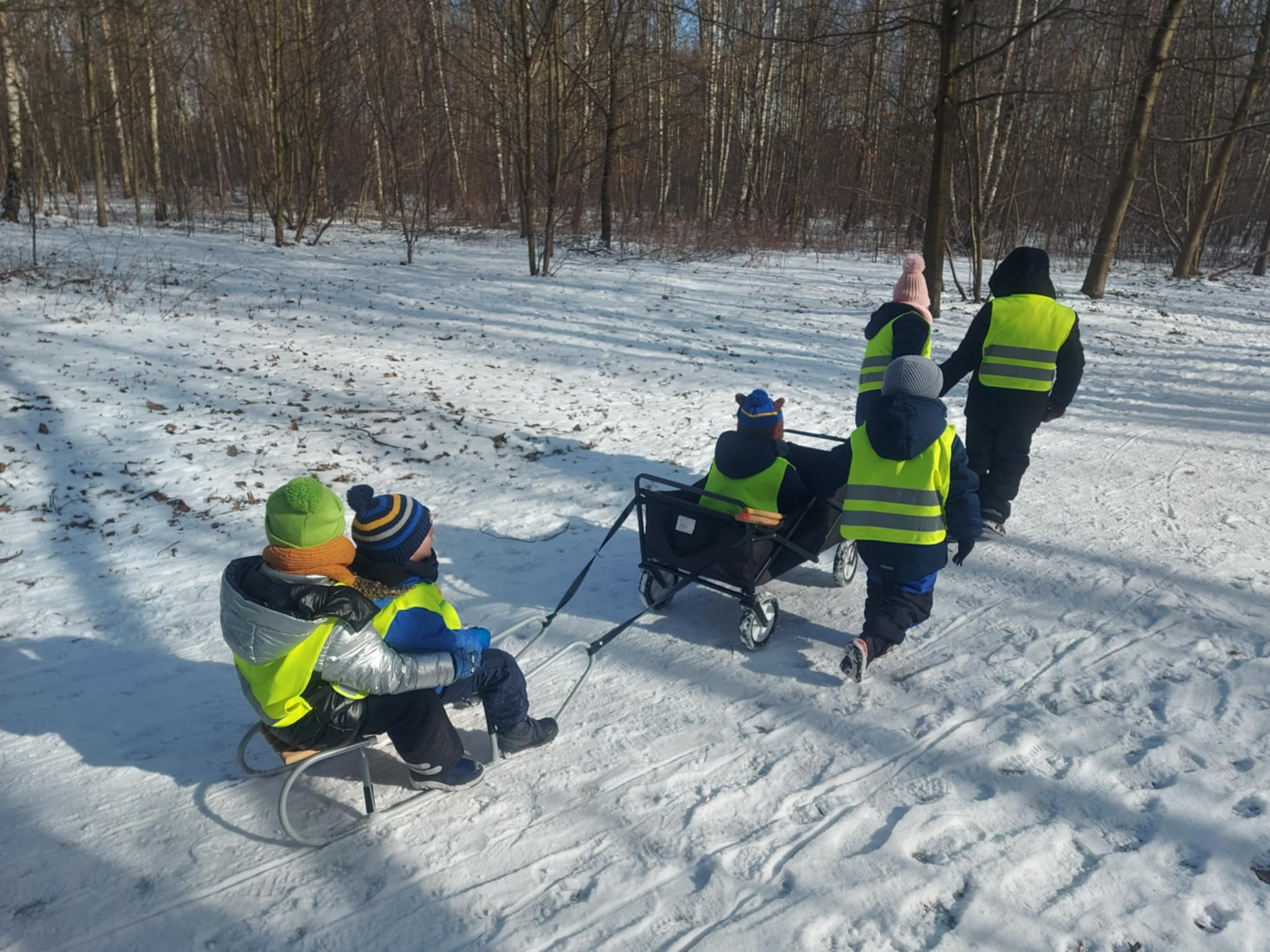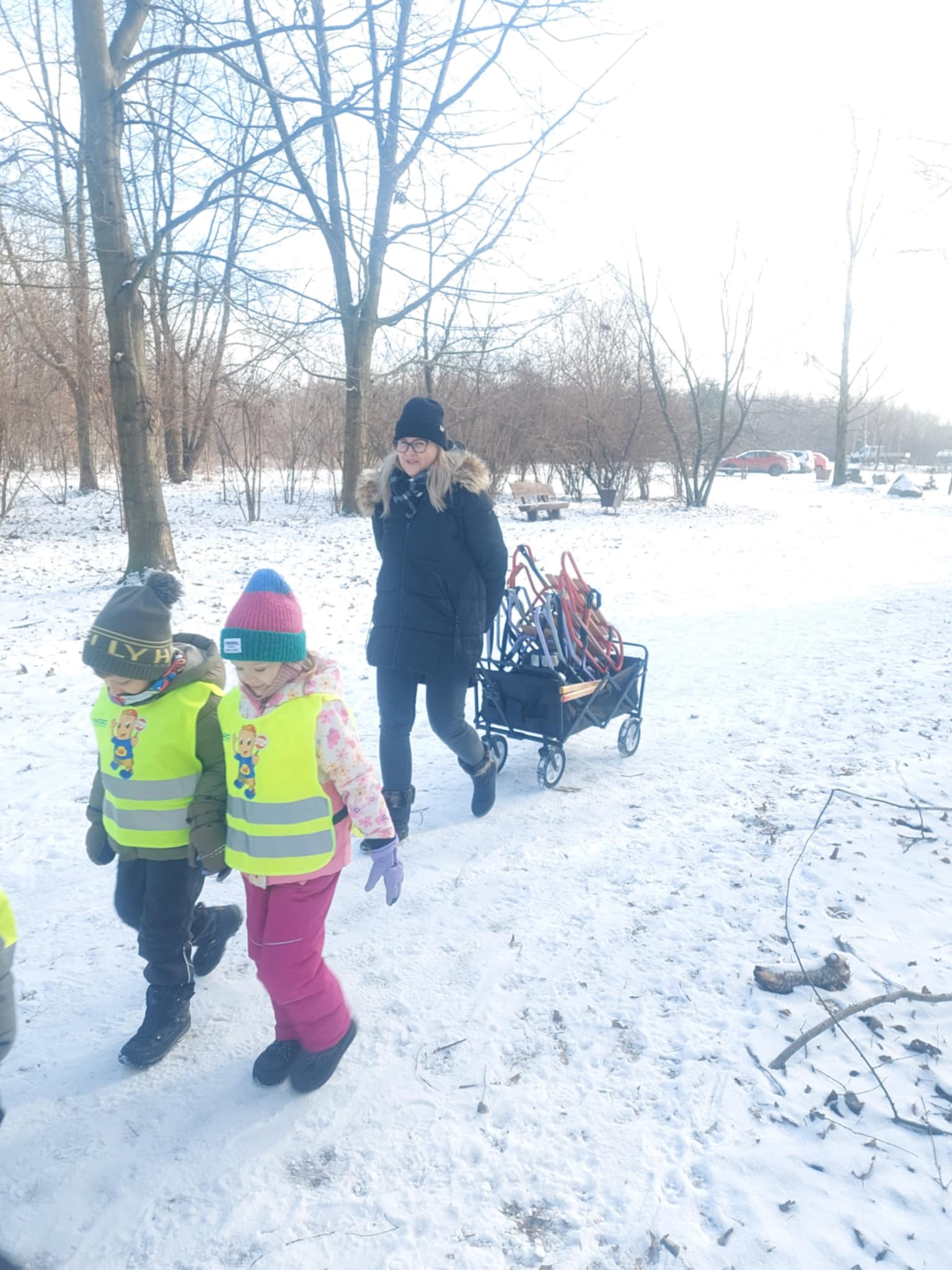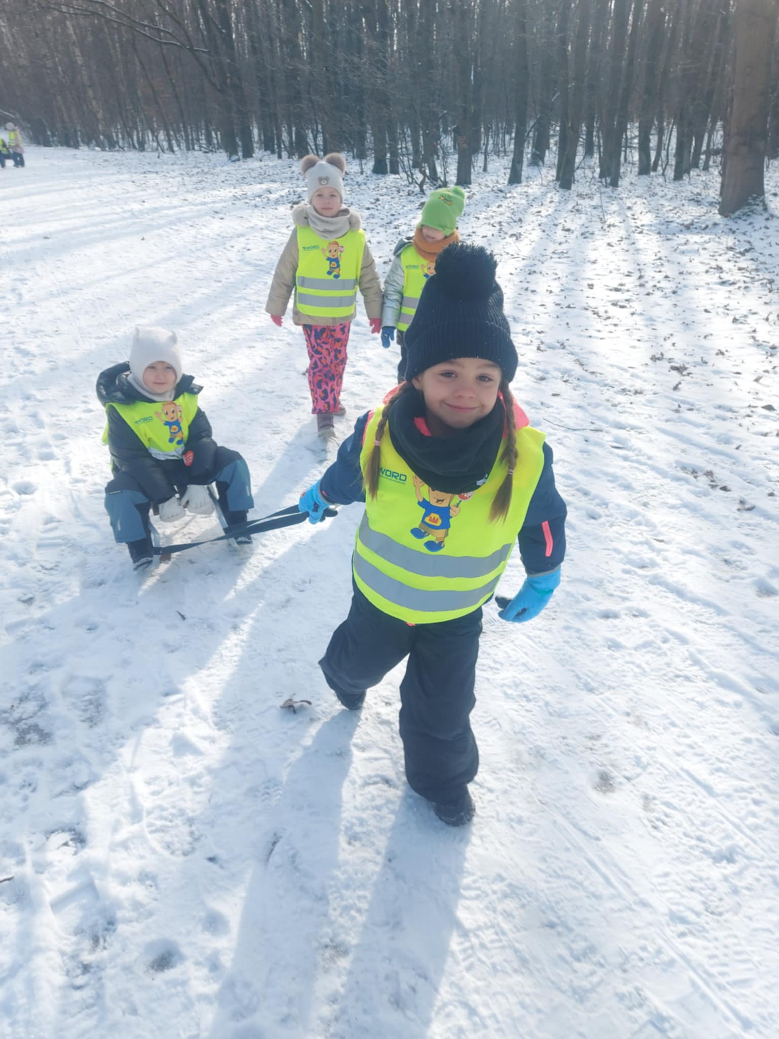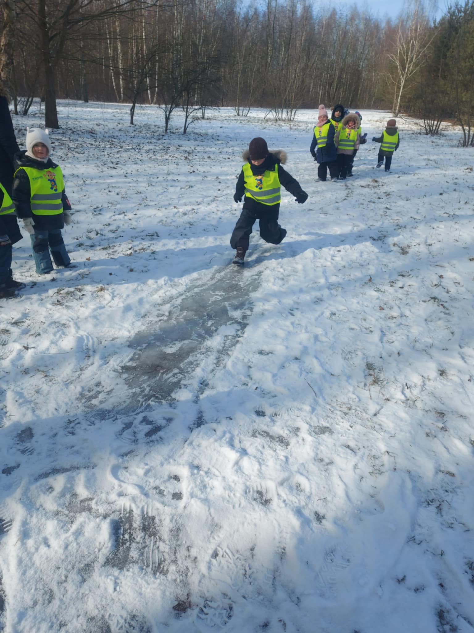 Dziś przeżyliśmy wspaniałą przygodę. Wybraliśmy się do lasu Lublinek, aby aktywnie spędzić czas na świeżym powietrzu i nacieszyć się piękną słoneczną pogodą. Zabraliśmy ze sobą sanki, kije do hokeja, termosy z gorącą herbatą, która idealnie rozgrzewała nas podczas przerwy w zabawie. Las przywitał nas cudownym śpiewem ptaków. Dzieci z ogromnym entuzjazmem ruszyły na penetrację terenu. Nie zabrakło oczywiście zimowych atrakcji, tworzyliśmy ślizgawki, ślizgając się na lodzie, woziliśmy się na sankach i próbowaliśmy swoich sił w zabawach z kijami hokejowymi. Do przedszkola wróciliśmy szczęśliwi, dotlenieni i pełni wrażeń. To był dzień pełen ruchu, radości i wspólnego odkrywania uroków zimowego lasu.