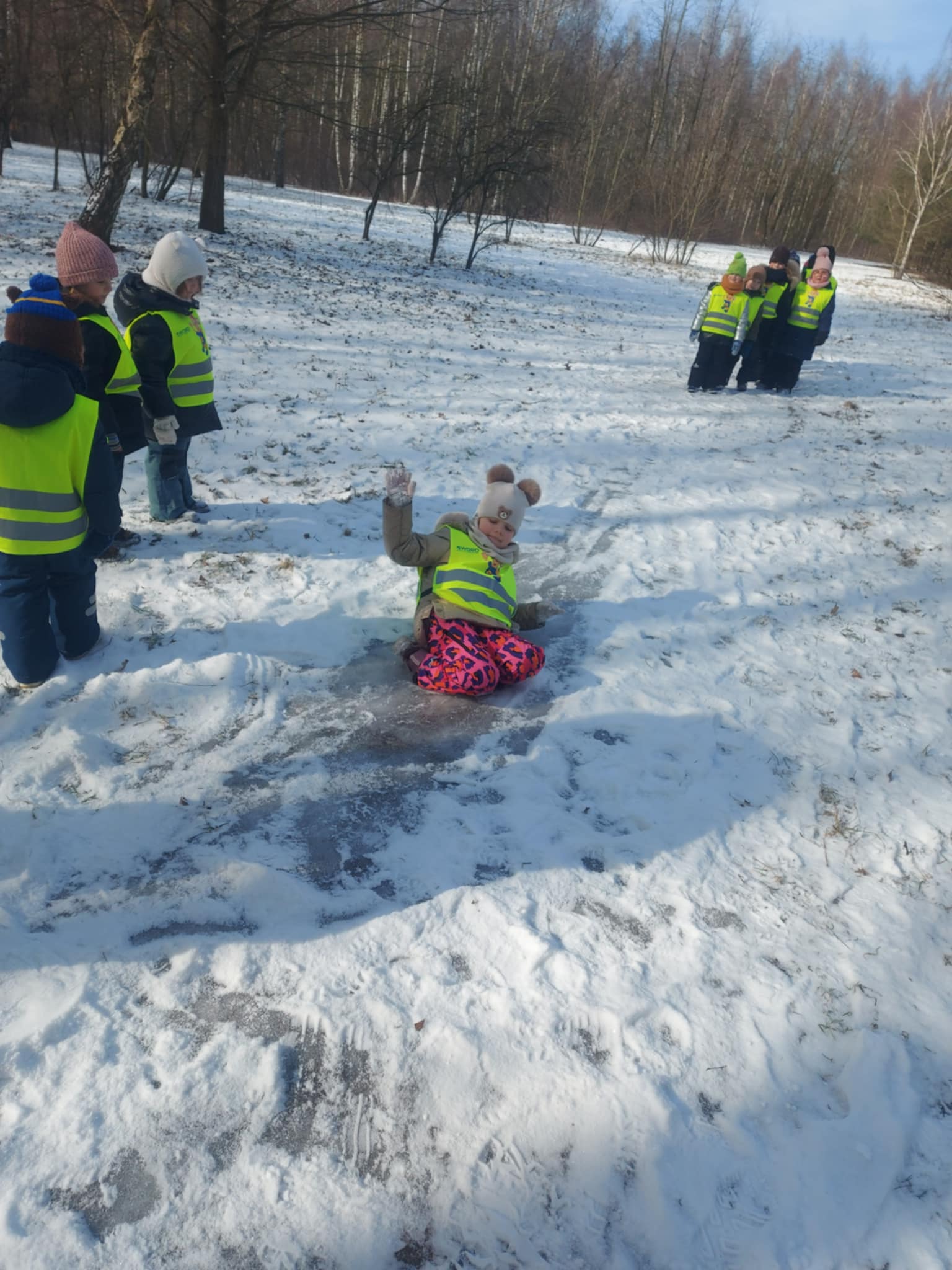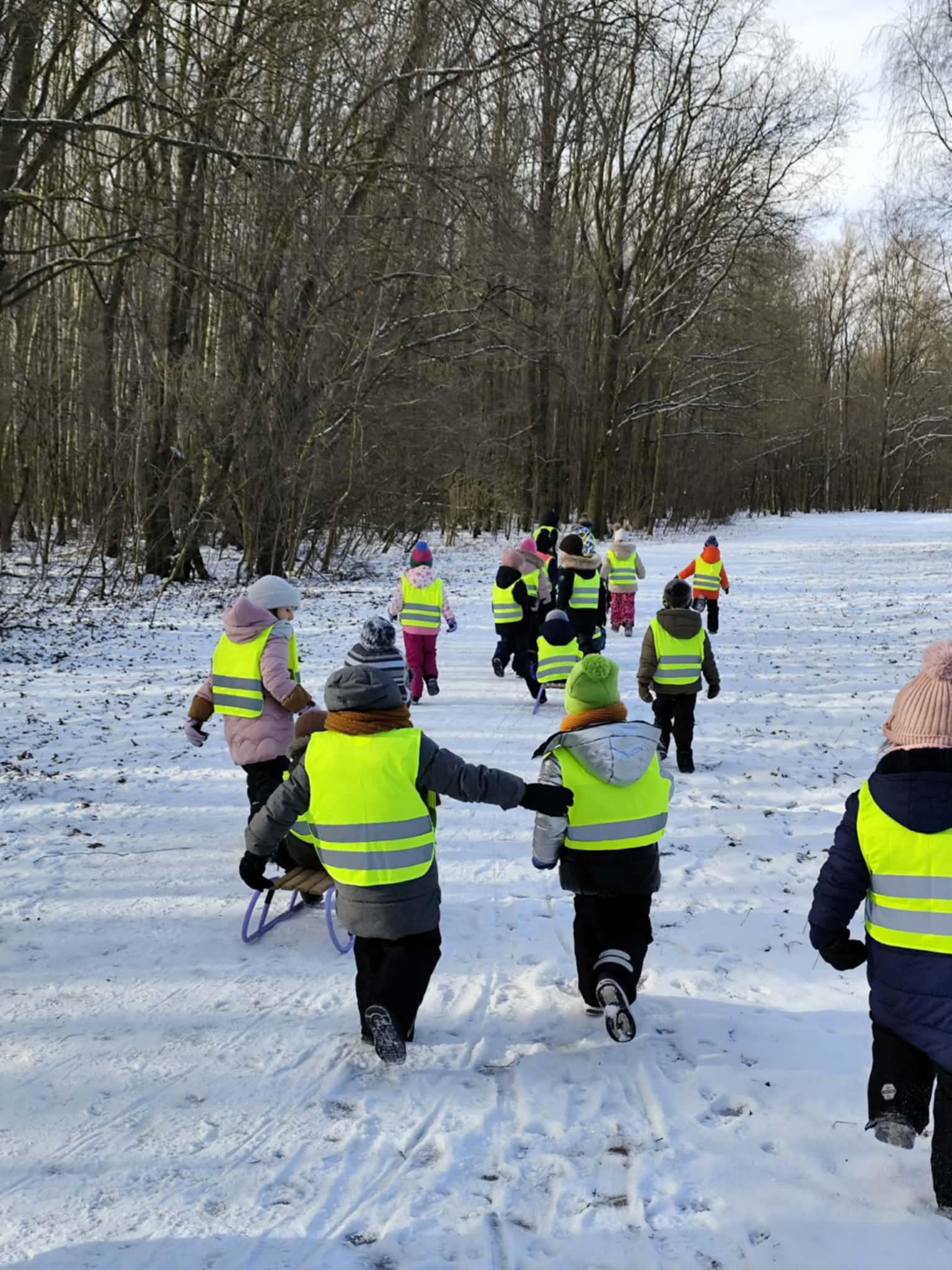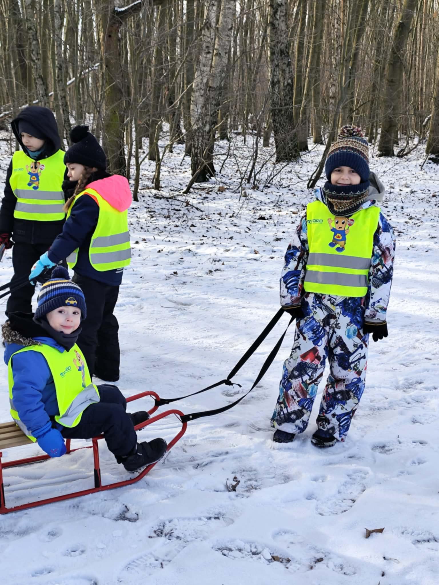 Dziś przeżyliśmy wspaniałą przygodę. Wybraliśmy się do lasu Lublinek, aby aktywnie spędzić czas na świeżym powietrzu i nacieszyć się piękną słoneczną pogodą. Zabraliśmy ze sobą sanki, kije do hokeja, termosy z gorącą herbatą, która idealnie rozgrzewała nas podczas przerwy w zabawie. Las przywitał nas cudownym śpiewem ptaków. Dzieci z ogromnym entuzjazmem ruszyły na penetrację terenu. Nie zabrakło oczywiście zimowych atrakcji, tworzyliśmy ślizgawki, ślizgając się na lodzie, woziliśmy się na sankach i próbowaliśmy swoich sił w zabawach z kijami hokejowymi. Do przedszkola wróciliśmy szczęśliwi, dotlenieni i pełni wrażeń. To był dzień pełen ruchu, radości i wspólnego odkrywania uroków zimowego lasu.