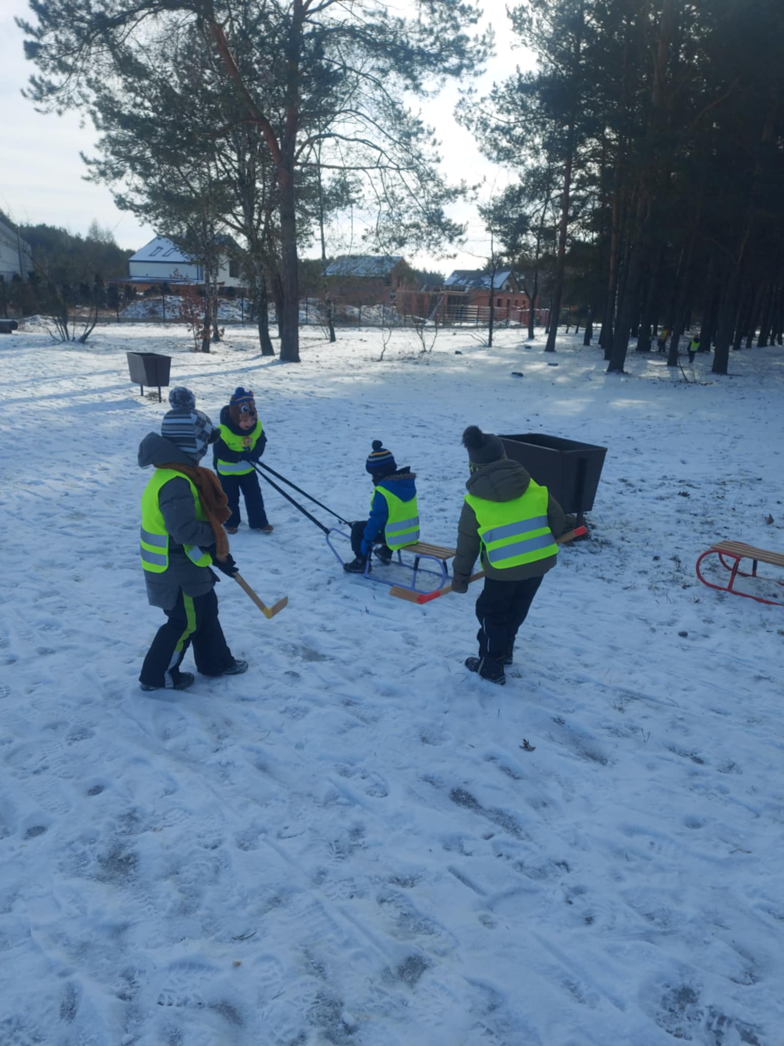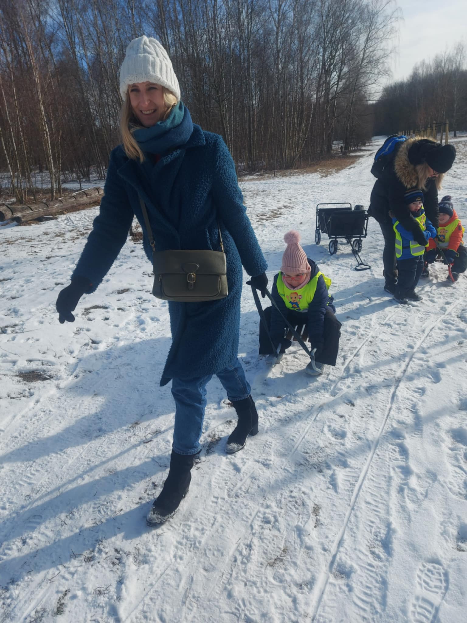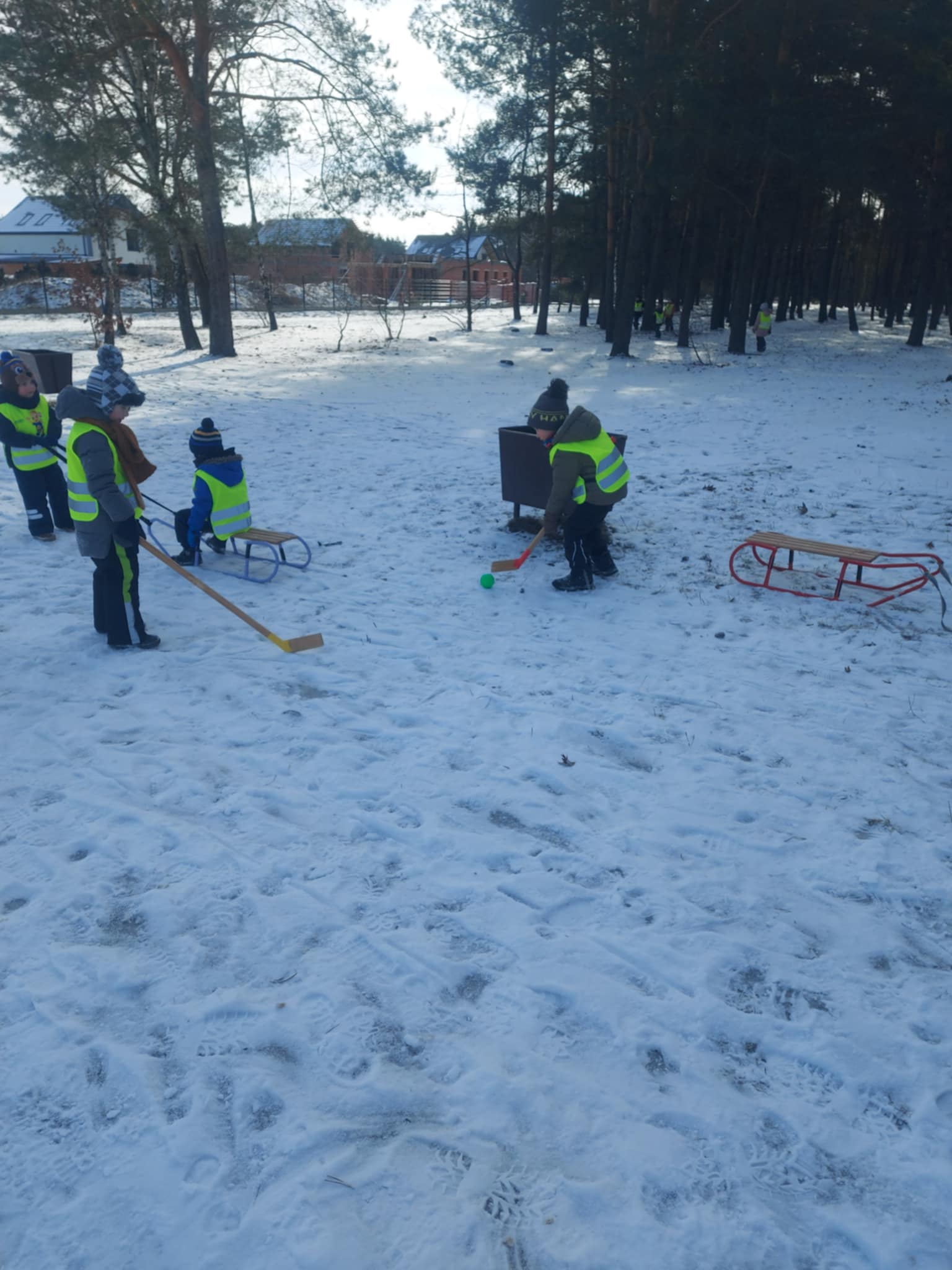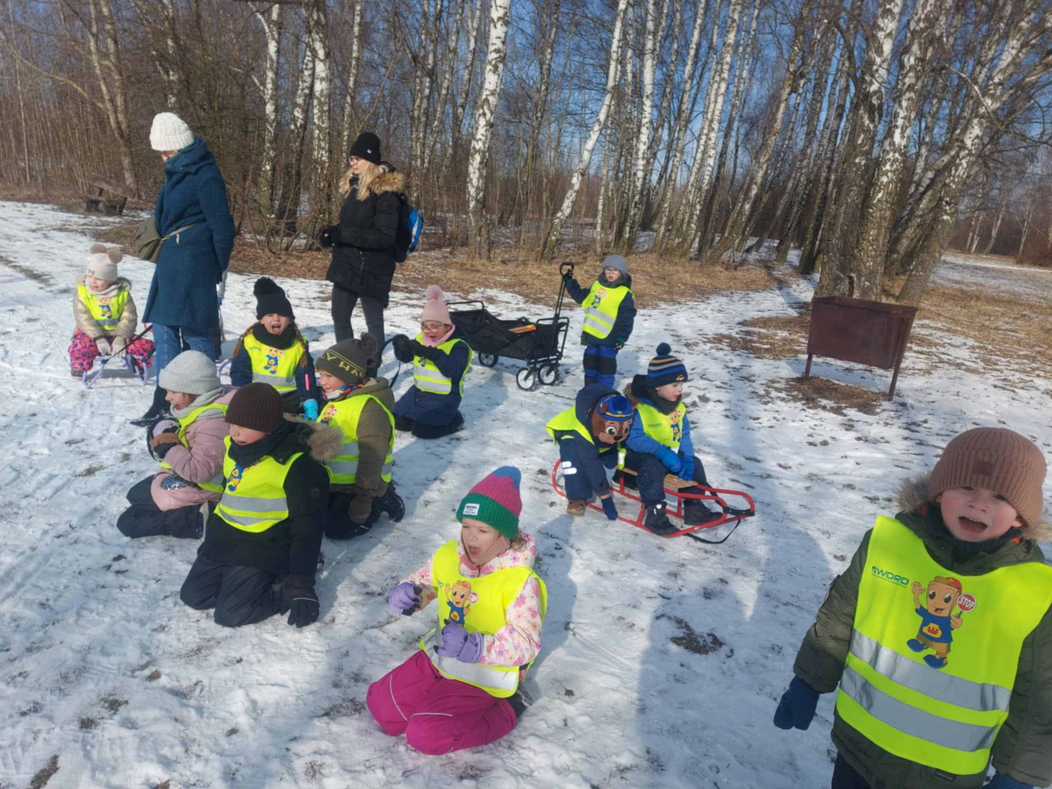 Dziś przeżyliśmy wspaniałą przygodę. Wybraliśmy się do lasu Lublinek, aby aktywnie spędzić czas na świeżym powietrzu i nacieszyć się piękną słoneczną pogodą. Zabraliśmy ze sobą sanki, kije do hokeja, termosy z gorącą herbatą, która idealnie rozgrzewała nas podczas przerwy w zabawie. Las przywitał nas cudownym śpiewem ptaków. Dzieci z ogromnym entuzjazmem ruszyły na penetrację terenu. Nie zabrakło oczywiście zimowych atrakcji, tworzyliśmy ślizgawki, ślizgając się na lodzie, woziliśmy się na sankach i próbowaliśmy swoich sił w zabawach z kijami hokejowymi. Do przedszkola wróciliśmy szczęśliwi, dotlenieni i pełni wrażeń. To był dzień pełen ruchu, radości i wspólnego odkrywania uroków zimowego lasu.