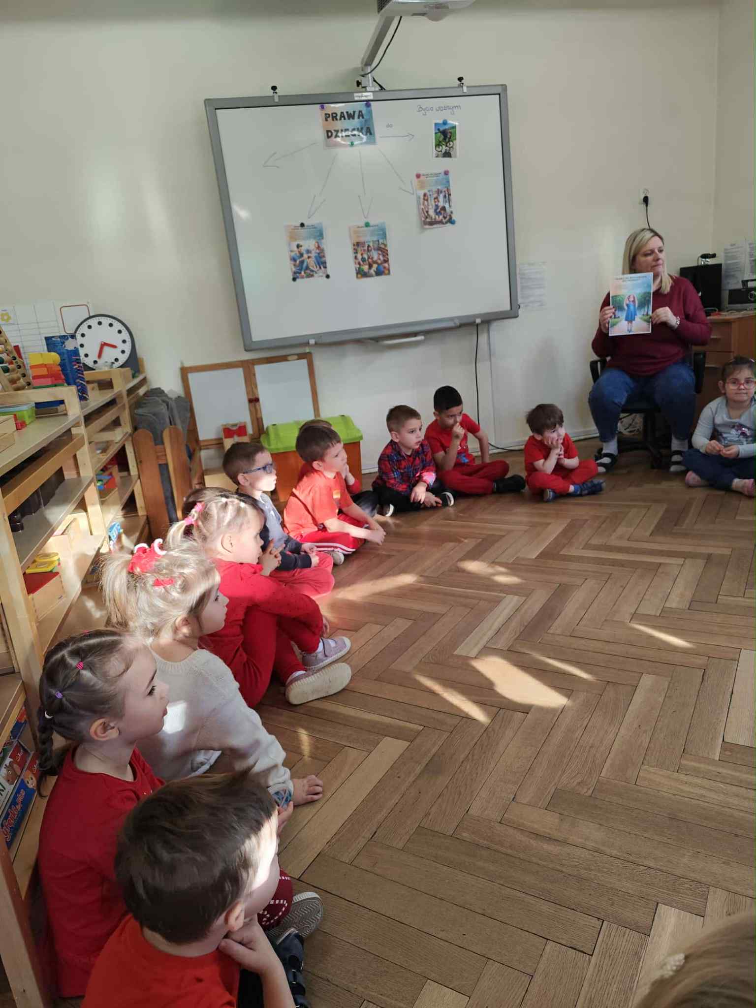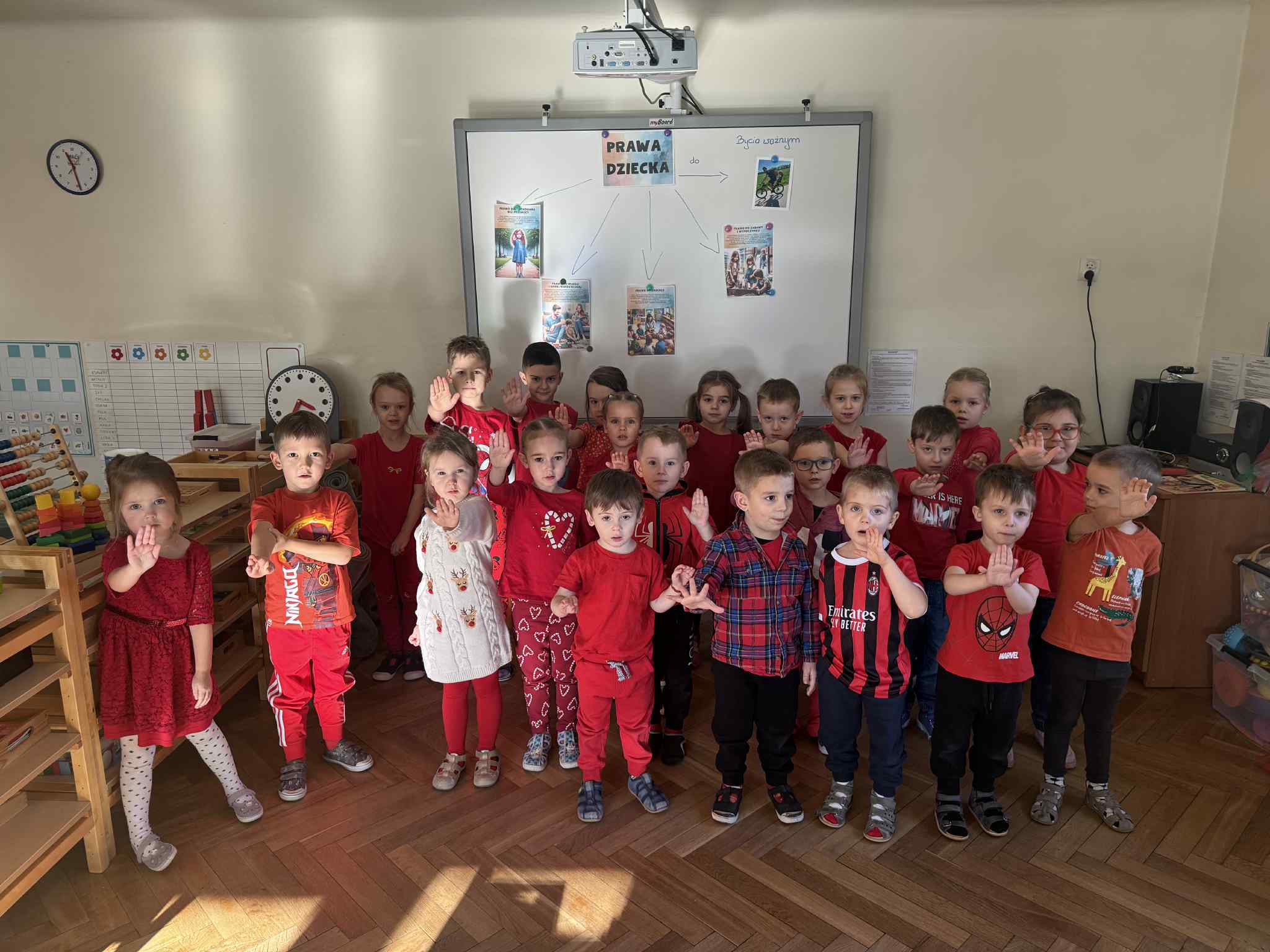 Dziś nasza grupa i całe przedszkole "zaświeciło" się na kolor czerwony. Podsumowaliśmy dzisiaj akcję "Dzieciństwo bez przemocy". Jest to też czas kiedy więcej rozmawiamy o prawach dziecka. Dziś w sposób szczególny zwróciliśmy uwagę na prawo do bycia wolnym od przemocy. Poszliśmy również na spacer, podczas którego zostawiliśmy