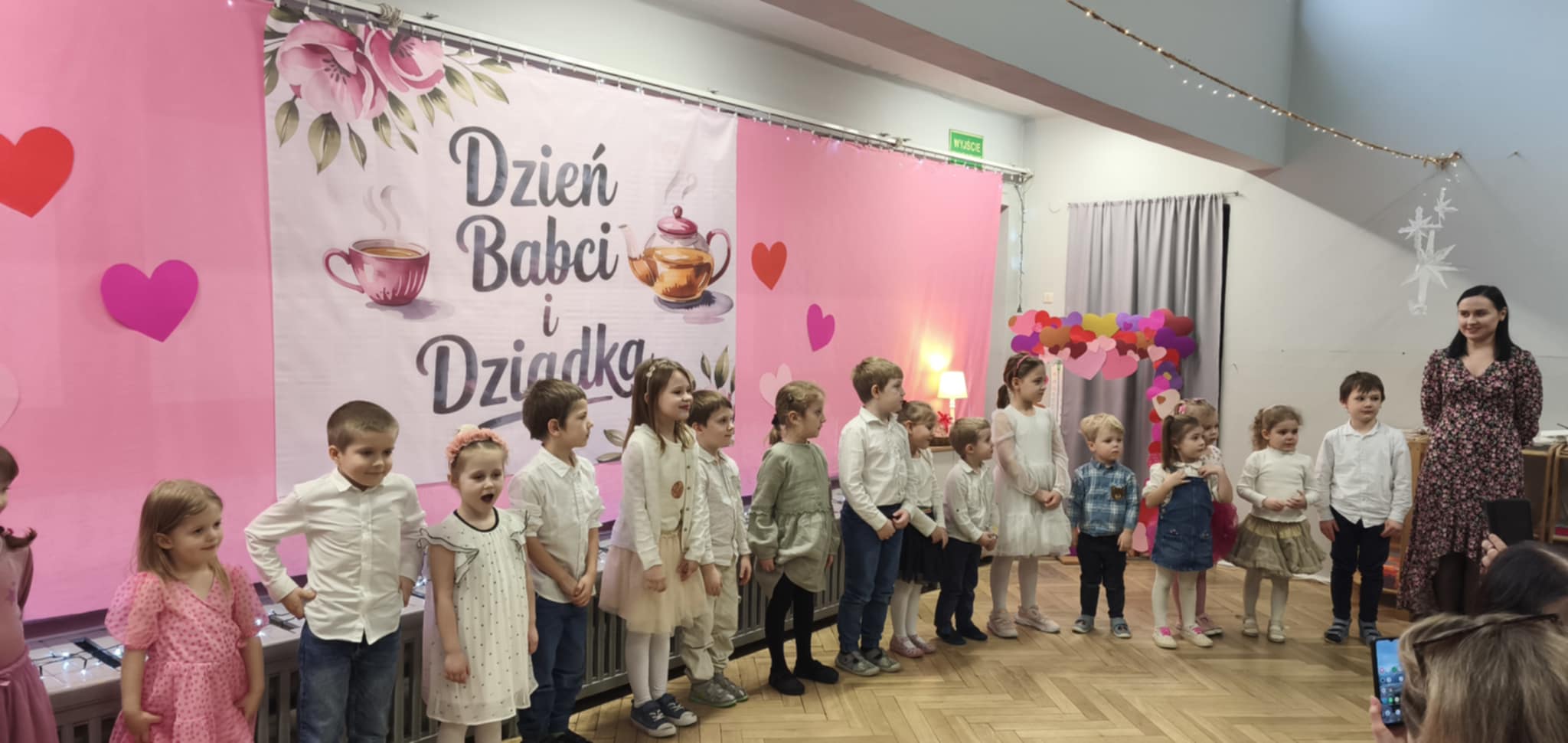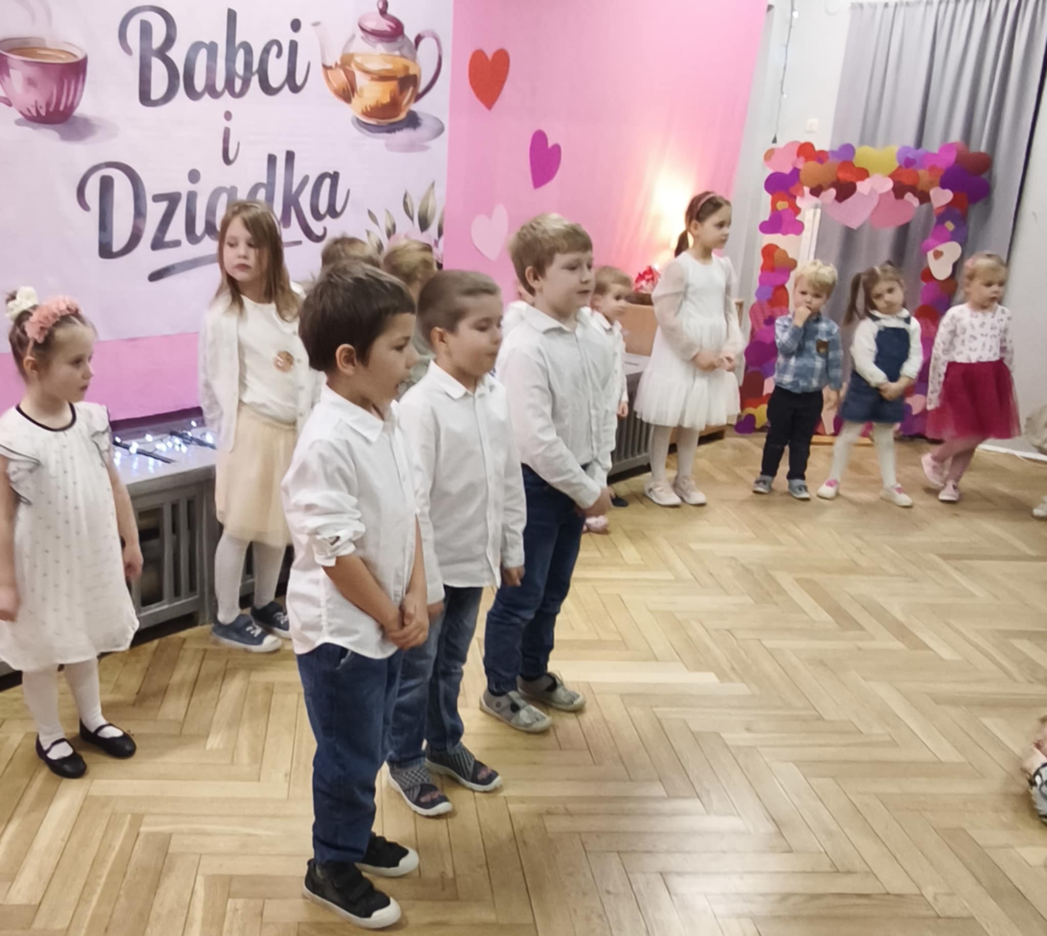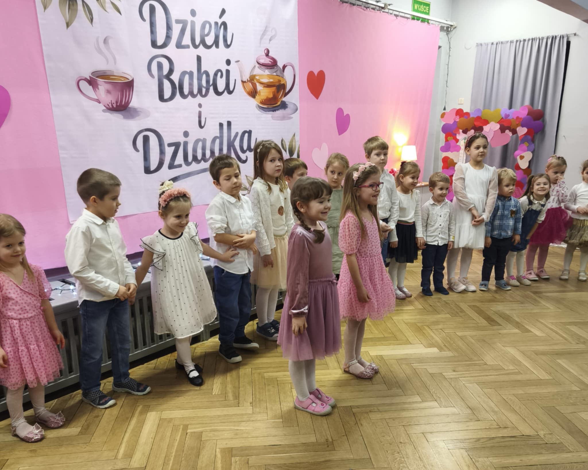 Babcia i Dziadek to słowa, które każdemu dziecku kojarzą się z ciepłem, miłością i wszystkim, co dobre. Dlatego dzieci gościły swoje Babcie oraz Dziadków na uroczystości z tej okazji. To było naprawdę wyjątkowe spotkanie, pełne uśmiechu, radości i dumy. Szczęśliwe i rozpromienione twarze babć i dziadków dały wyraz tego, jak ważne są takie spotkania i chwile spędzone wspólnie z wnukami. W wyjątkowej atmosferze, wnuczęta wspaniale wystąpiły przed bliskimi. Wierszykami, tańcem i upominkami chciały okazać swoim bliskim szacunek i po raz kolejny podziękować za miłość, cierpliwość i zrozumienie.