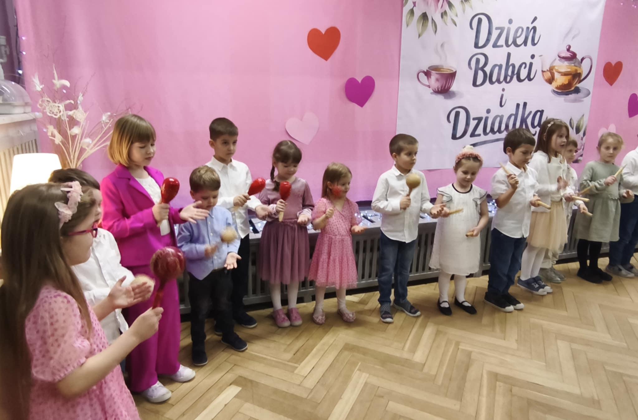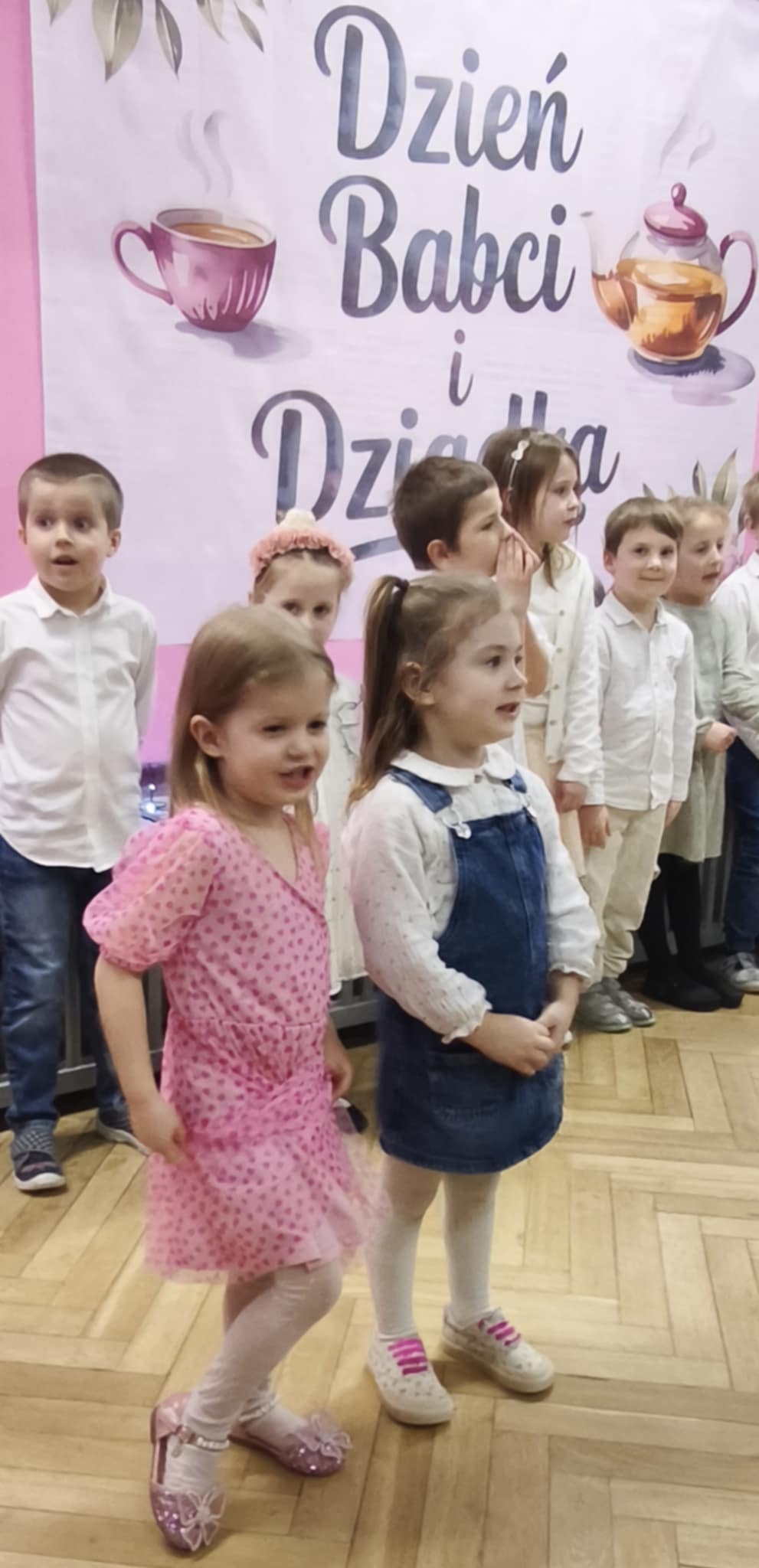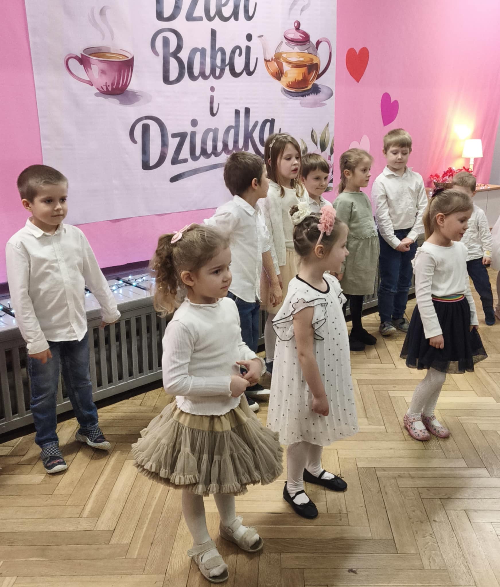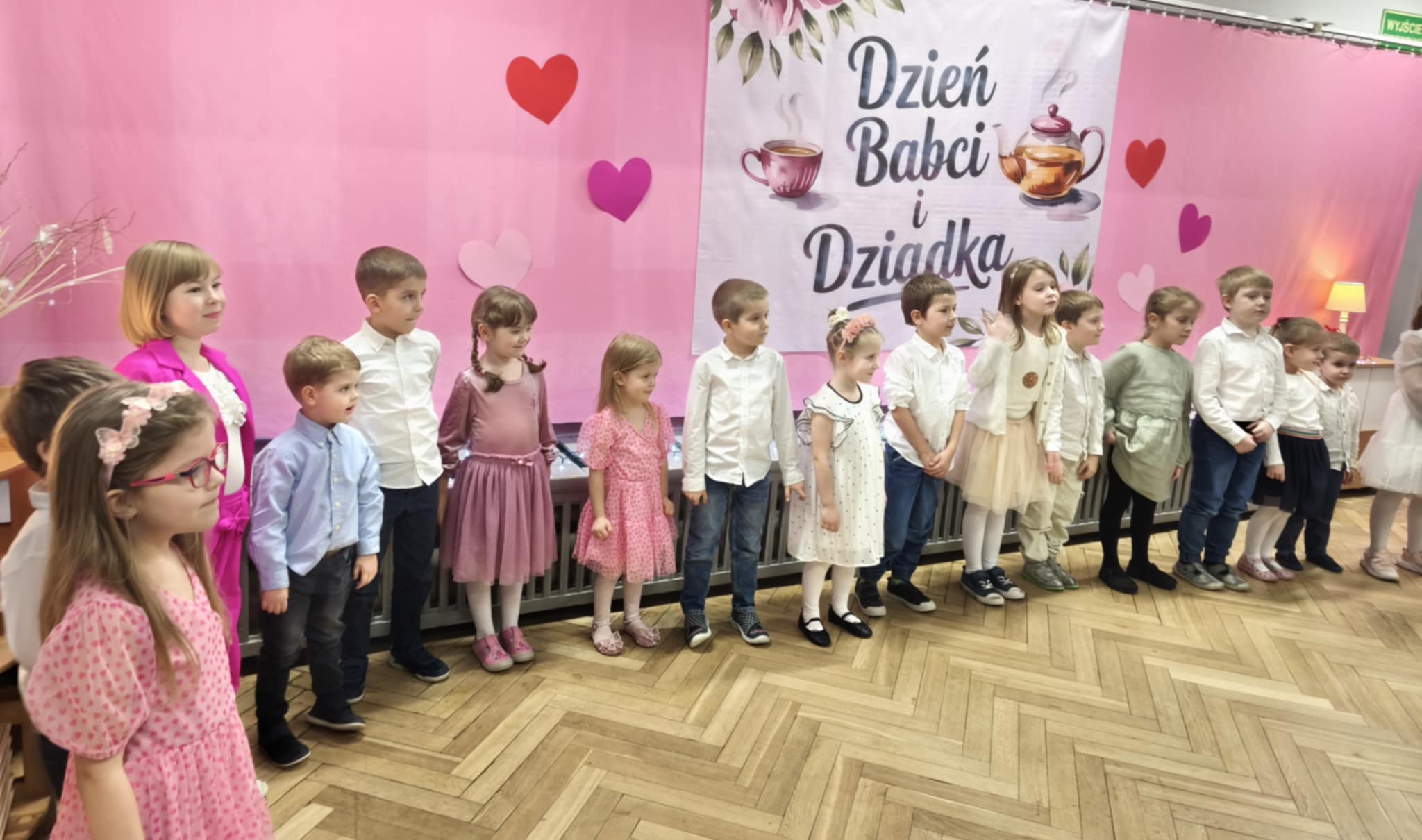 Babcia i Dziadek to słowa, które każdemu dziecku kojarzą się z ciepłem, miłością i wszystkim, co dobre. Dlatego dzieci gościły swoje Babcie oraz Dziadków na uroczystości z tej okazji. To było naprawdę wyjątkowe spotkanie, pełne uśmiechu, radości i dumy. Szczęśliwe i rozpromienione twarze babć i dziadków dały wyraz tego, jak ważne są takie spotkania i chwile spędzone wspólnie z wnukami. W wyjątkowej atmosferze, wnuczęta wspaniale wystąpiły przed bliskimi. Wierszykami, tańcem i upominkami chciały okazać swoim bliskim szacunek i po raz kolejny podziękować za miłość, cierpliwość i zrozumienie.