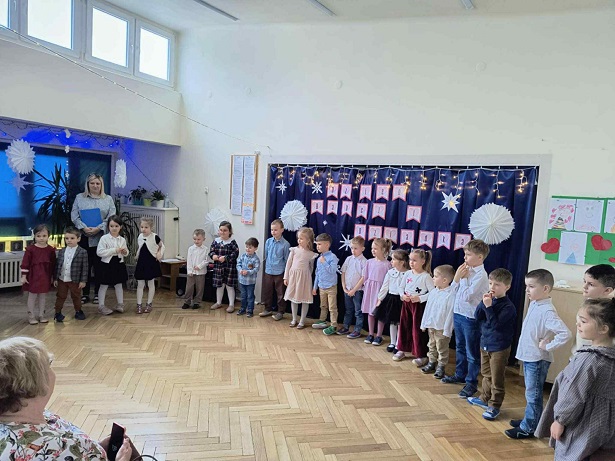 "Dziadkowie to fundament rodziny, łączący przeszłość z przyszłością, poprzez bezwarunkową miłość, mądrość i cierpliwość". Jakże miło było nam gościć tak znakomitych Gości. Nasze spotkanie rozpoczęło się od występu dzieci, które z wielkim przejęciem śpiewały piosenki o swoich Babciach i Dziadkach. Potem był czas na wspólne zabawy, by następnie zatrzymać czas na miłych rozmowach przy soczku i ciasteczku. Ze ścian spoglądały na nas portrety przygotowane przez dzieci, które nasi Dziadkowie z dumą oglądali. W powietrzu unosił się zapach miłości, radości i wdzięczności. Już z utęsknieniem czekamy na kolejne spotkanie.