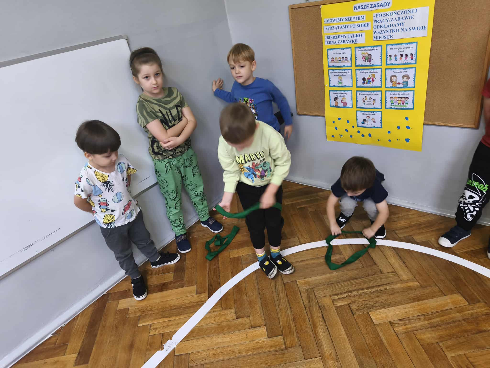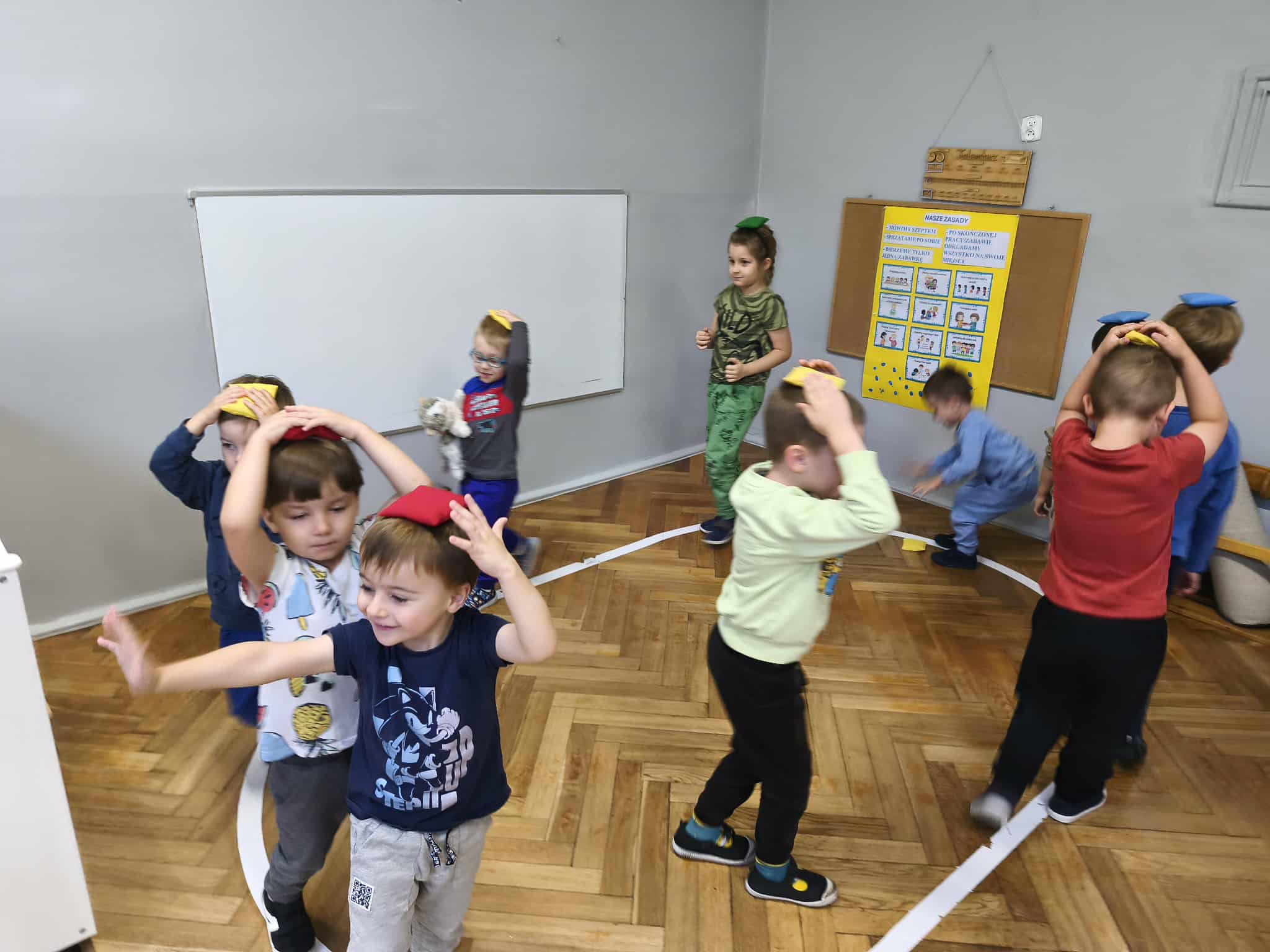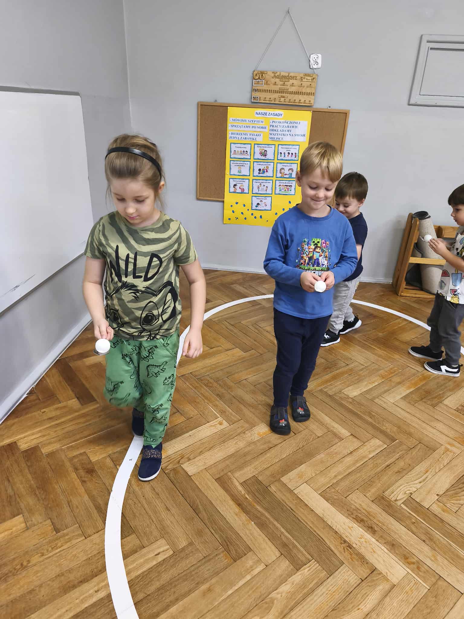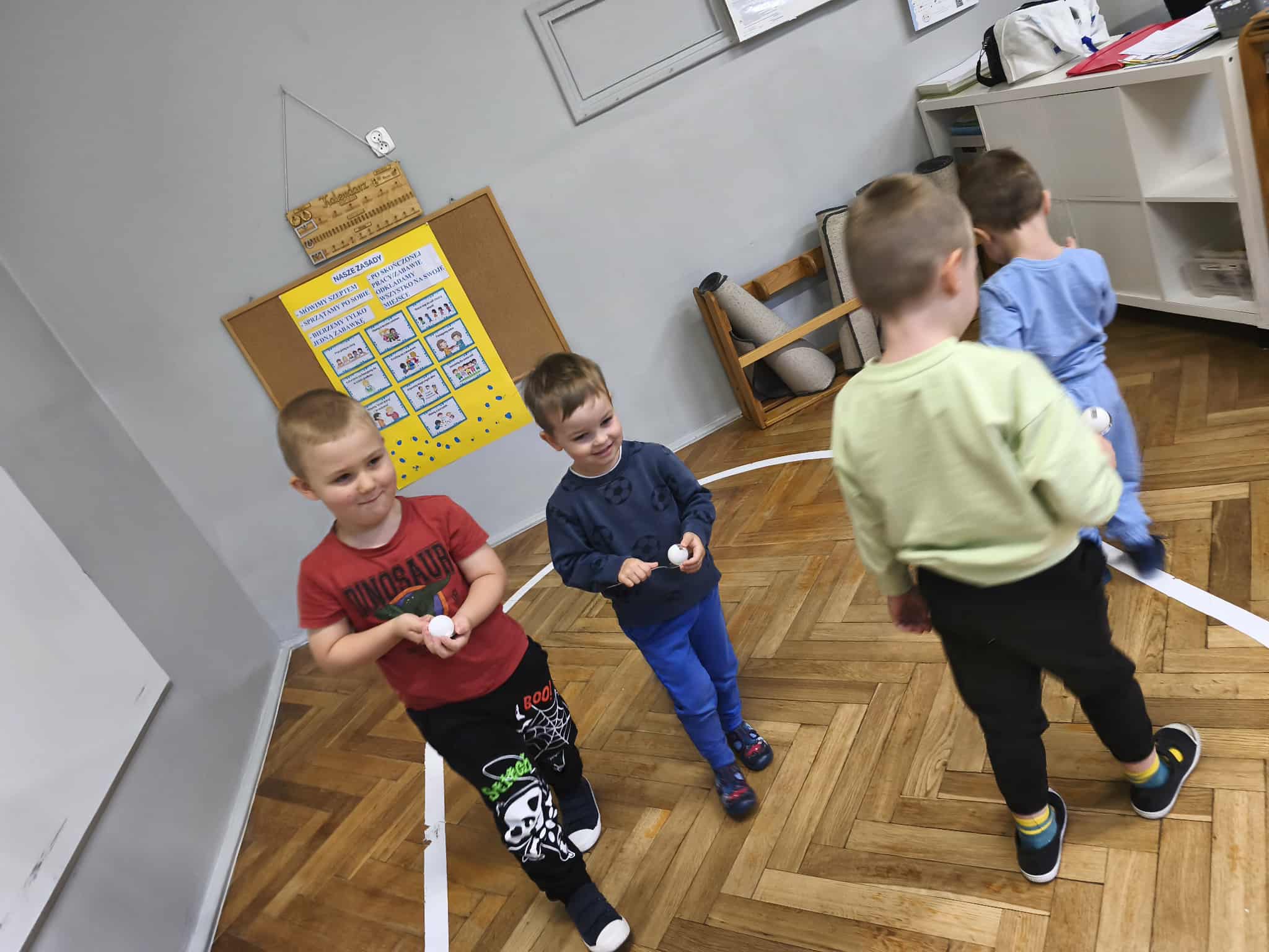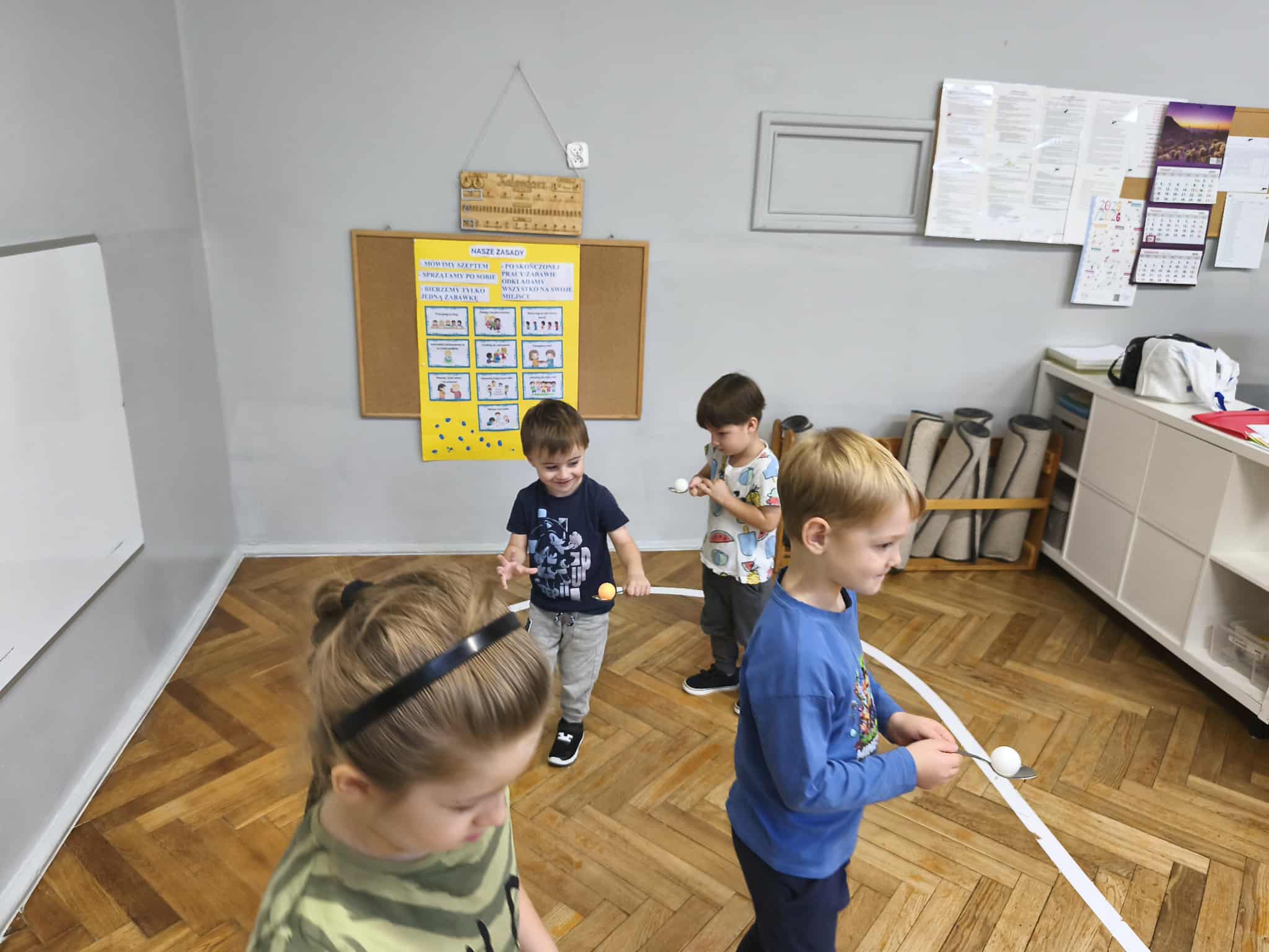 Dziewczynki przygotowały wraz z Wróżką „Superbohaterką” kilka zadań do wykonania dla chłopców. Były to m.in.: przejście z woreczkiem na głowie, tak, aby nie spadł z niej, przejście z łyżką na której umieszczona była piłeczka – oczywiście tak, aby nie spadła, pokonanie toru przeszkód.
