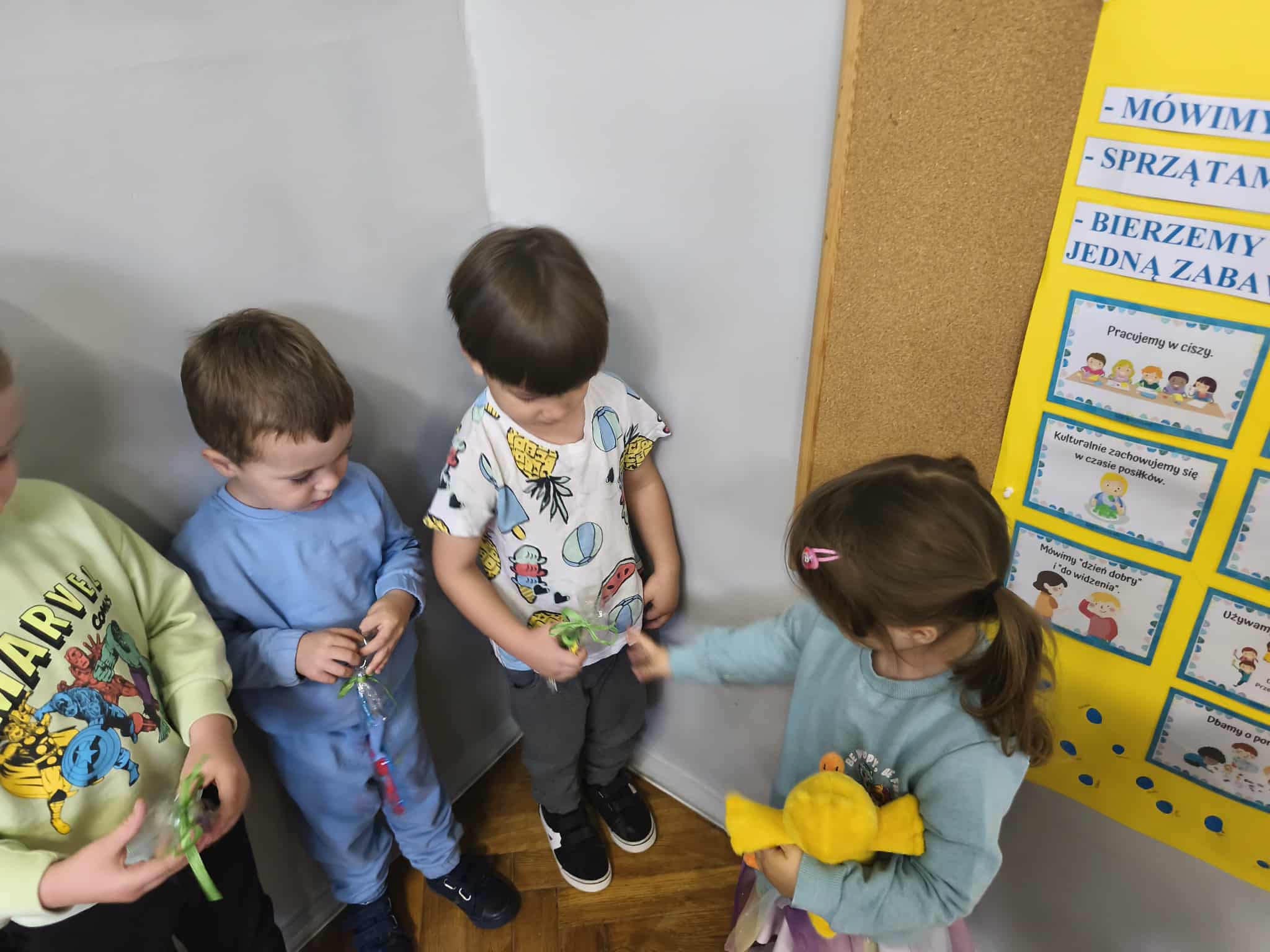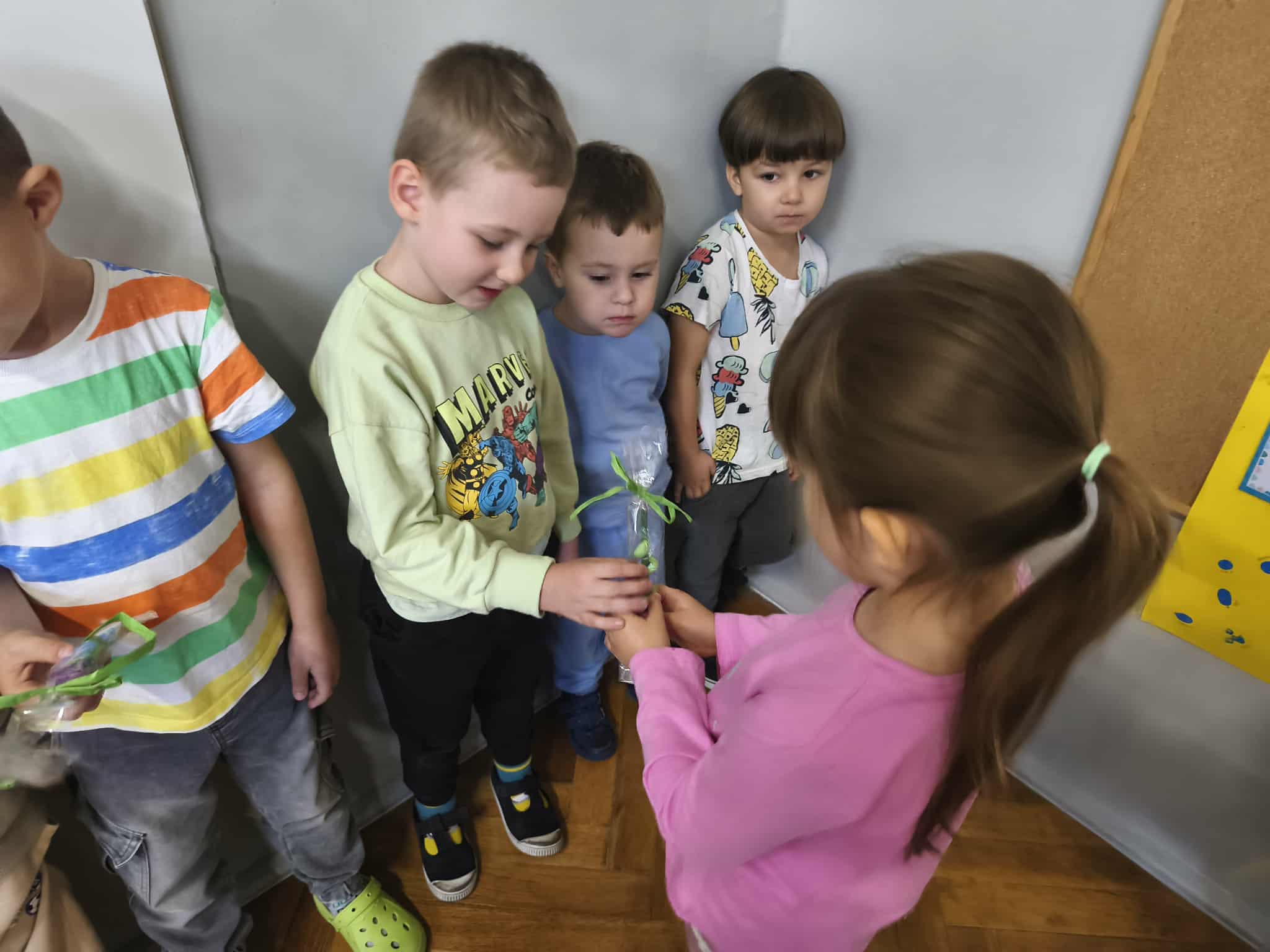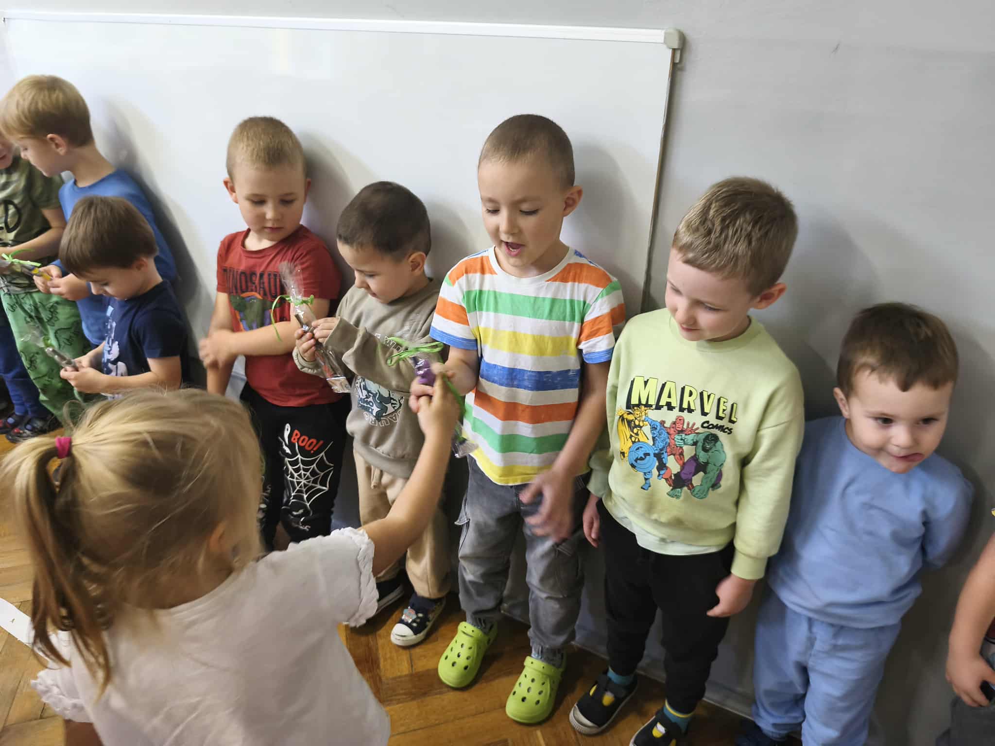 Na zakończenie dziewczynki wręczyły wszystkim drobne upominki – kolorowe ołówki z niespodzianką.
