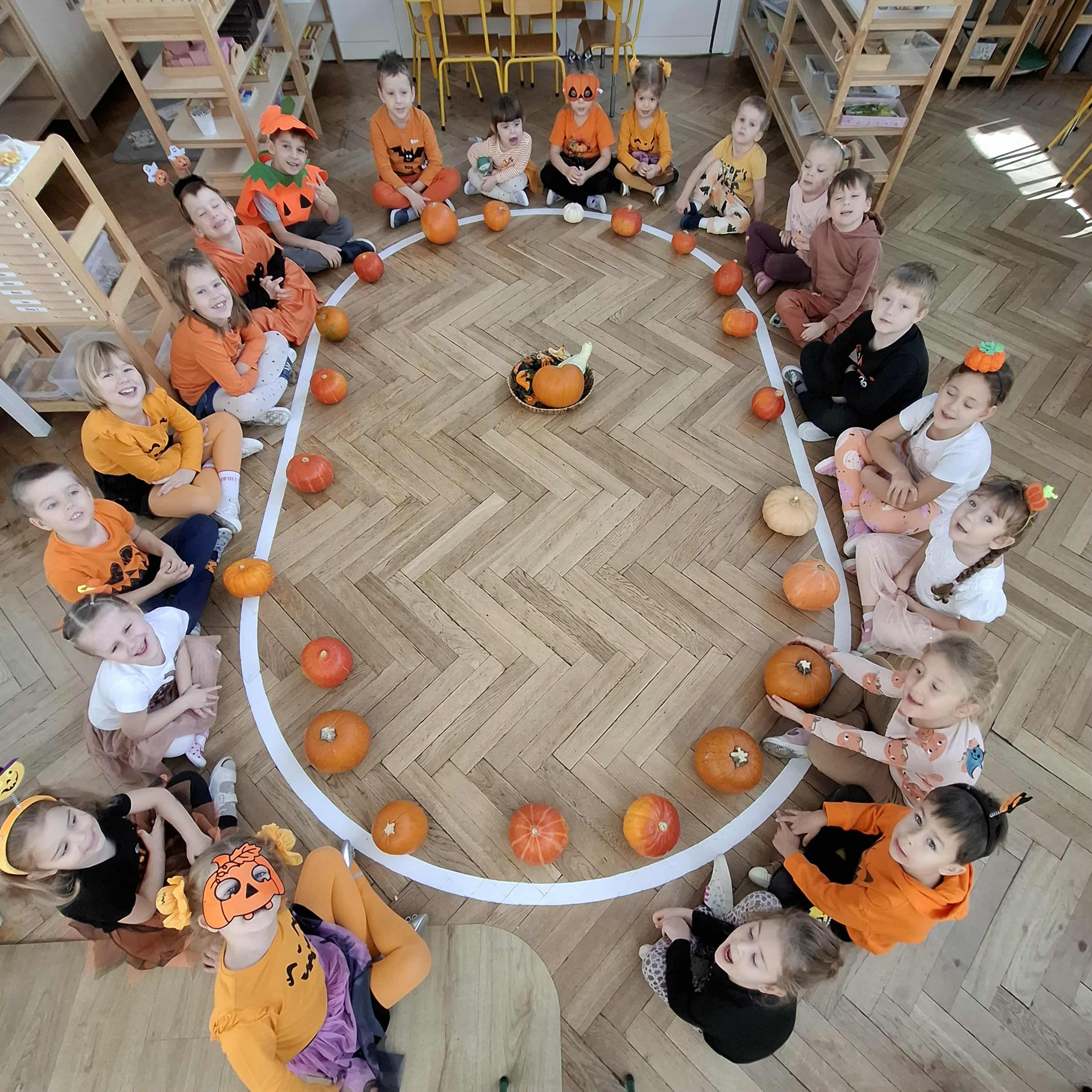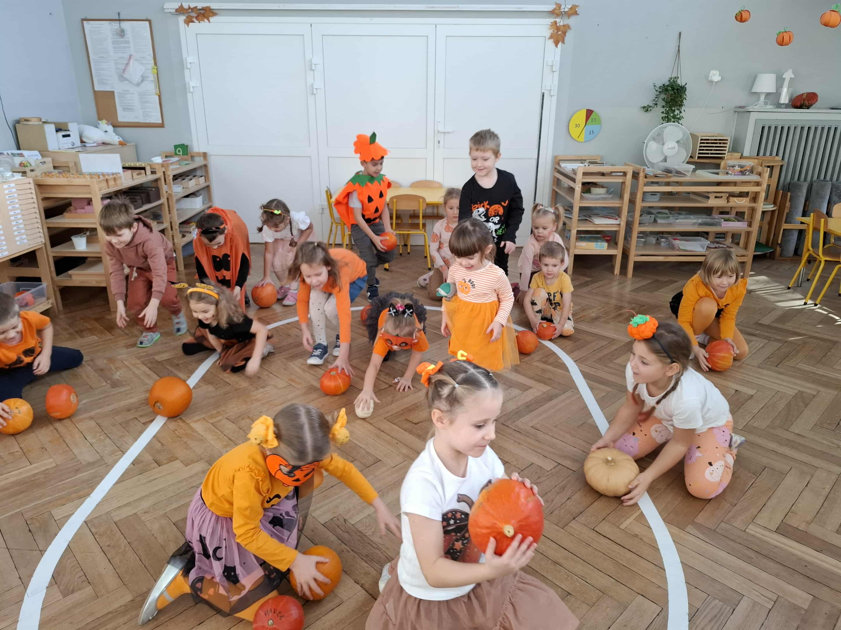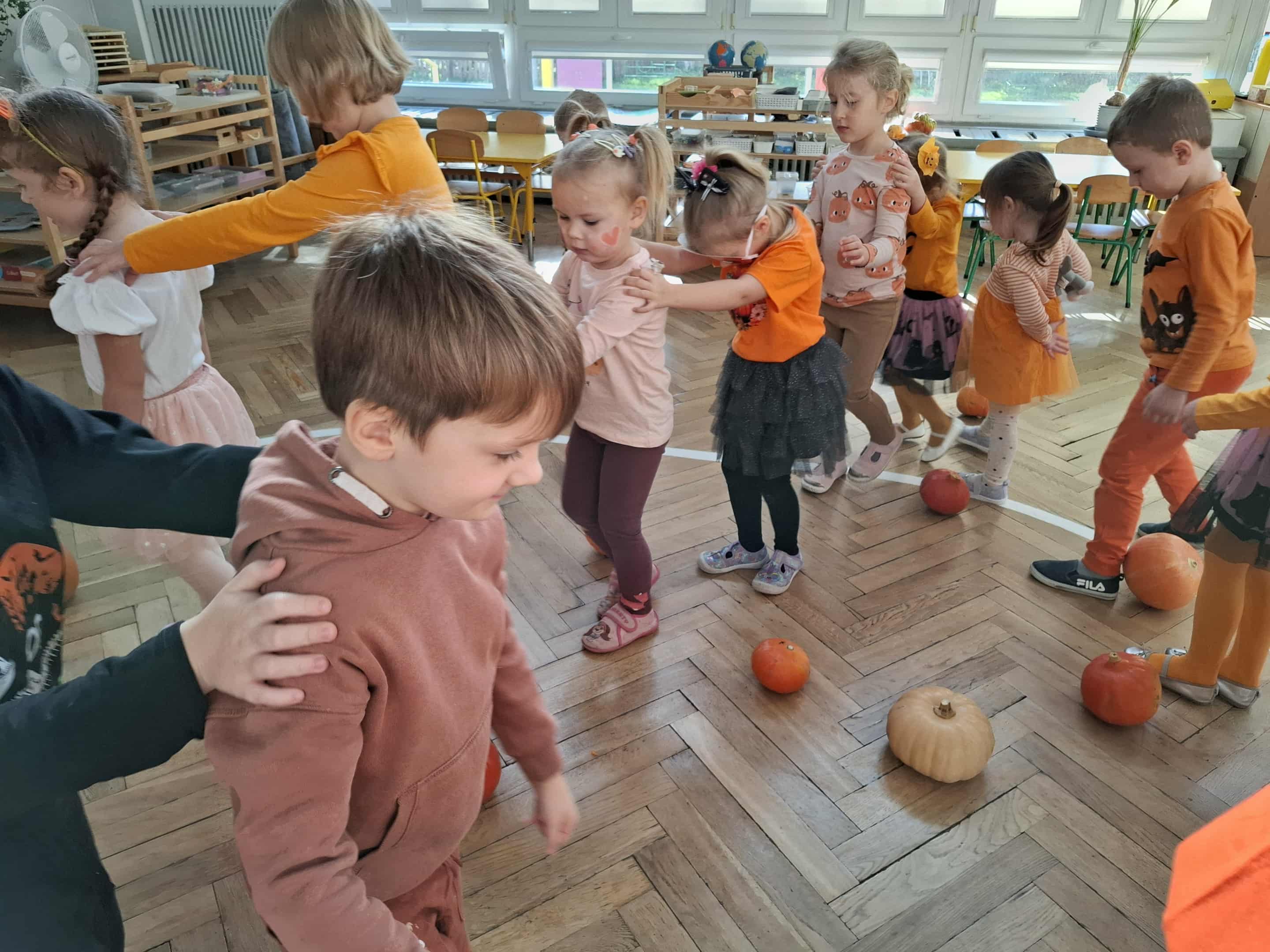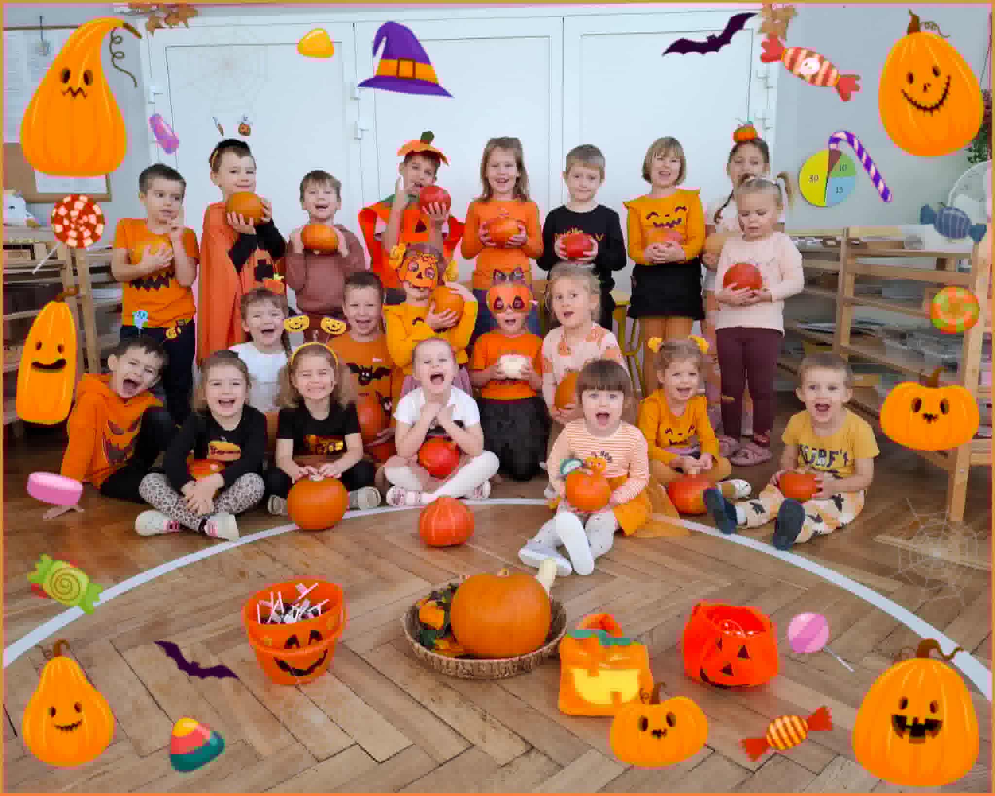 W piątek zrobiło się jak w dyniowym królestwie! Dzieci w pomarańczowych strojach i dyniowych przebraniach zamieniły salę w pole pełne radosnych… warzyw! Okazało się, że dynia to nie tylko pyszne jedzonko, ale też super zabawka – świetnie się toczy, kręci, może udawać pachołek do toru przeszkód, a nawet bęben, na którym grają tylko prawdziwi dyniowi muzycy! Nasza Amelka przygotował dla wszystkich dyniową niespodziankę i przyniosła dyniowe smakołyki - pychota. Pomarańczowa energia rozlała się po całym sali...
