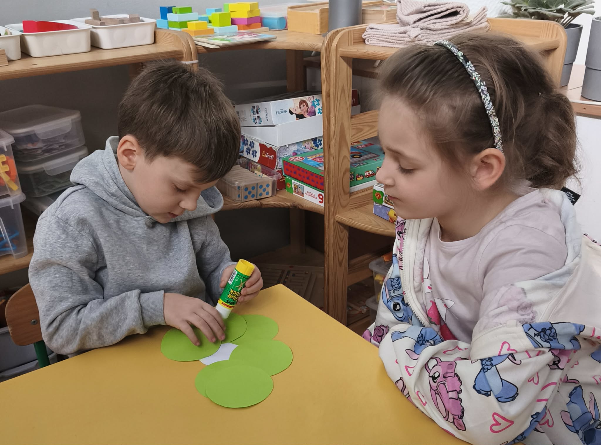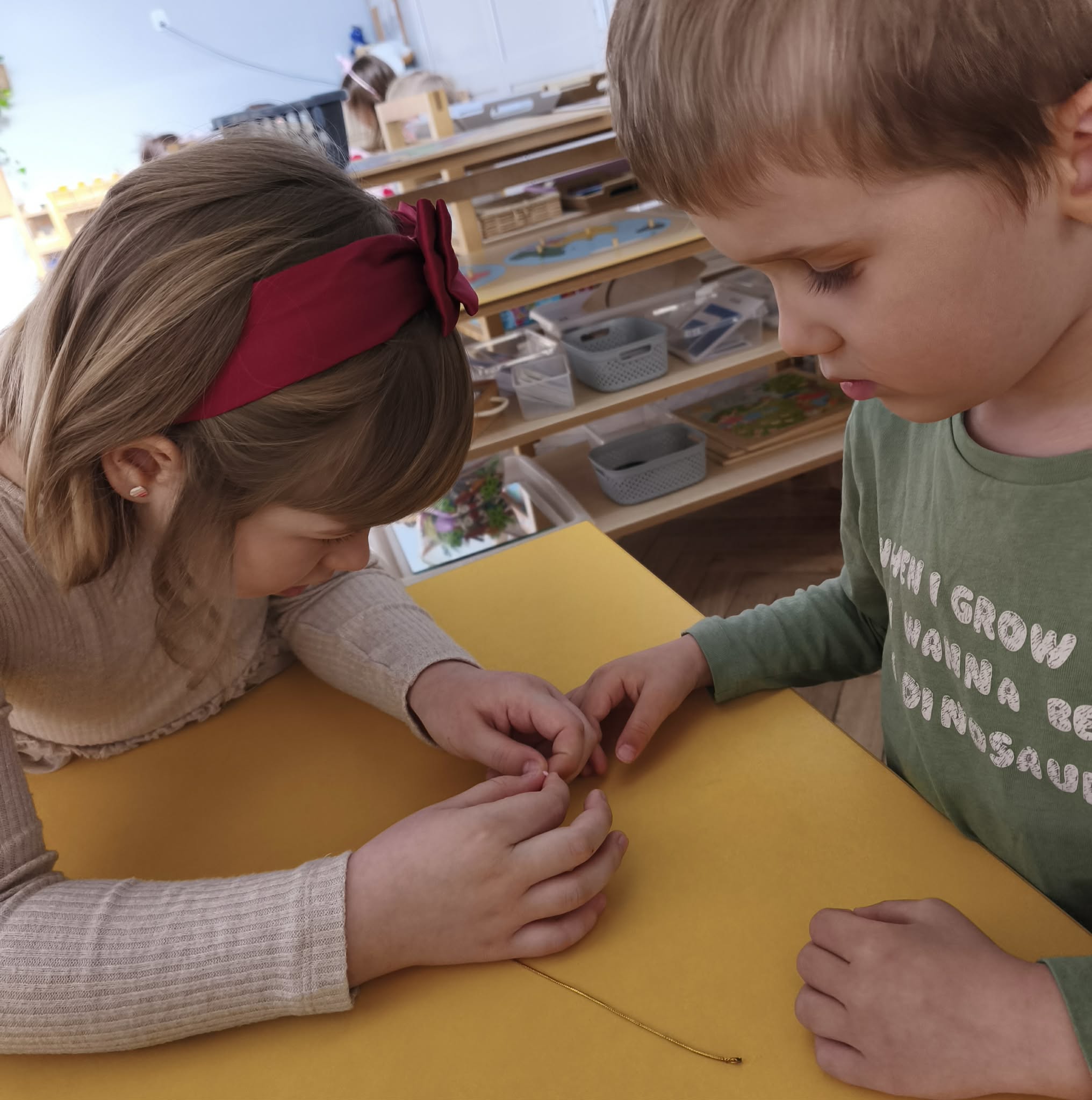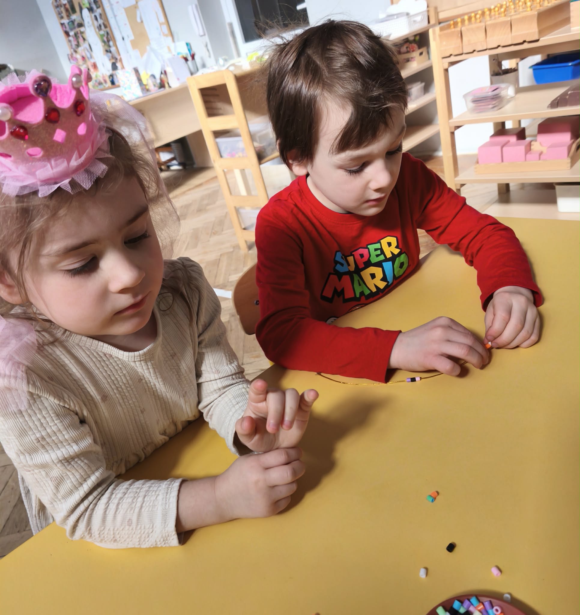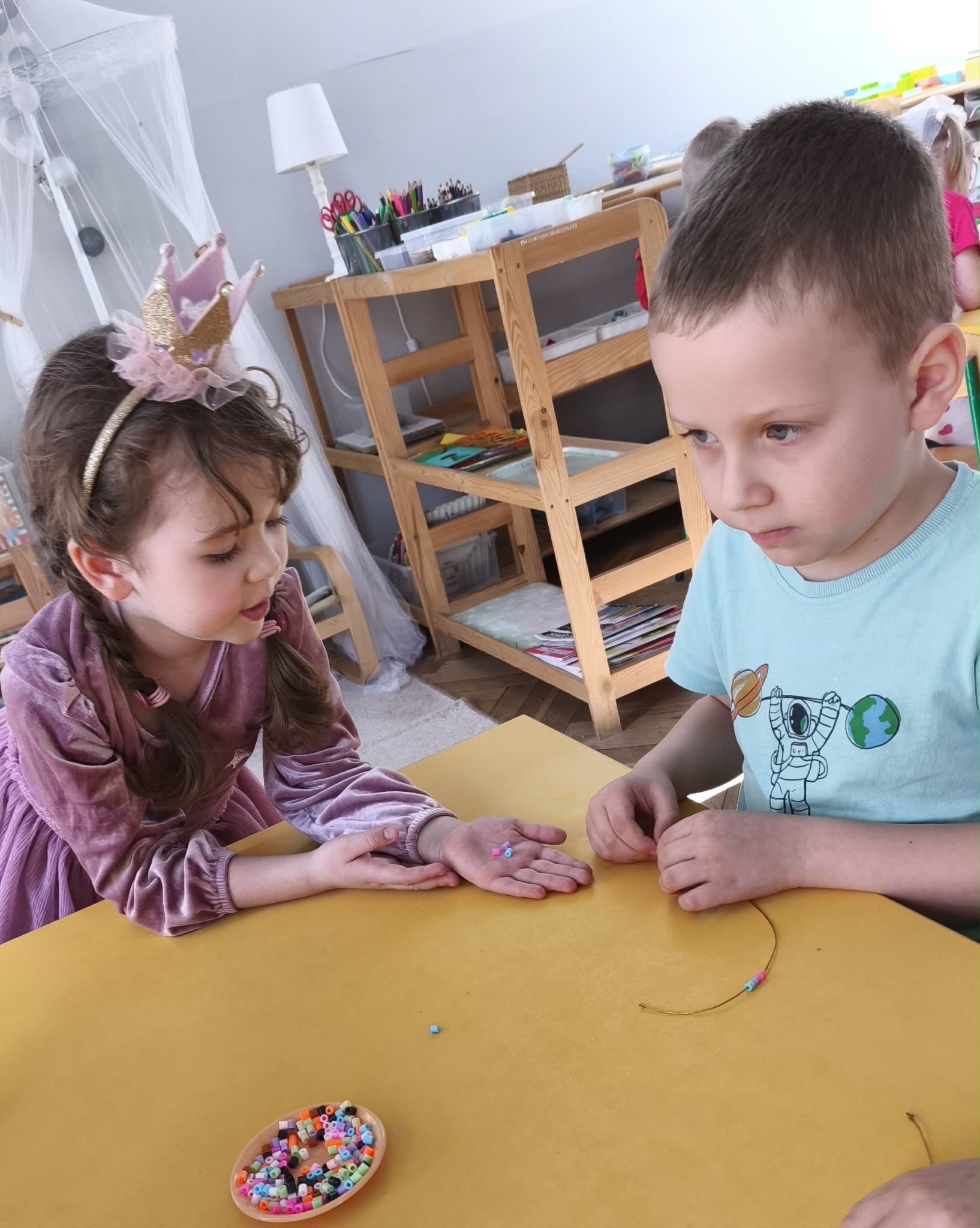 W dniu dzisiejszym obchodziliśmy Dzień Kobiet. Wszystkie nasze Królewny jak prawdziwe damy otrzymały od chłopców własnoręcznie wykonane kwiatki. Chłopcy również zamienili się w jubilerów i wykonywali bransoletki wg gustów dziewczynek. Nie obyło się również bez upominków, które wręczali chłopcy. W tym dniu praca z materiałem także odbywała się w parach damsko - męskich. Z pewnością był to wyjątkowy czas.