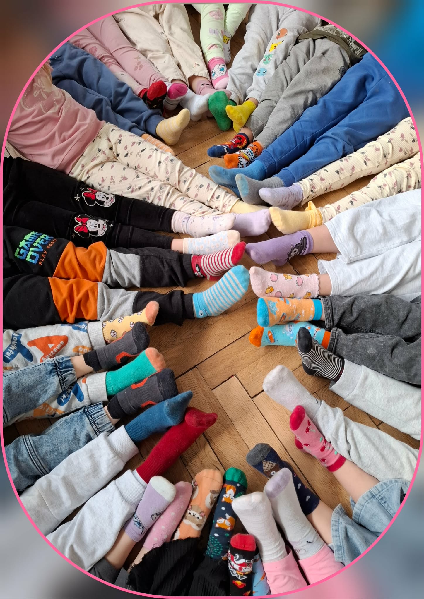 Już w piątek obchodziliśmy Międzynarodowy Dzień Kolorowej Skarpetki (21 marca) – wyjątkowe święto, które stało się doskonałą okazją do rozmów o odmienności i wzajemnym szacunku. Podczas zajęć dzieci doszły do wniosku, że różnorodność jest naturalną częścią naszego życia, a każdy człowiek – niezależnie od tego, czym się wyróżnia – jest tak samo ważny i zasługuje na akceptację.