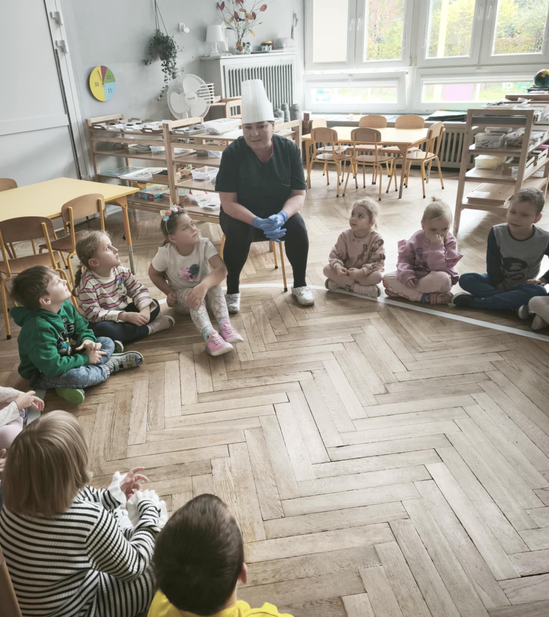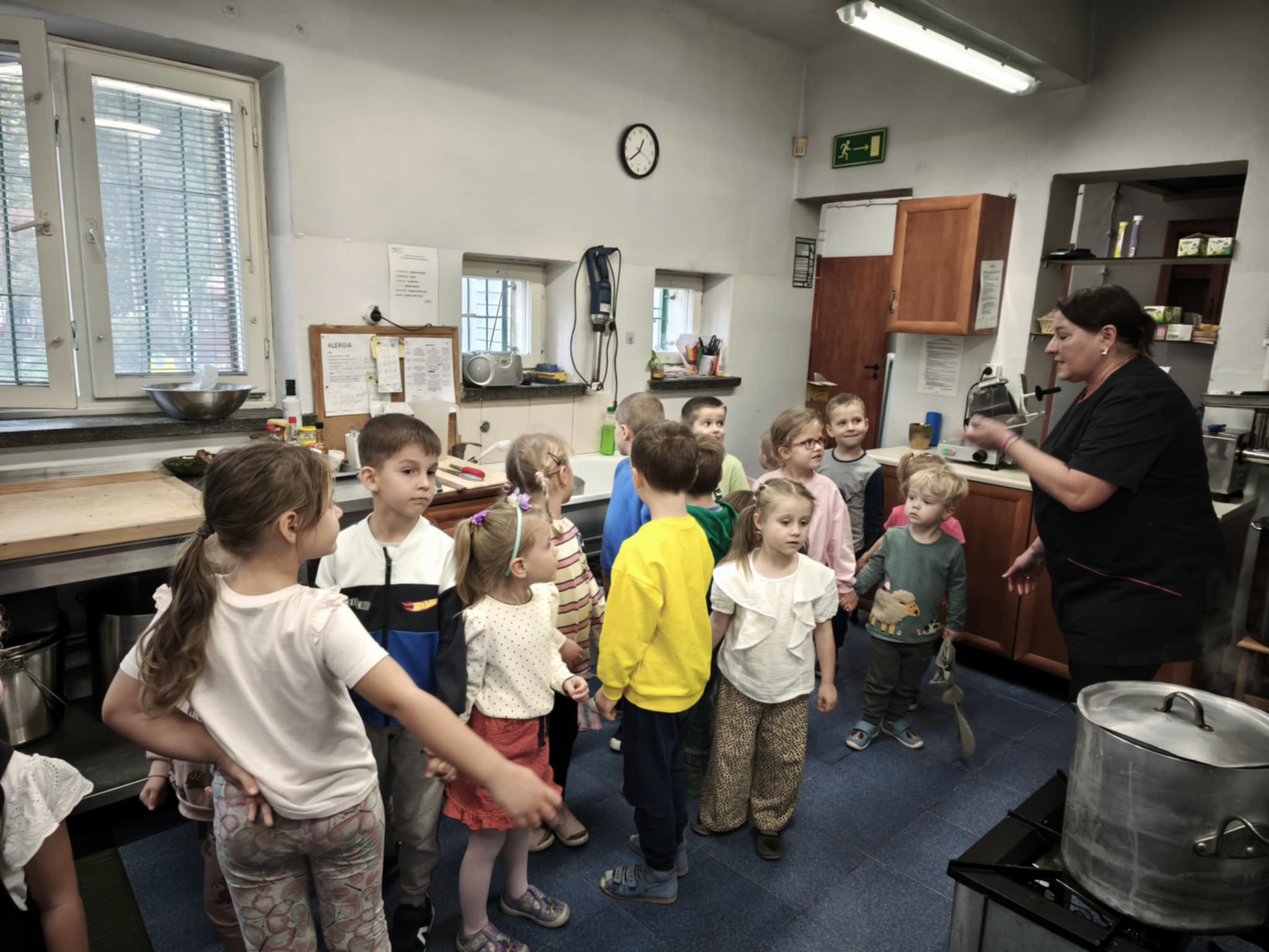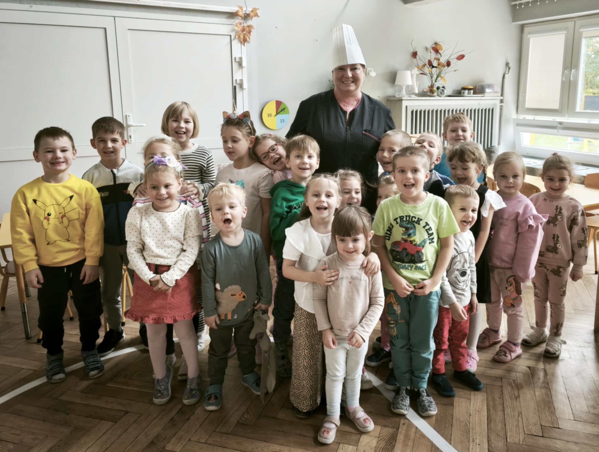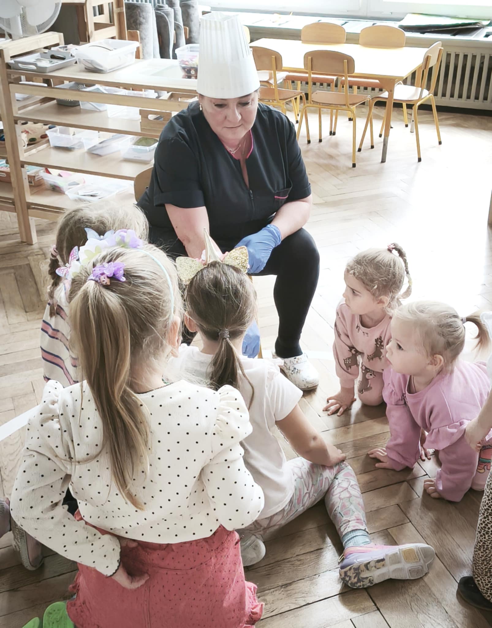 Dziś obchodziliśmy Międzynarodowy Dzień Kucharza. Jakie było zaskoczenie kiedy naszym gościem specjalnym - kucharzem - okazała się Pani Żanetka. To dla niej dzieci przygotowały pytania aby dowiedzieć się jak najwięcej o tym zawodzie. Oglądanie sprzętu kuchennego XXL i zwiedzanie przedszkolnej kuchni od zaplecza to było coś co wywoływało zachwyt. Dziękujemy za te doświadczenia pani Żanetce i Ani ...bo każdy kucharz ma swojego pomocnika :-)