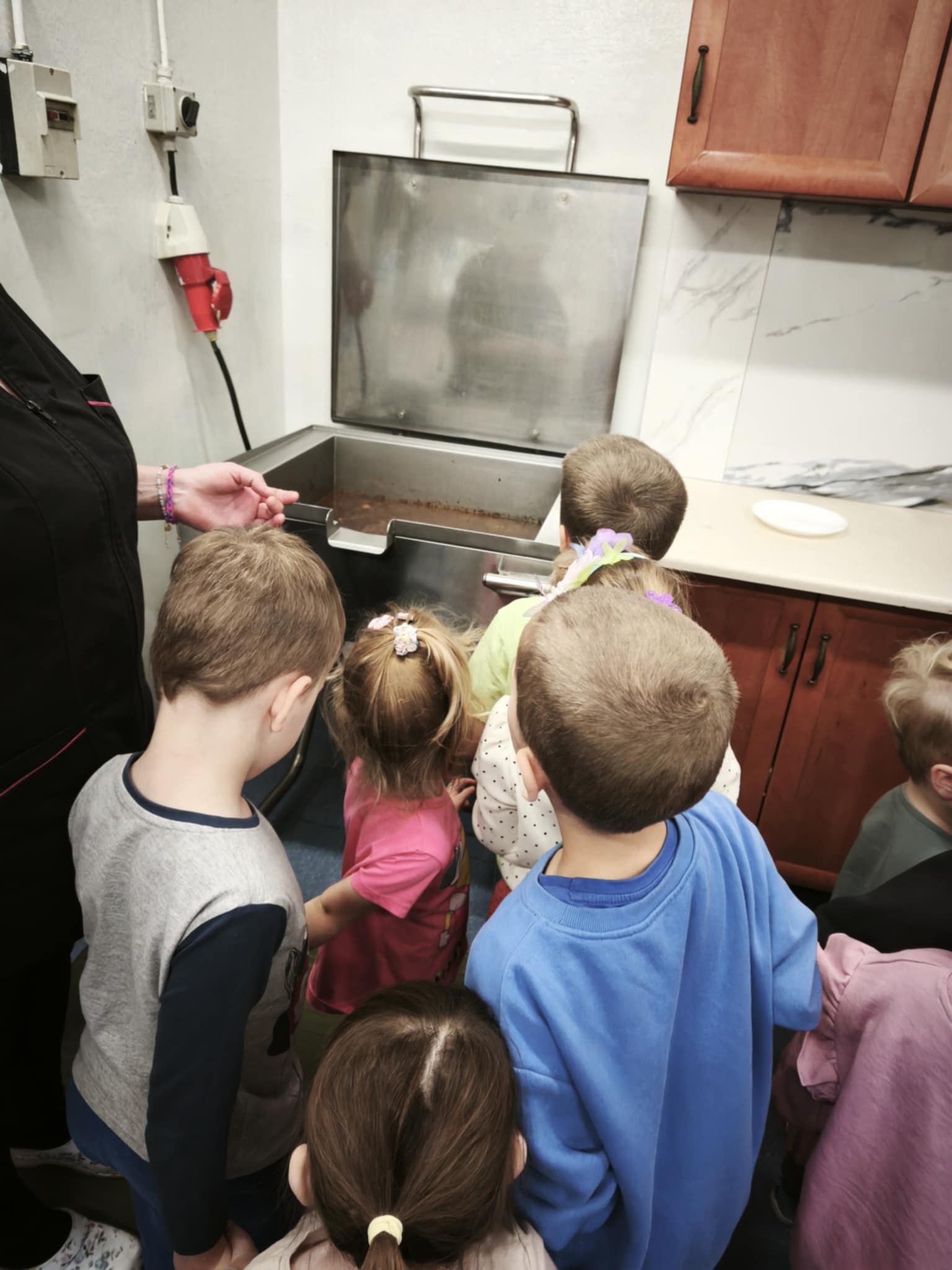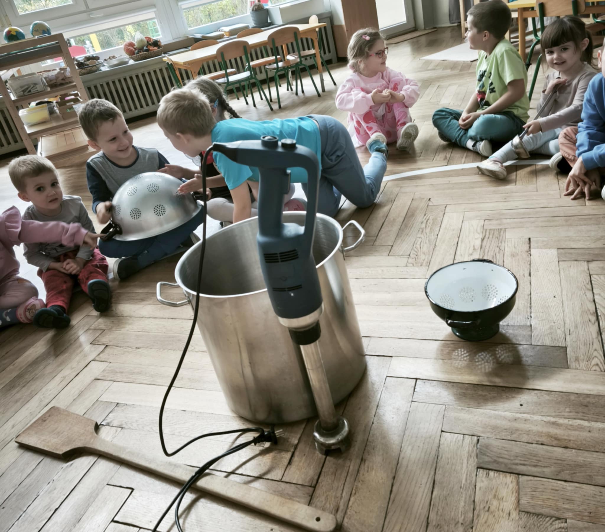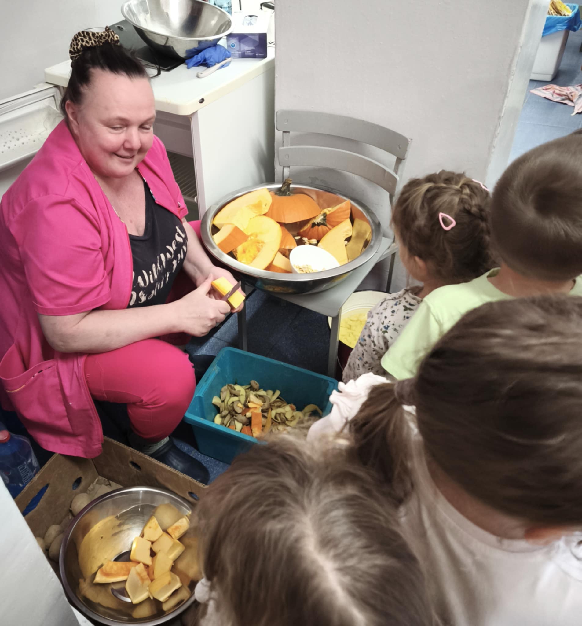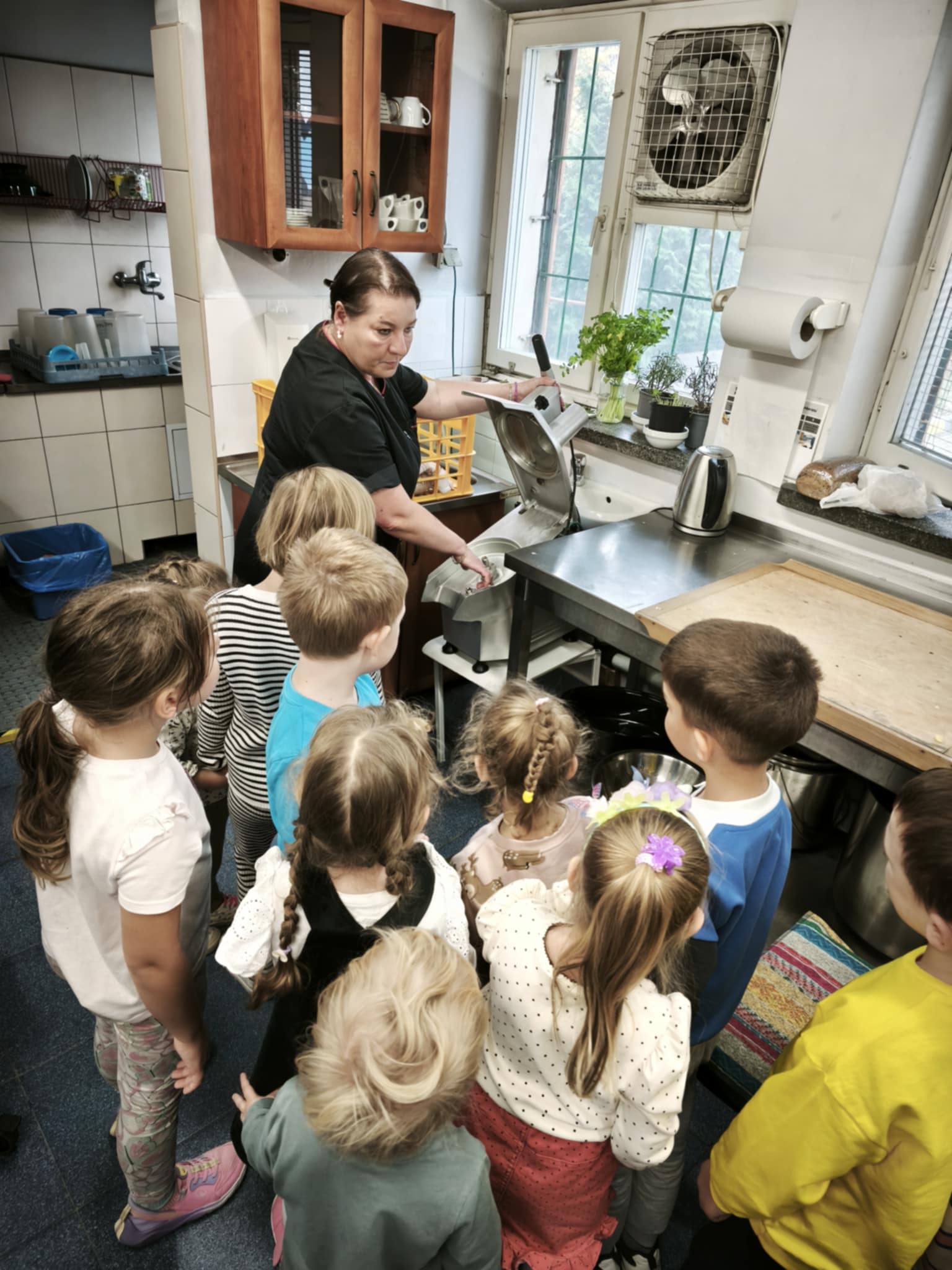 Dziś obchodziliśmy Międzynarodowy Dzień Kucharza. Jakie było zaskoczenie kiedy naszym gościem specjalnym - kucharzem - okazała się Pani Żanetka. To dla niej dzieci przygotowały pytania aby dowiedzieć się jak najwięcej o tym zawodzie. Oglądanie sprzętu kuchennego XXL i zwiedzanie przedszkolnej kuchni od zaplecza to było coś co wywoływało zachwyt. Dziękujemy za te doświadczenia pani Żanetce i Ani ...bo każdy kucharz ma swojego pomocnika :-)