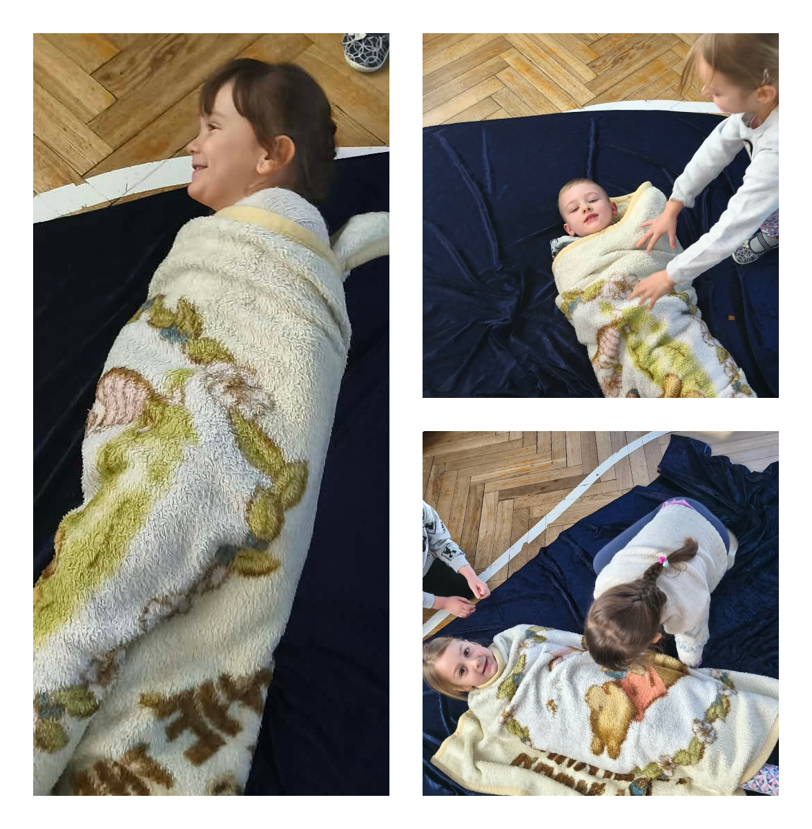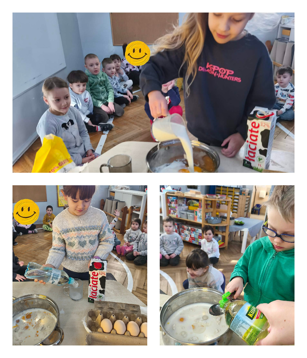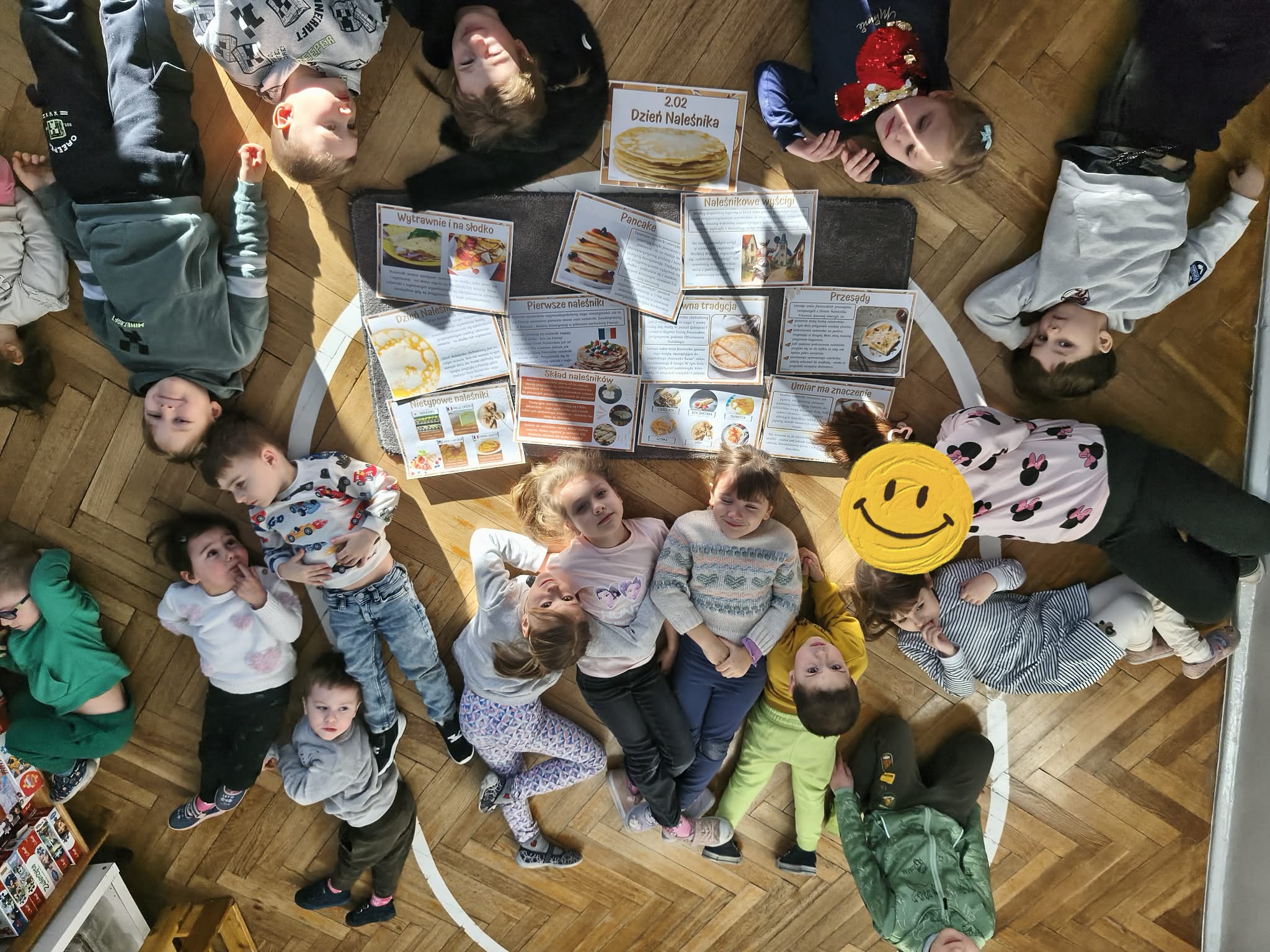 Dzisiejszego dnia obchodziliśmy w naszej grupie Dzień Naleśnika. Była to doskonała okazja do zorganizowania w naszym przedszkolu zajęć i zabaw z jego wykorzystaniem. Tego dnia nie mogło zabraknąć także akcentów kulinarnych. Dzieci poznały przepis na to danie. Podawały przykładowe jadłospisy z zastosowaniem naleśników. Wymieniały produkty i akcesoria kuchenne potrzebne do przygotowania naleśników. Zanim przystąpiliśmy do pracy, dzieci poznały historię naleśnika oraz każdy miał możliwość poczuć się naleśnikiem podczas zabawy.
