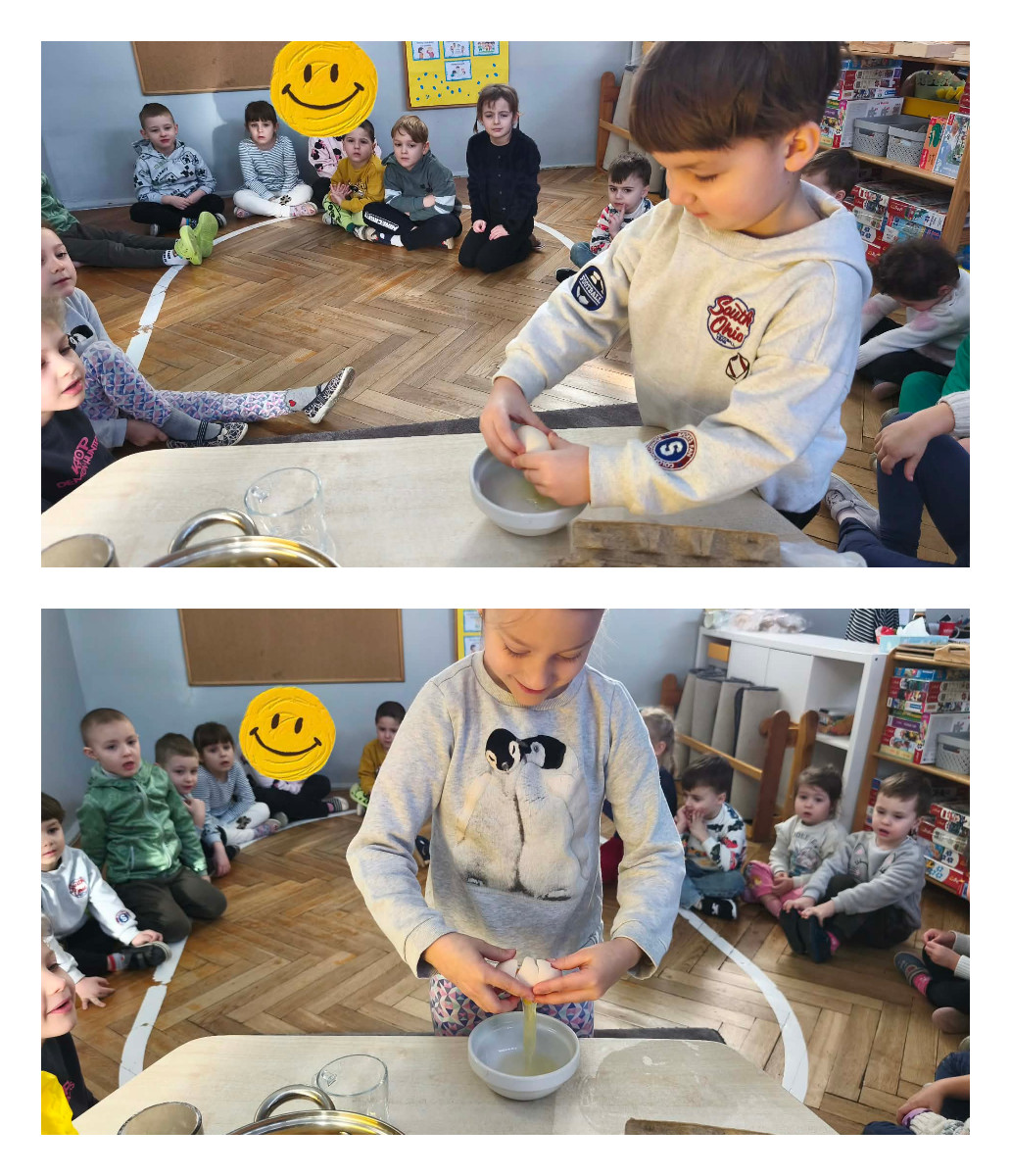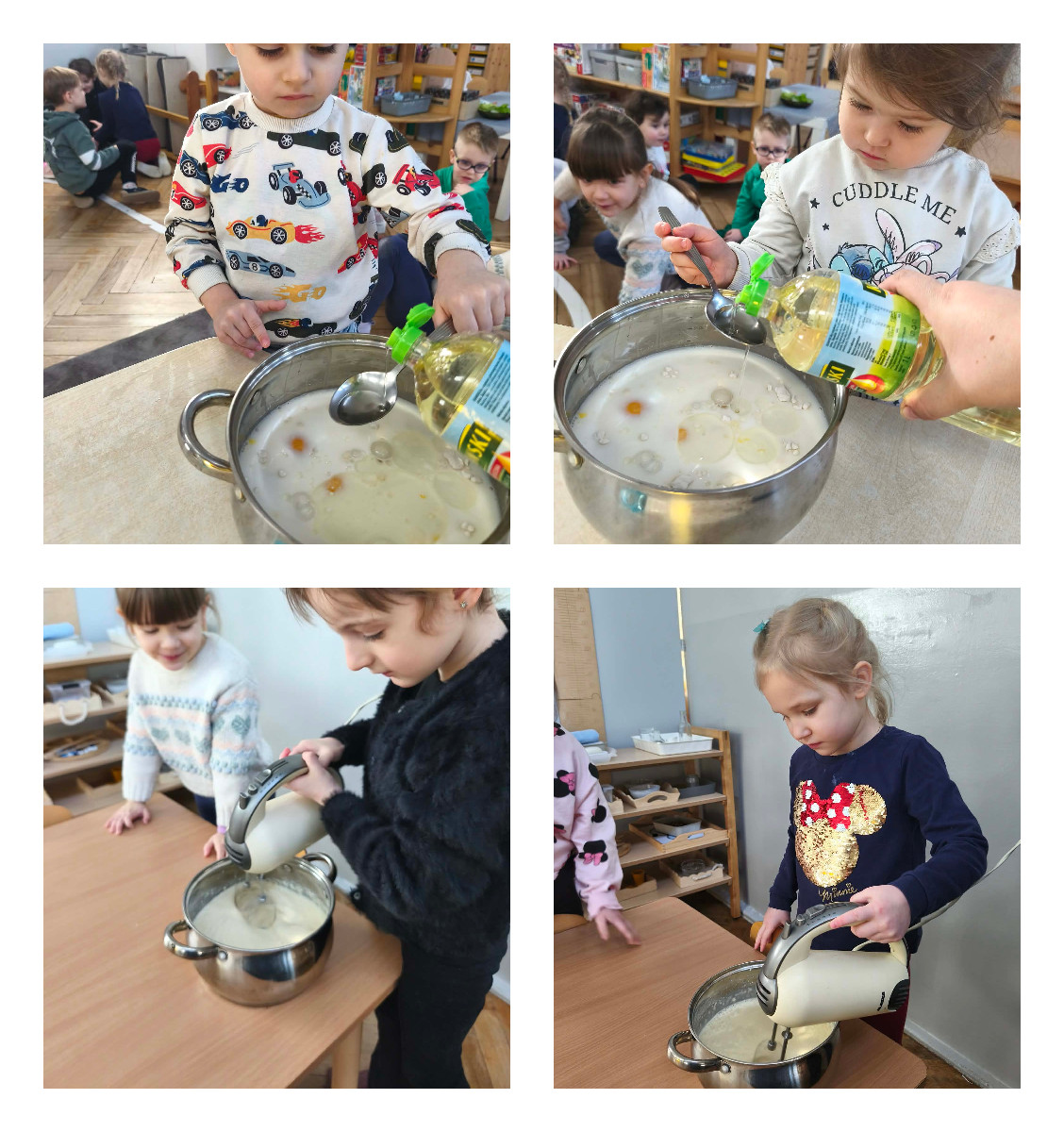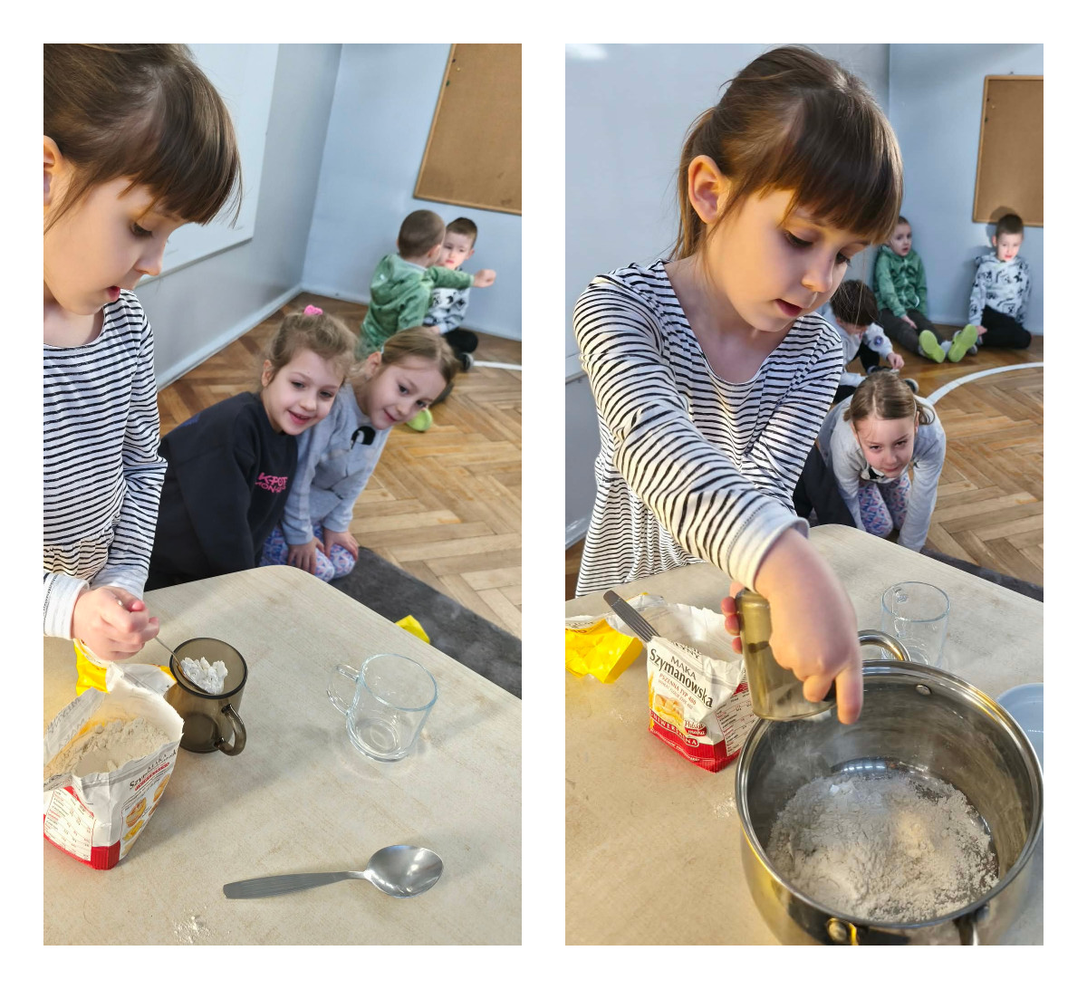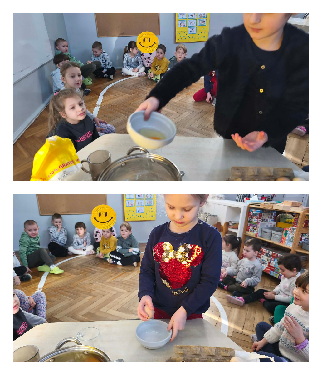 Dzieci miały również okazję wykazać się własną inwencją podczas przygotowywania deseru w postaci naleśników z ulubionymi dodatkami, tj. Kremem nutella, dżemem truskawkowym, cukrem i miodem. Zdecydowanie najprzyjemniejszym i najbardziej wyczekiwanym momentem całego dnia była degustacja samodzielnie skomponowanego deseru.