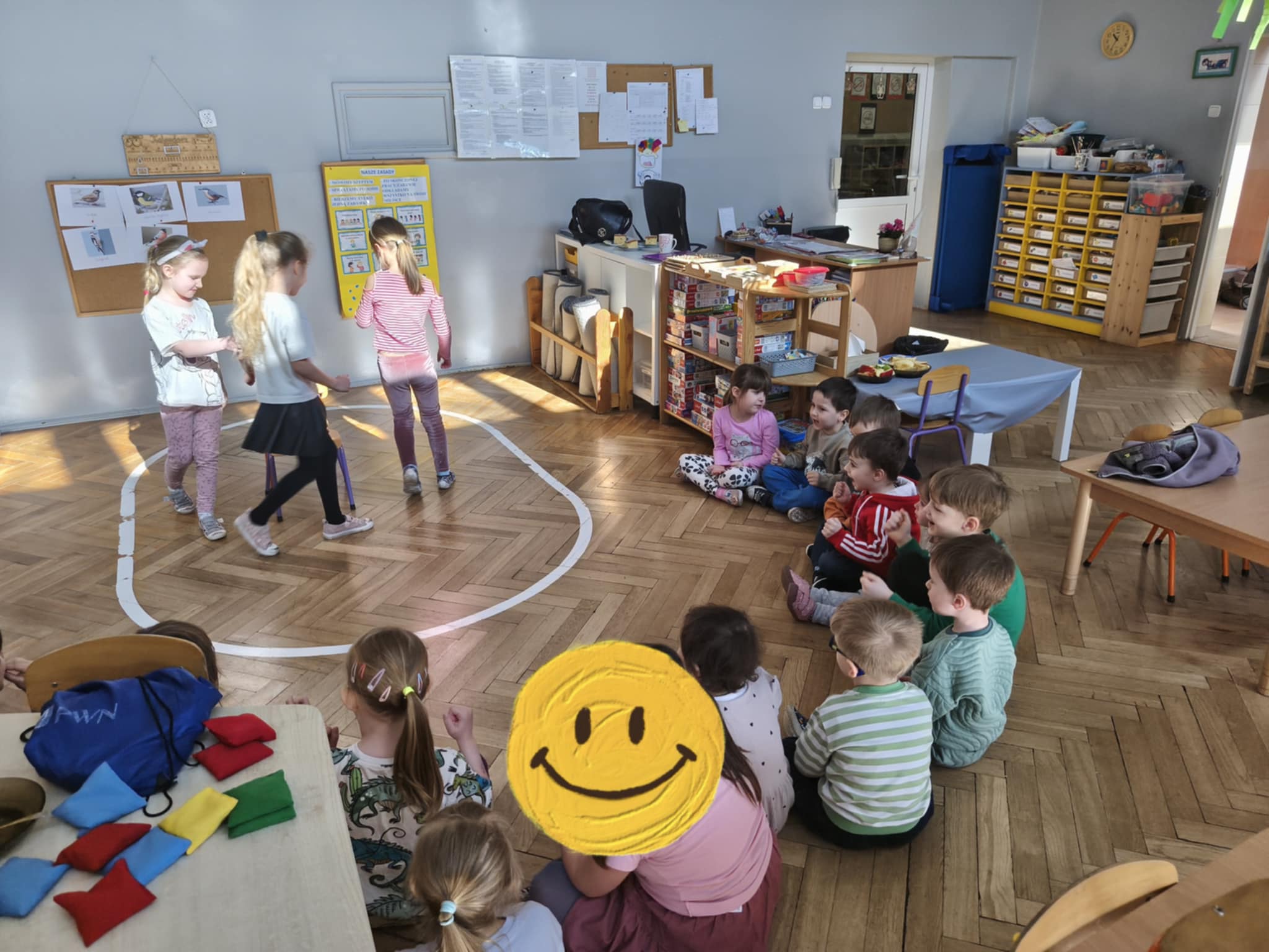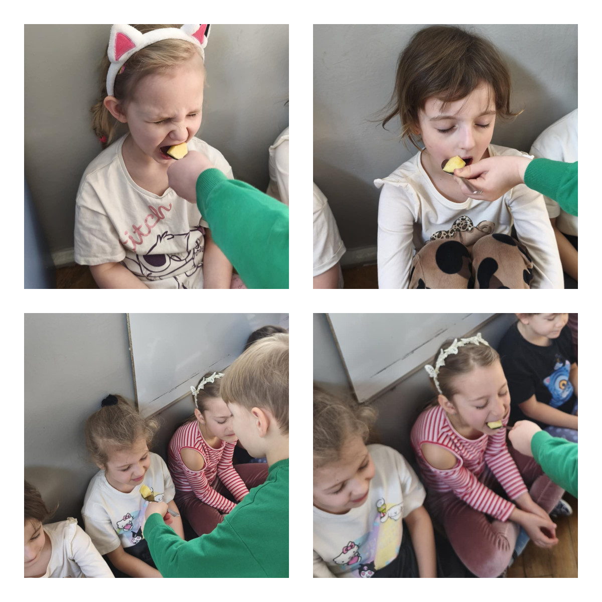 Dziewczynki musiały wykazać się dużą sprawnością, tańcząc i skacząc z woreczkiem na głowie. Potem wzięły udział w emocjonującej zabawie w „gorące krzesełka”. Najwięcej odwagi wymagało jednak ostatnie zadanie – dziewczynki z zamkniętymi oczami próbowały jabłek i pomarańczy, ufając swojemu koledze, który podawał im owoce.