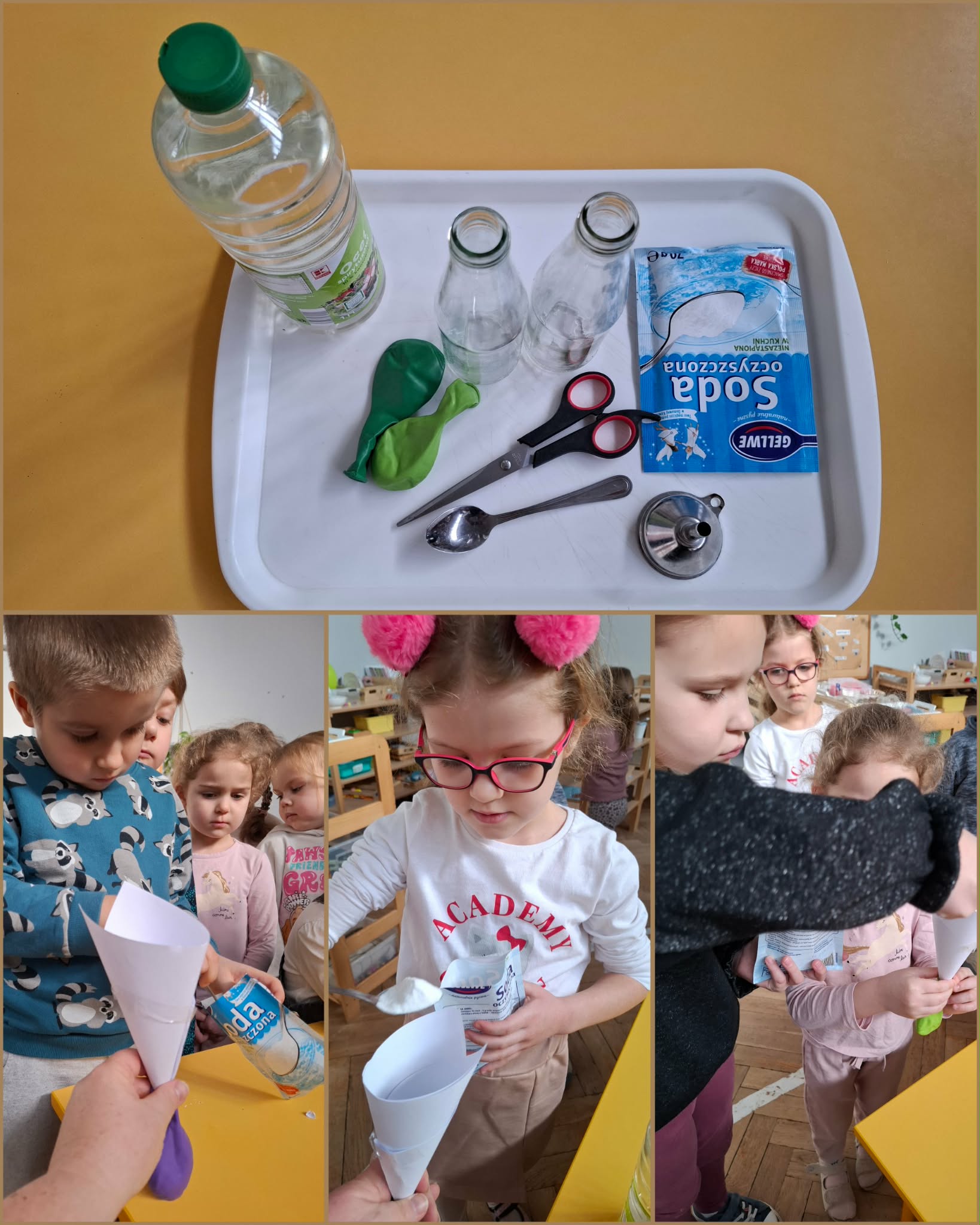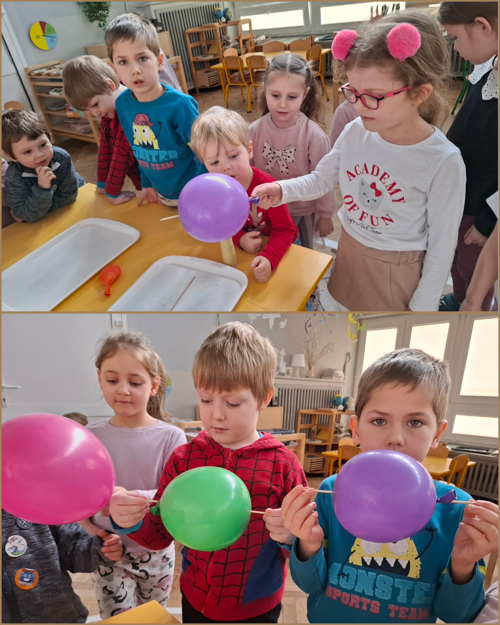 Na pożegnanie karnawału eksperymentowaliśmy z jego głównym atrybutem, czyli z balonem. Zanim zaczęliśmy, oczywiście omówiliśmy zasady bezpieczeństwa w czasie wykonywania doświadczeń a potem już tylko do pracy. Doświadczenia dały dzieciom ogromną radość a na buziach, na zmianę pojawiało się zdziwienie i radość. Eksperymenty to fajna sprawa. Zachęcamy do wykonania ich w domu, oczywiście z rodzicami.