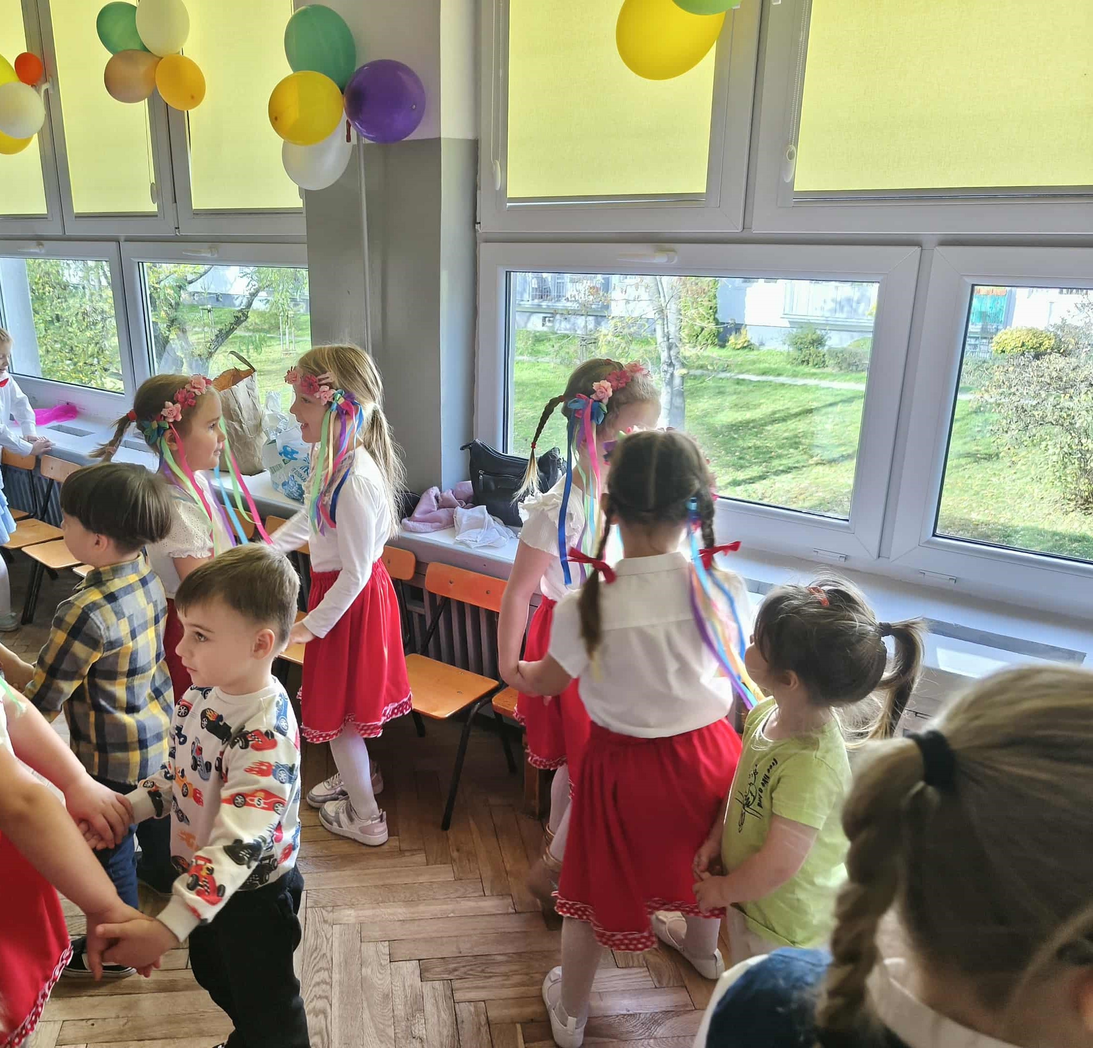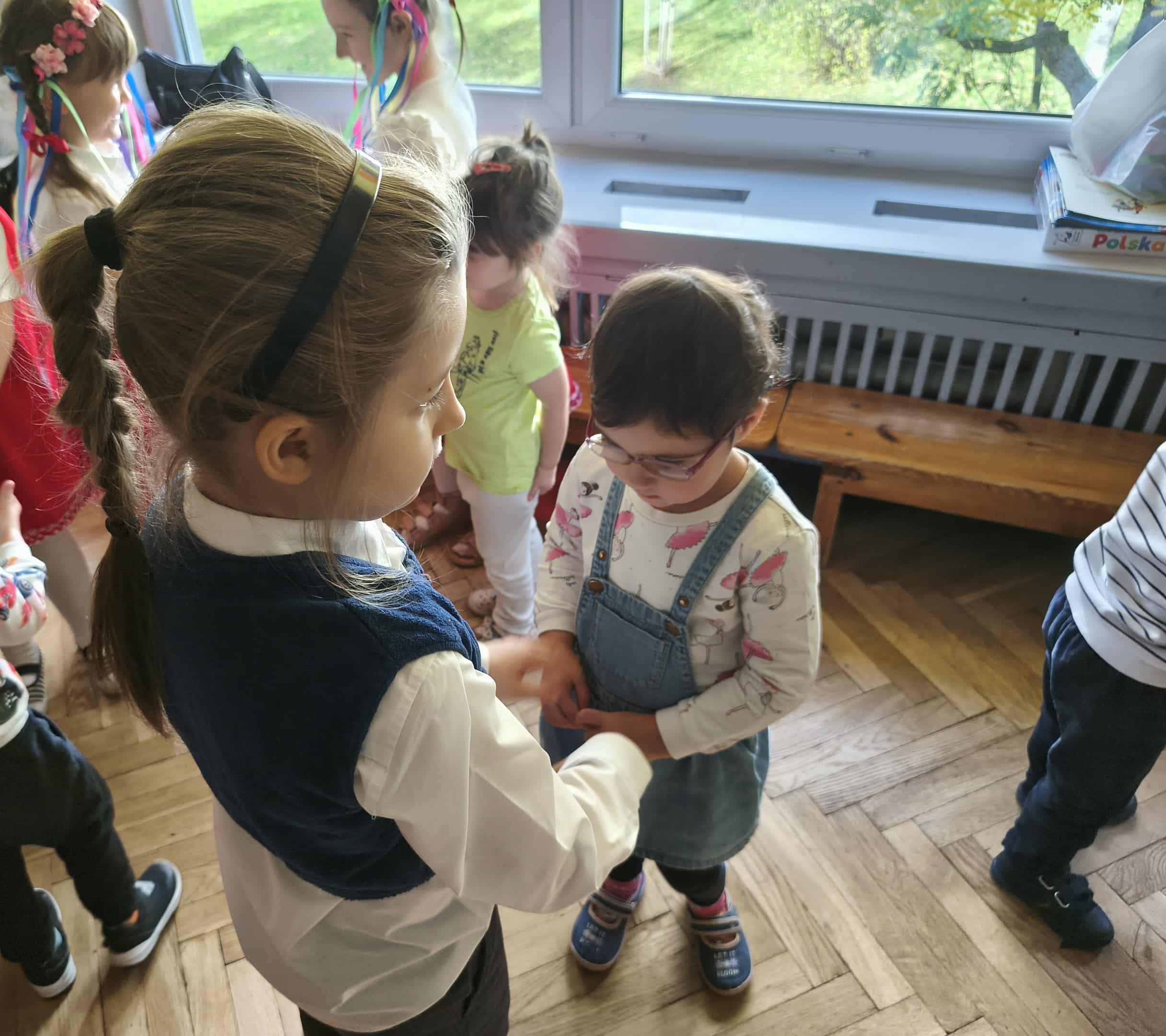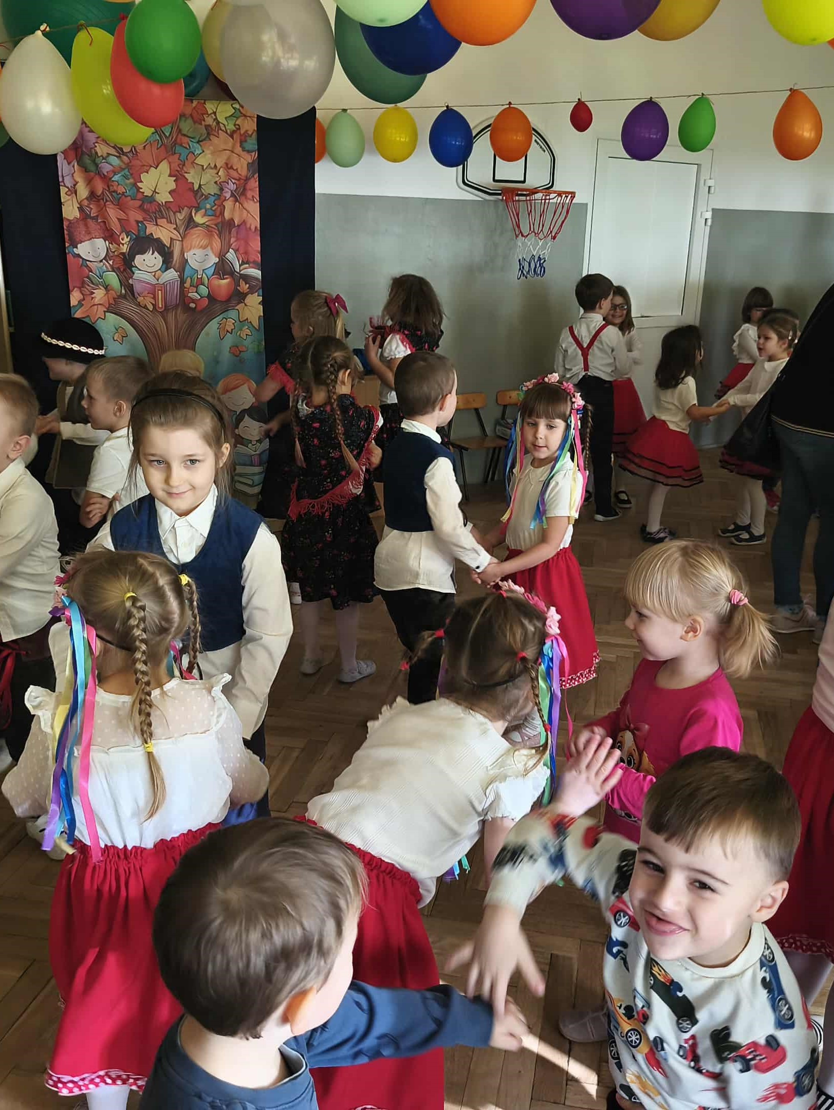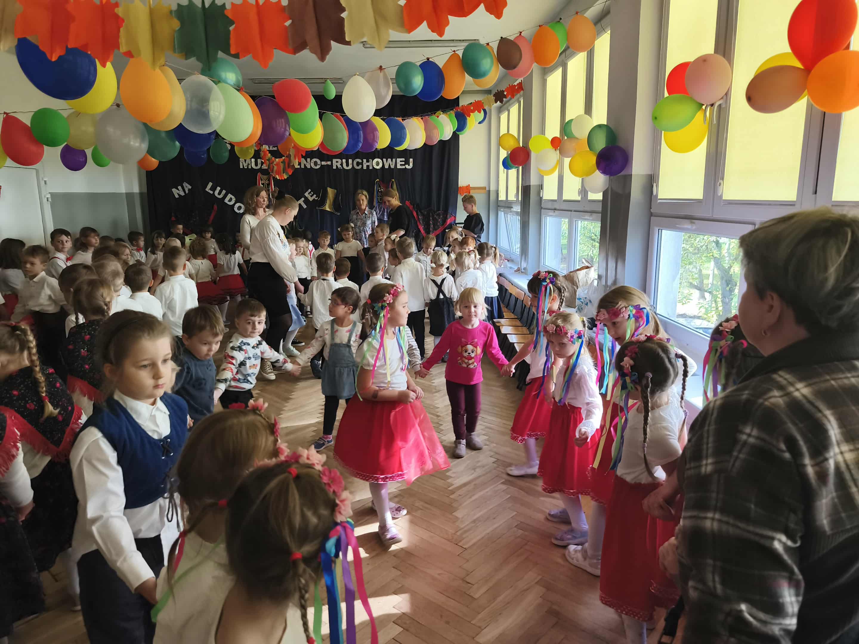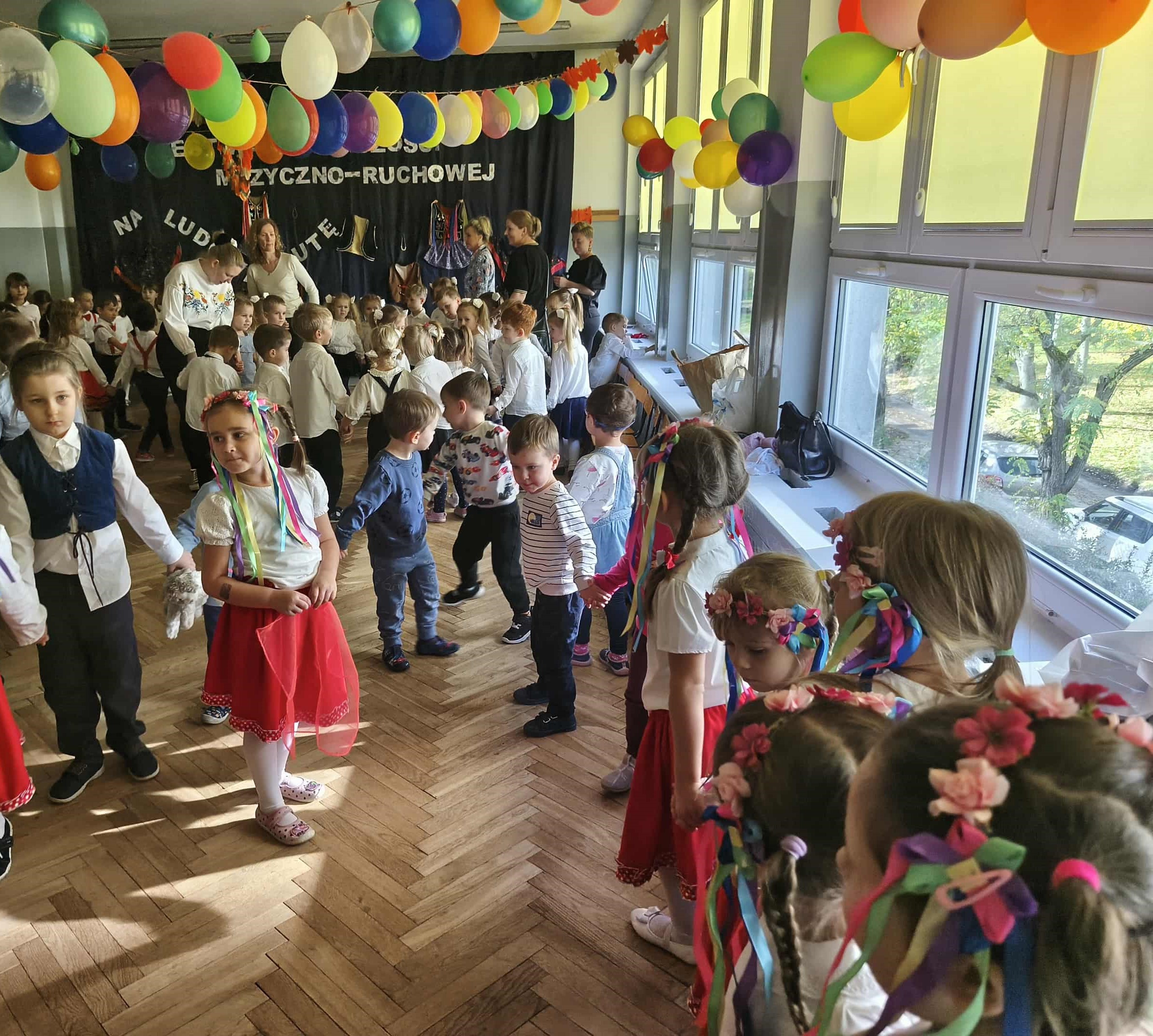 gdzie dzieci 5-6 letnie brały udział w Festiwalu muzyczno- ruchowym. Przełamując swój lęk przed wystąpieniami, zatańczyły „Krakowiaczka”. Wyszło im to bardzo ładnie, a oklasków od swoich kolegów z grupy i innych dzieci biorących udział w Festiwalu nie było końca.