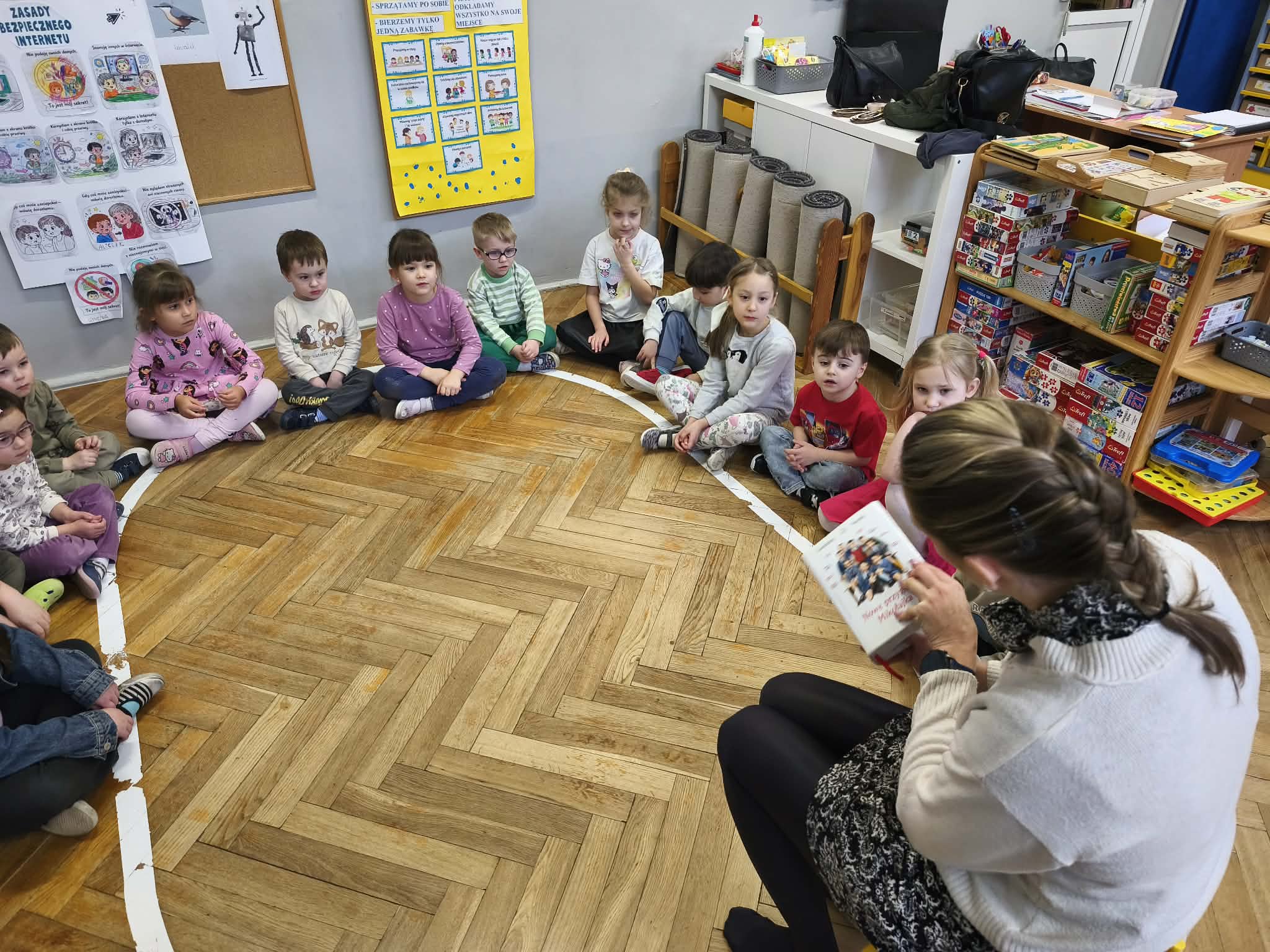 Dzisiejszego dnia odwiedziła nas mama Alicji, która w ramach akcji "Głośnego czytania w grupie" wprowadziła dzieci w świat literatury. Wspólnie poznaliśmy radosne historie z książki "Nowe przygody Mikołajka". Przedszkolaki z ogromnym zaciekawieniem śledziły losy bohaterów, z uwagą przyglądając się charakterystycznym ilustracjom, które ożywiały ich wyobraźnię.