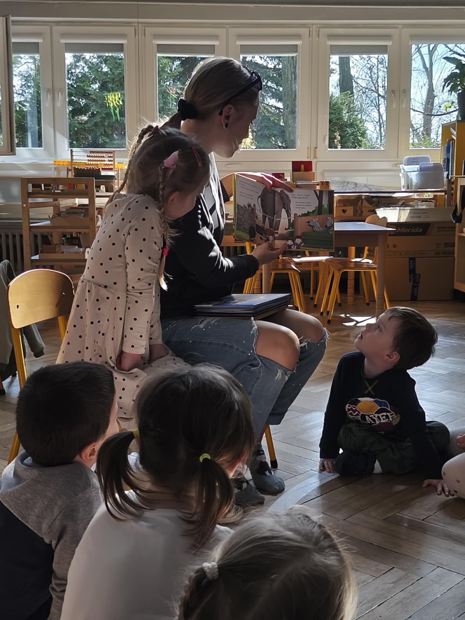 Dzisiaj odwiedziła nas mama Anastazji, która w ramach akcji Głośnego Czytania w grupie czytała dzieciom przygody „Jadzi Pętelki”. Przedszkolaki z dużym zainteresowaniem słuchały opowiadań, a po zakończeniu lektury miały okazję wspólnie oglądać kolorowe ilustracje i rozmawiać o perypetiach bohaterki.