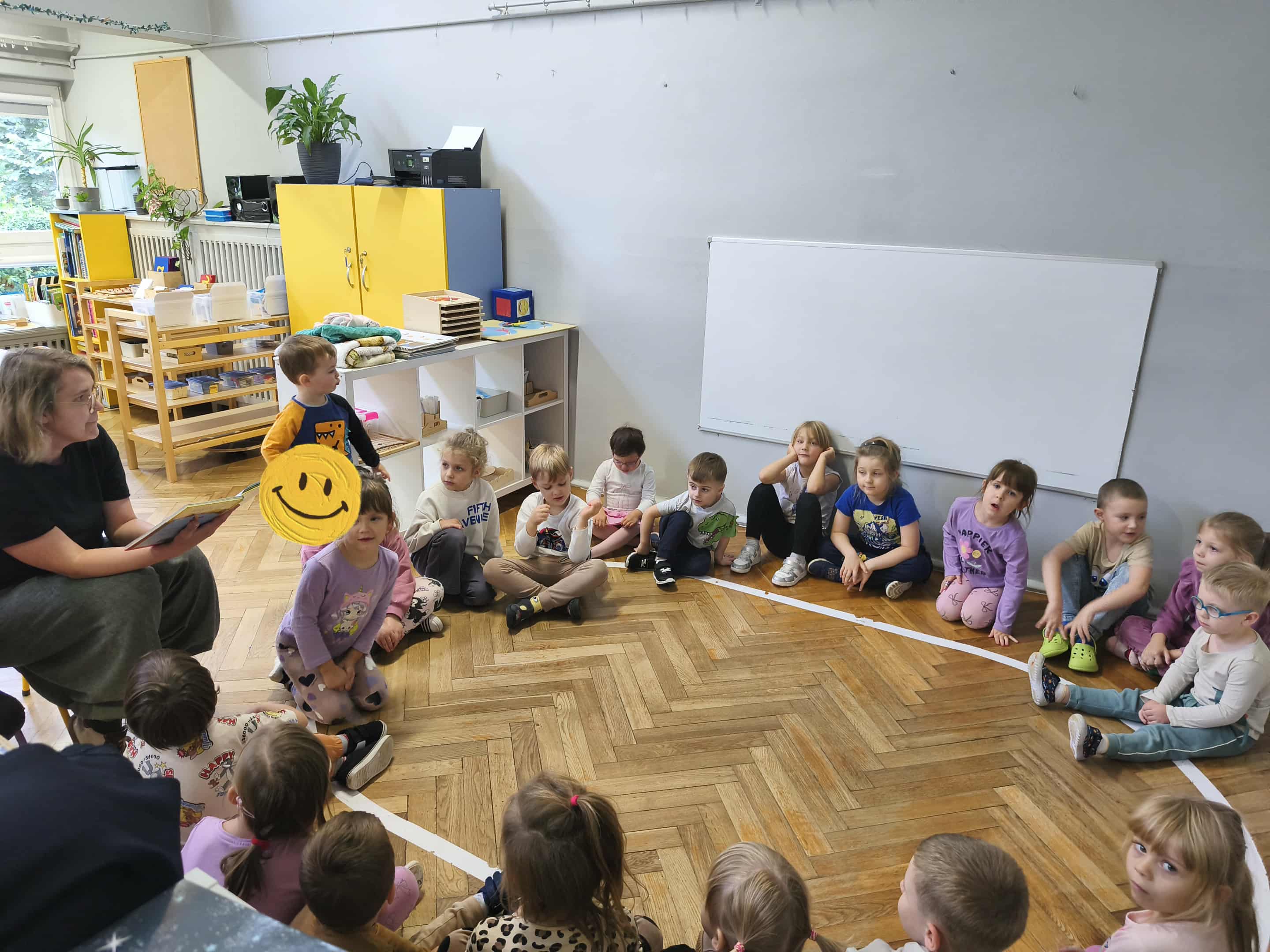 Dzieci z uwagą słuchały czytanych przez Panią wierszy. Czasami nawet słychać było delikatny śmiech.