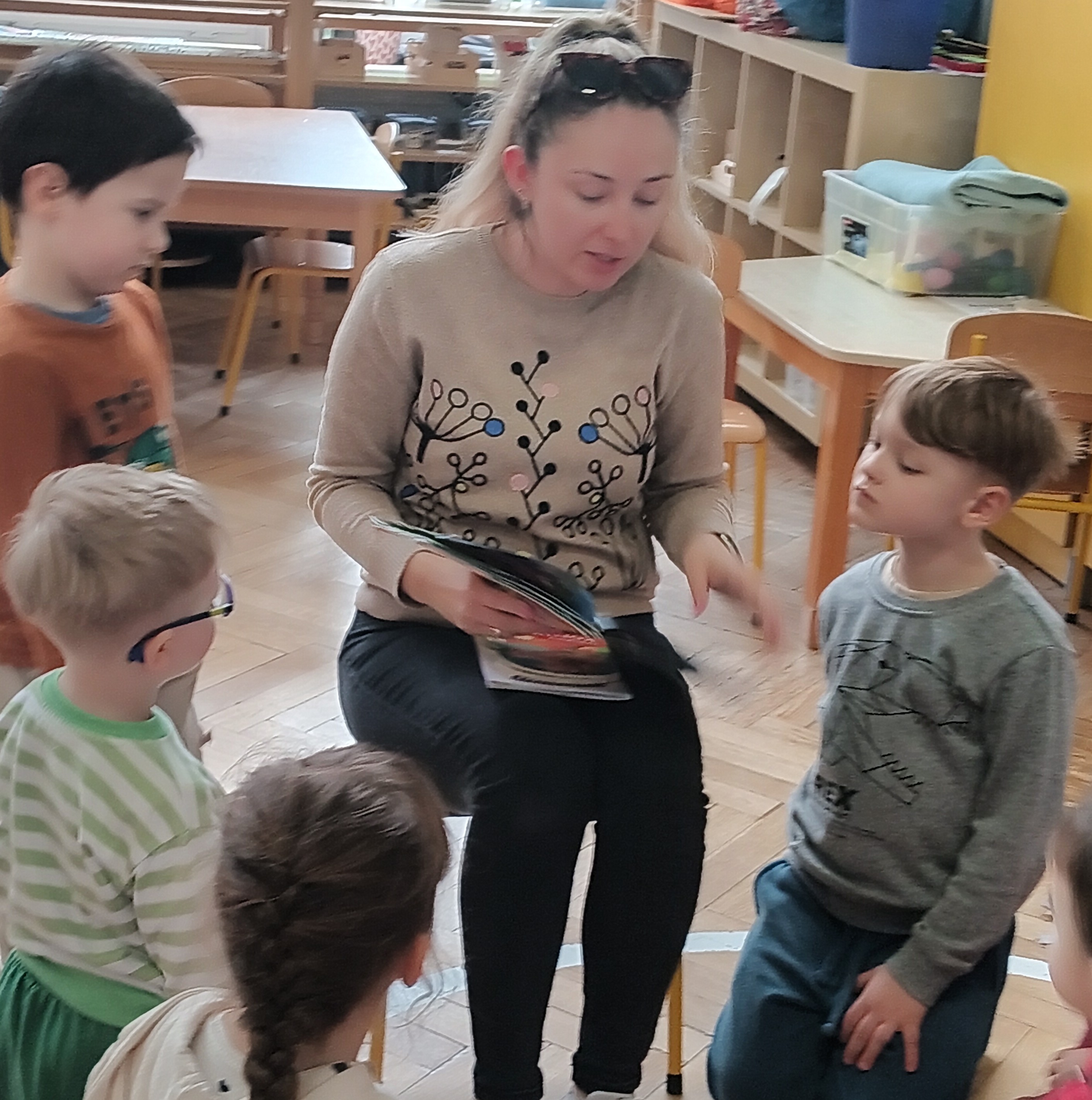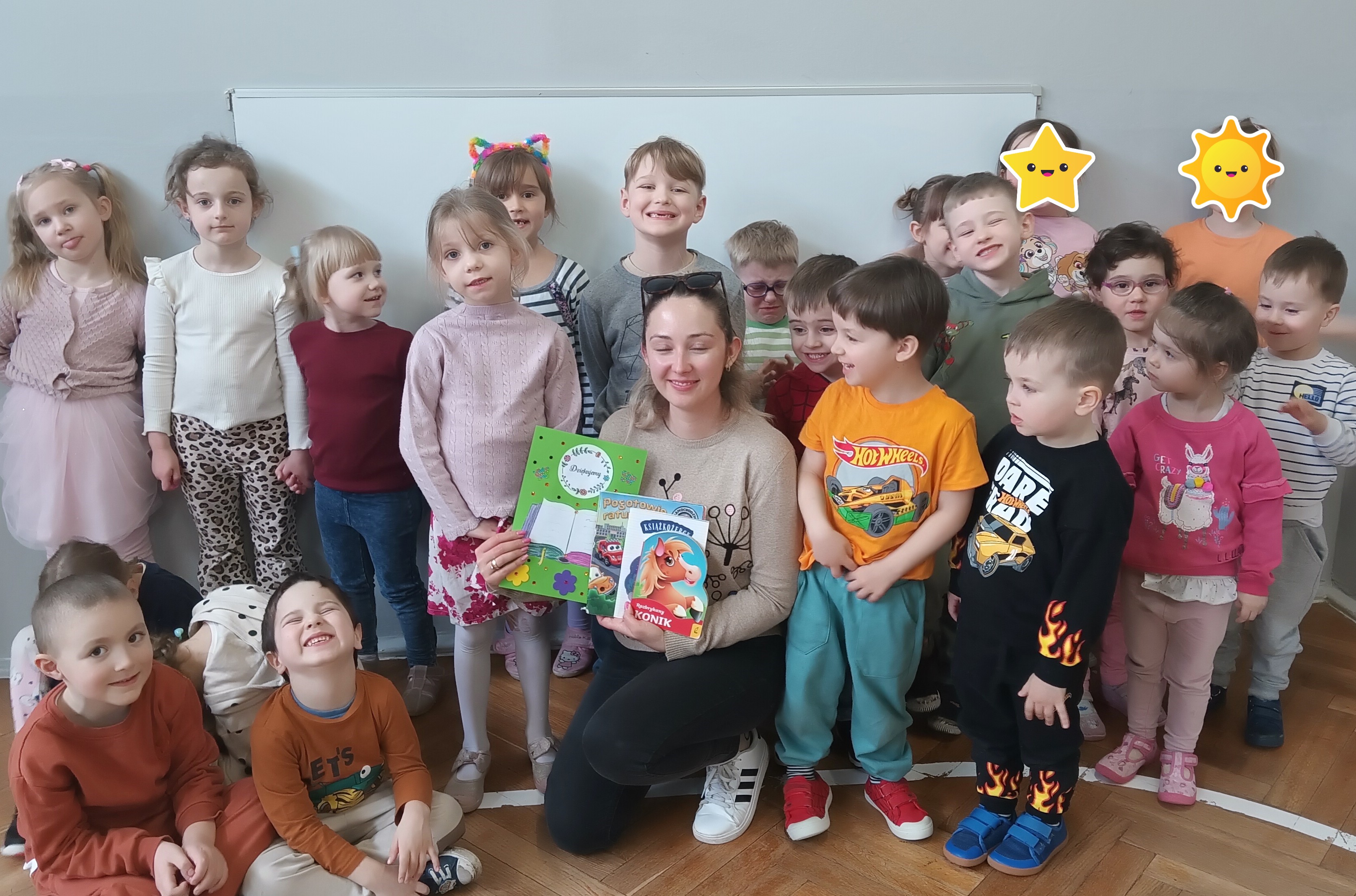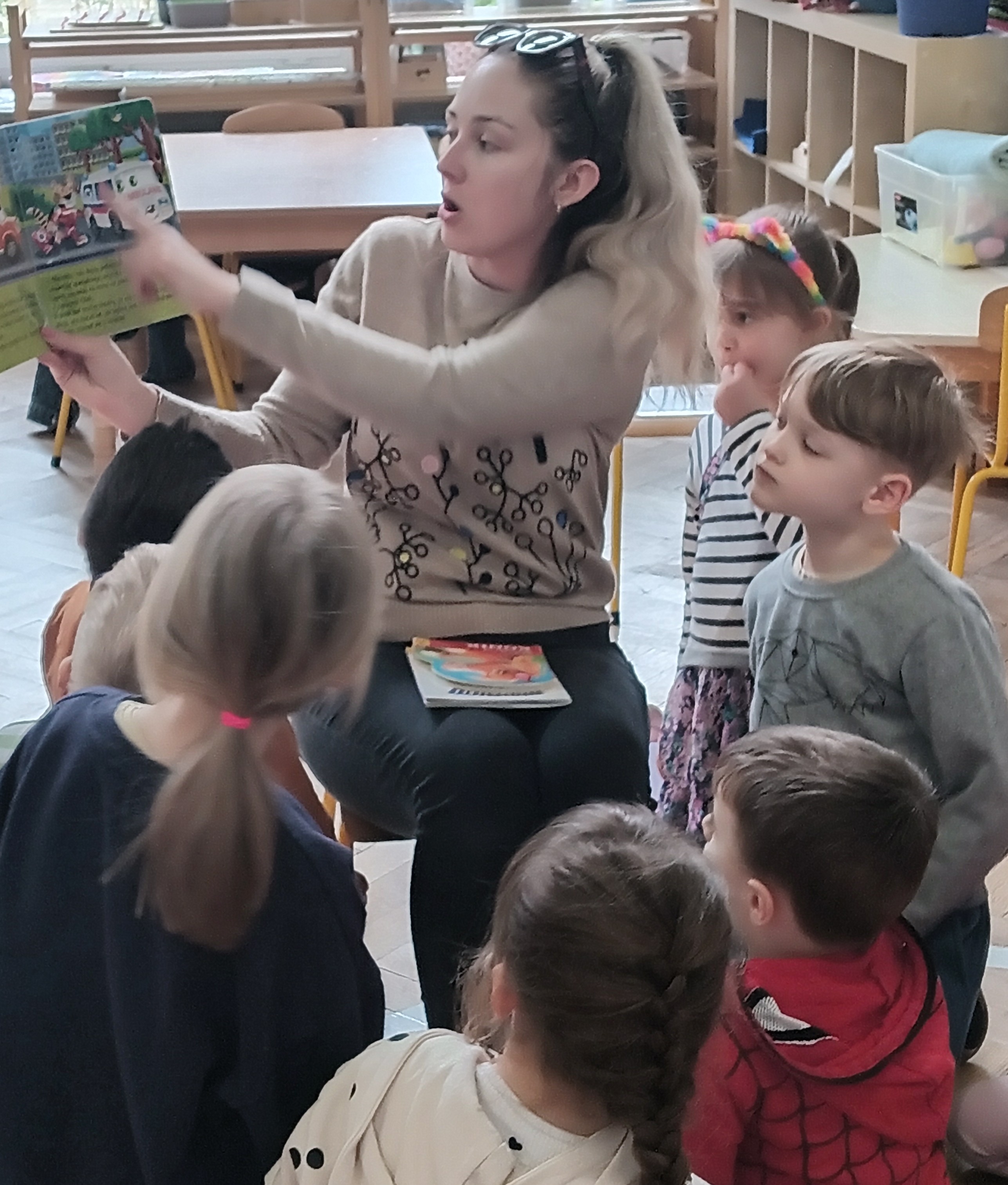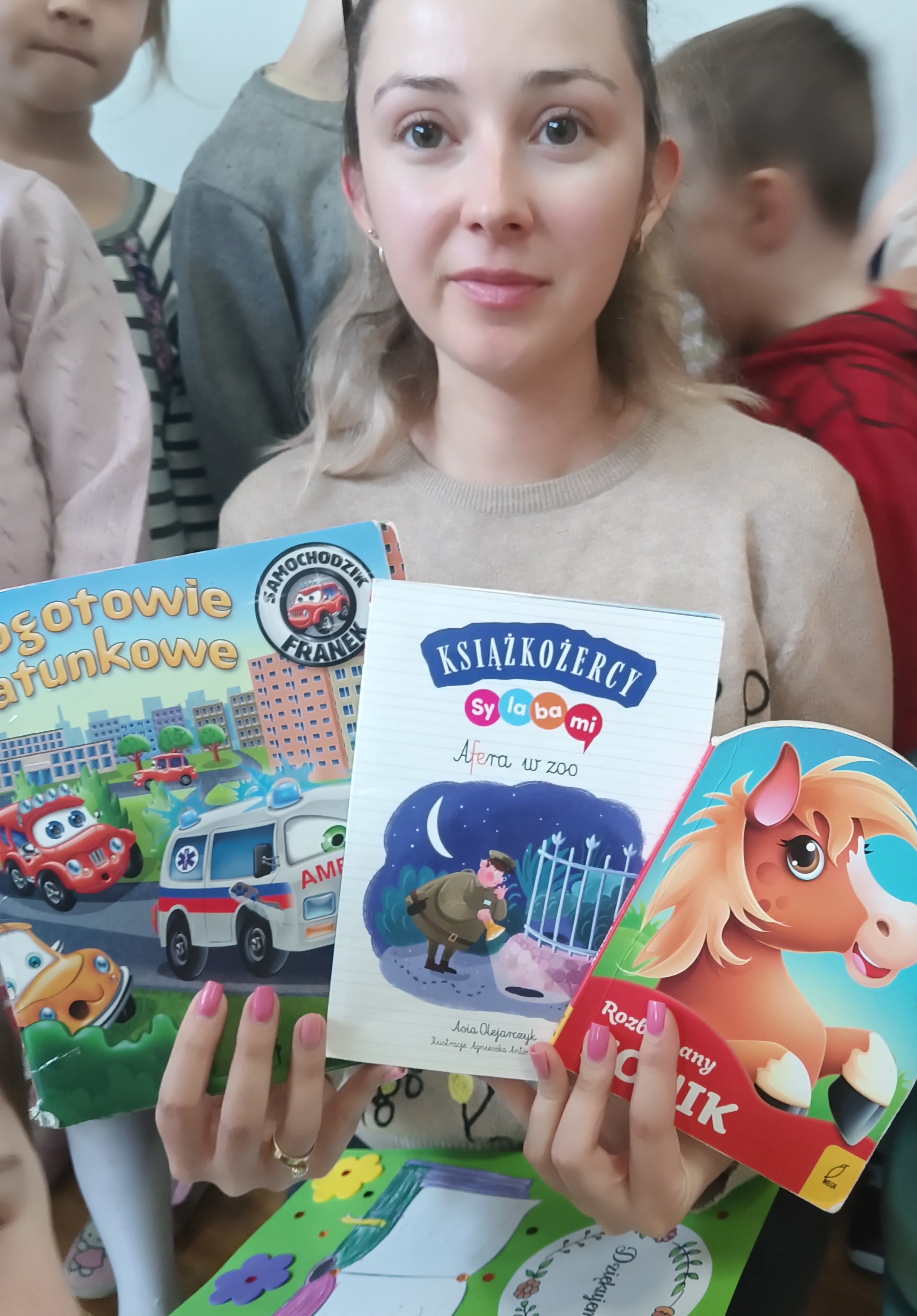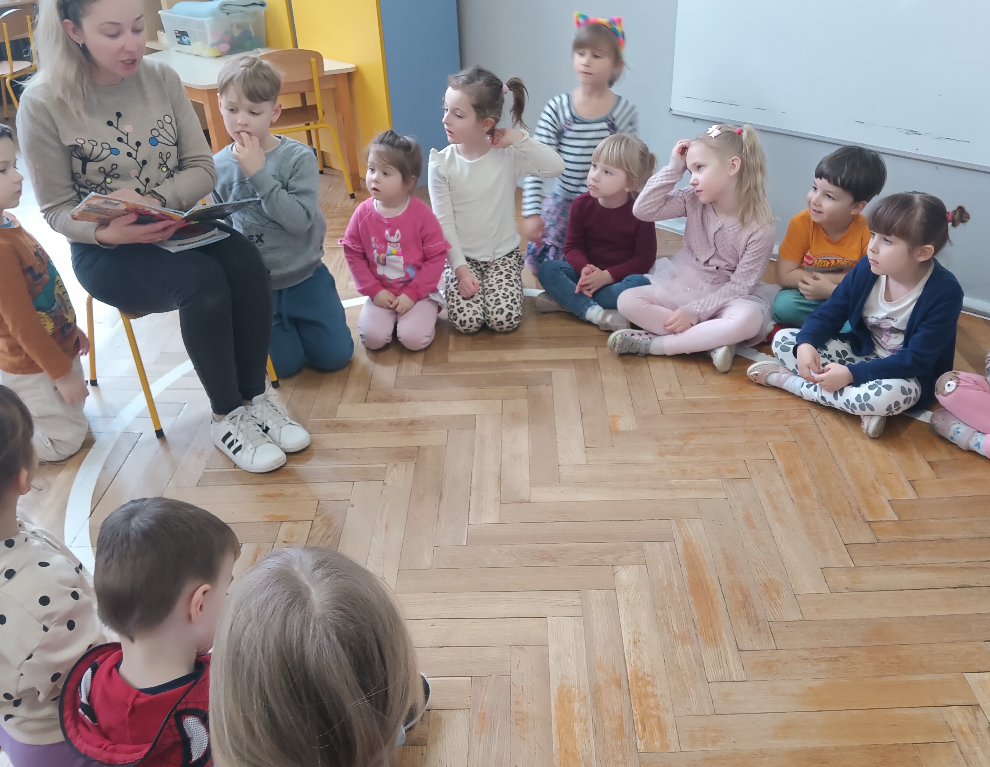 W środę odwiedziła Nas mama Oskara, by poczytać dzieciom książki. Oskar wraz z mamą wybrali naprawdę ciekawe opowiadania dla dzieci - "Pogotowie ratunkowe", "Afera w ZOO" i "Rozbrykany konik". Po przeczytaniu książeczek przypomnieliśmy sobie numery alarmowe ( na pogotowie-999, na policję- 997, oraz numer do wszystkich służb 112). Dzieci w podziękowaniu zaśpiewały mamie piosenkę oraz wręczyły laurkę. Dziękujemy mamie Oskara za poświęcony czas.