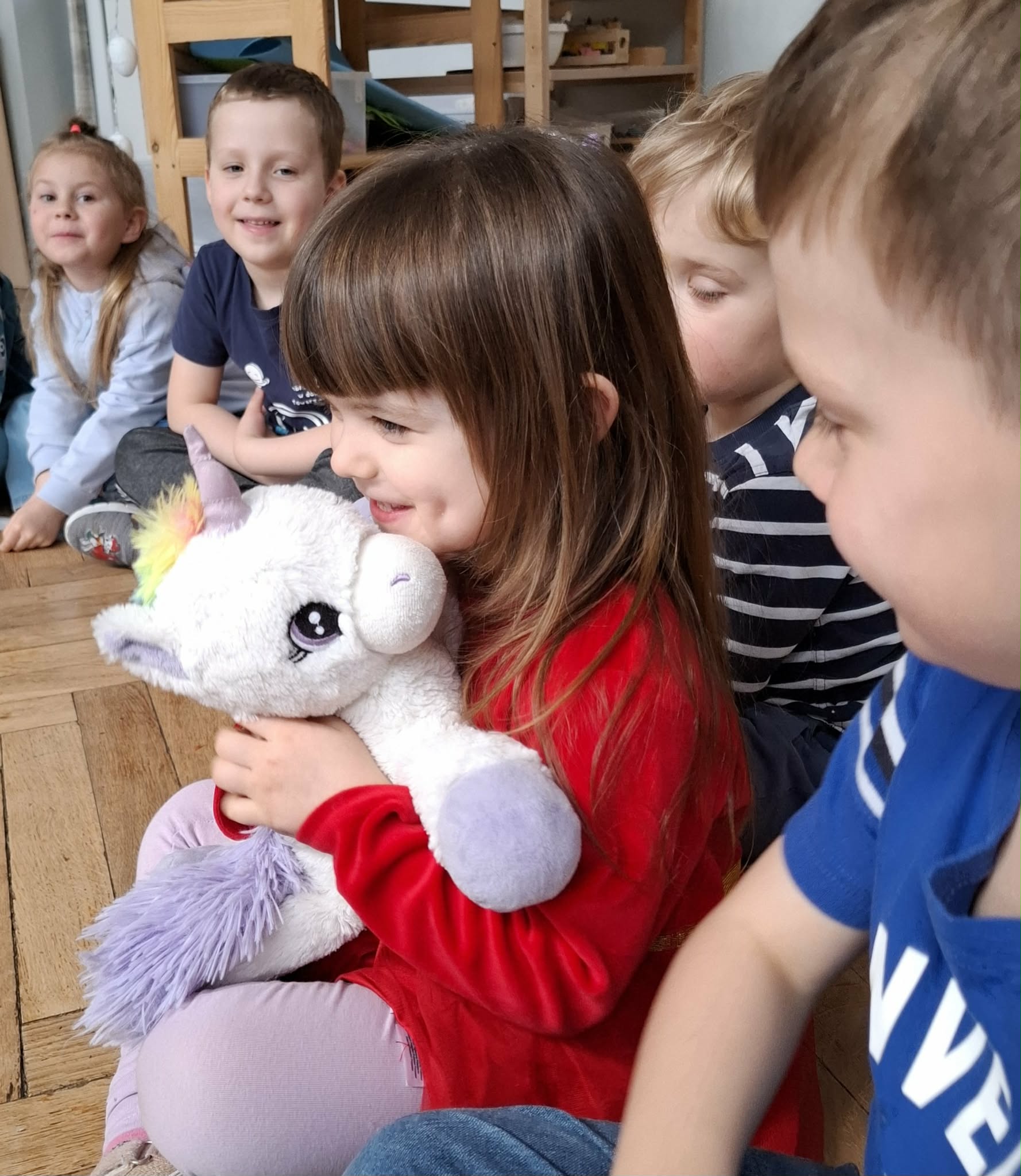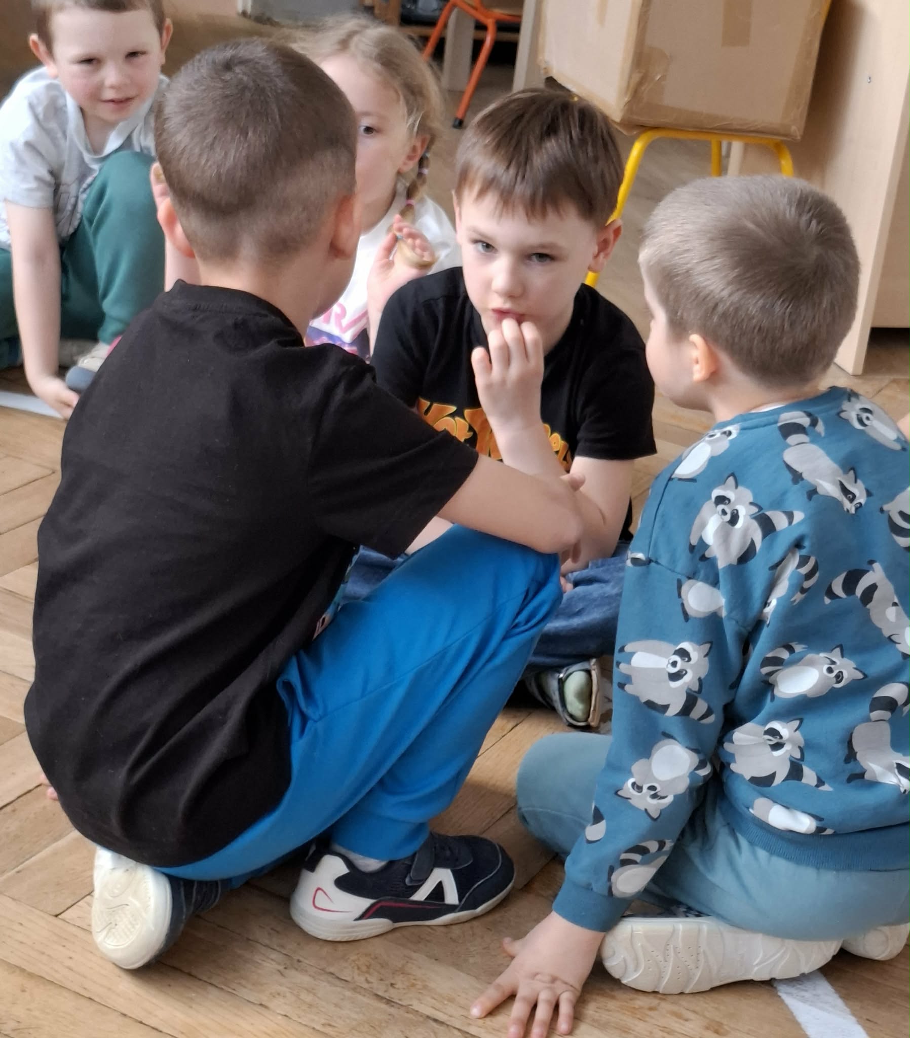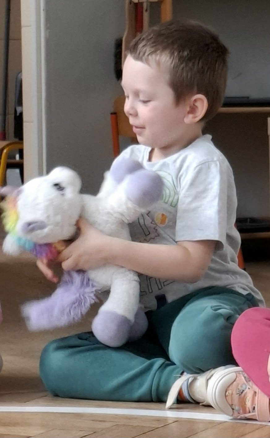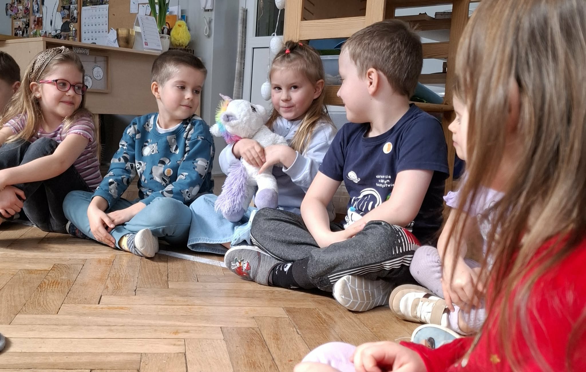 Tym razem Gucio uczył wybaczania. Razem z bohaterem książki ustaliliśmy czym jest wybaczanie i dlaczego jest ważne w relacjach z innymi. Rozmawialiśmy o emocjach, jakie towarzyszą dzieciom w codziennych sytuacjach. Wspólnie nazywaliśmy uczucia takie jak radość, smutek, złość czy żal. Odwoływaliśmy się do wydarzeń z minionego dnia – dzieci opowiadały o drobnych konfliktach i nieporozumieniach, które pojawiły się podczas zabawy. Z pomocą Gucia dzieci analizowały te sytuacje: co się wydarzyło, jakie emocje odczuwały obie strony, co można było zrobić inaczej.