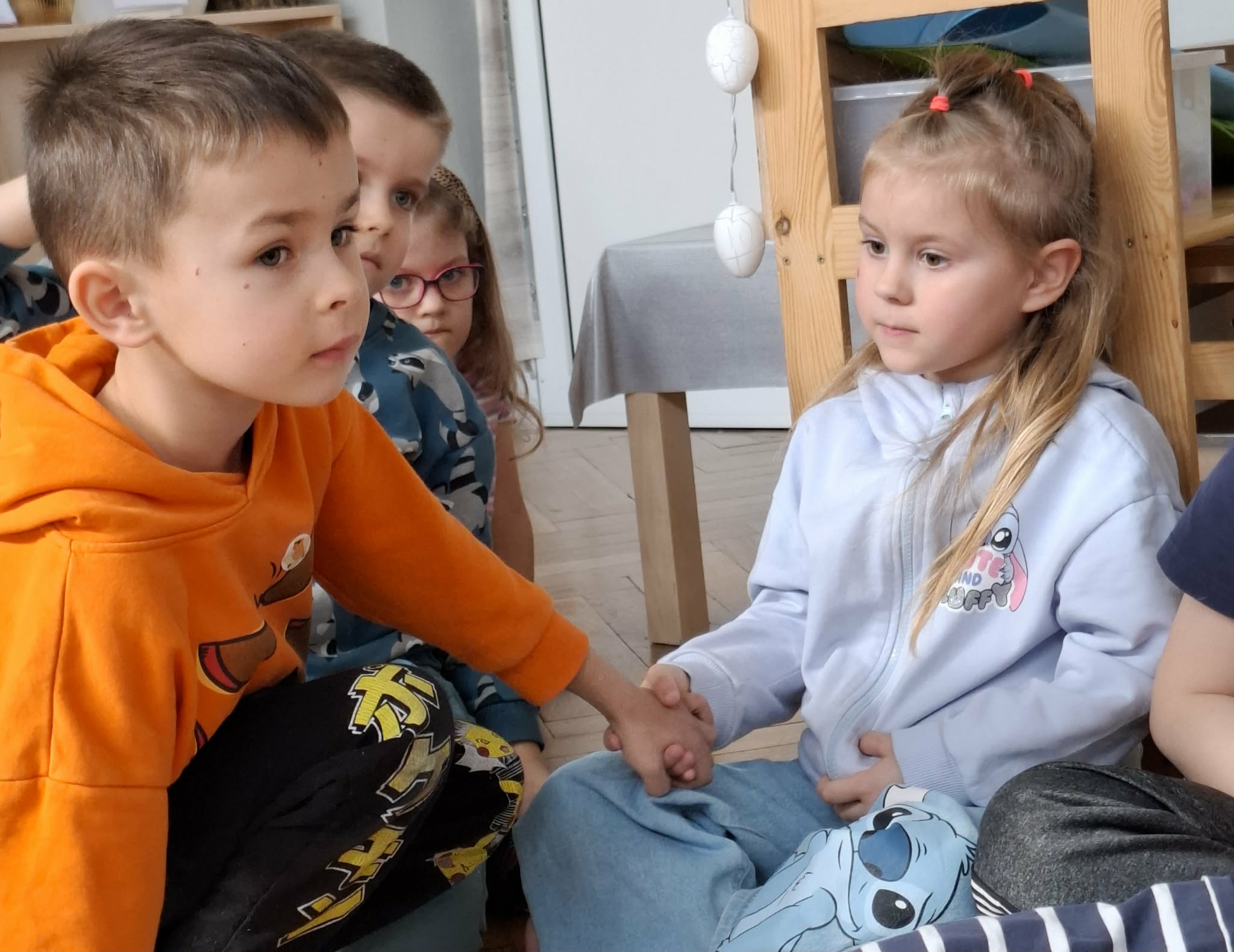 W trakcie zajęć ćwiczylismy również formułowanie prostych komunikatów, „Przepraszam, że…” oraz „Wybaczam Ci”.