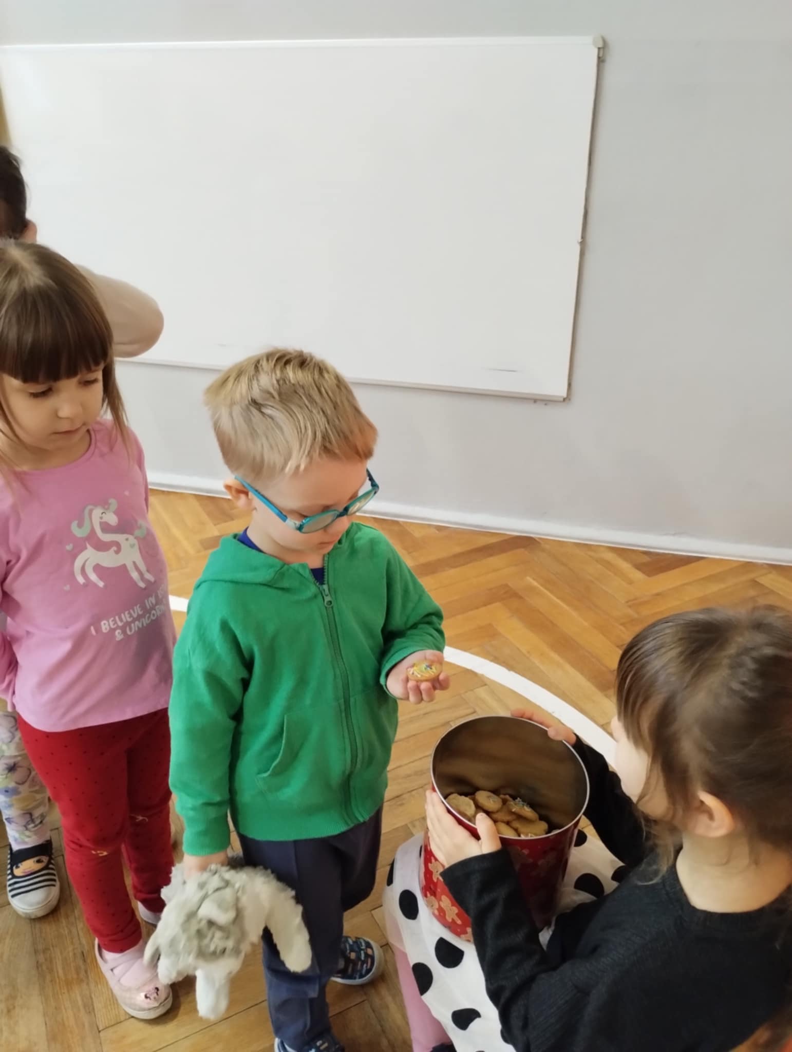 W czwartek swoje imieniny obchodziła Basia. Dzieci złożyły jej z tej okazji życzenia, a Basia poczęstowała wszystkich świątecznymi ciasteczkami, które upiekła razem z mamą. Basiu jeszcze raz życzymy zdrowia i uśmiechu na każdy dzień!