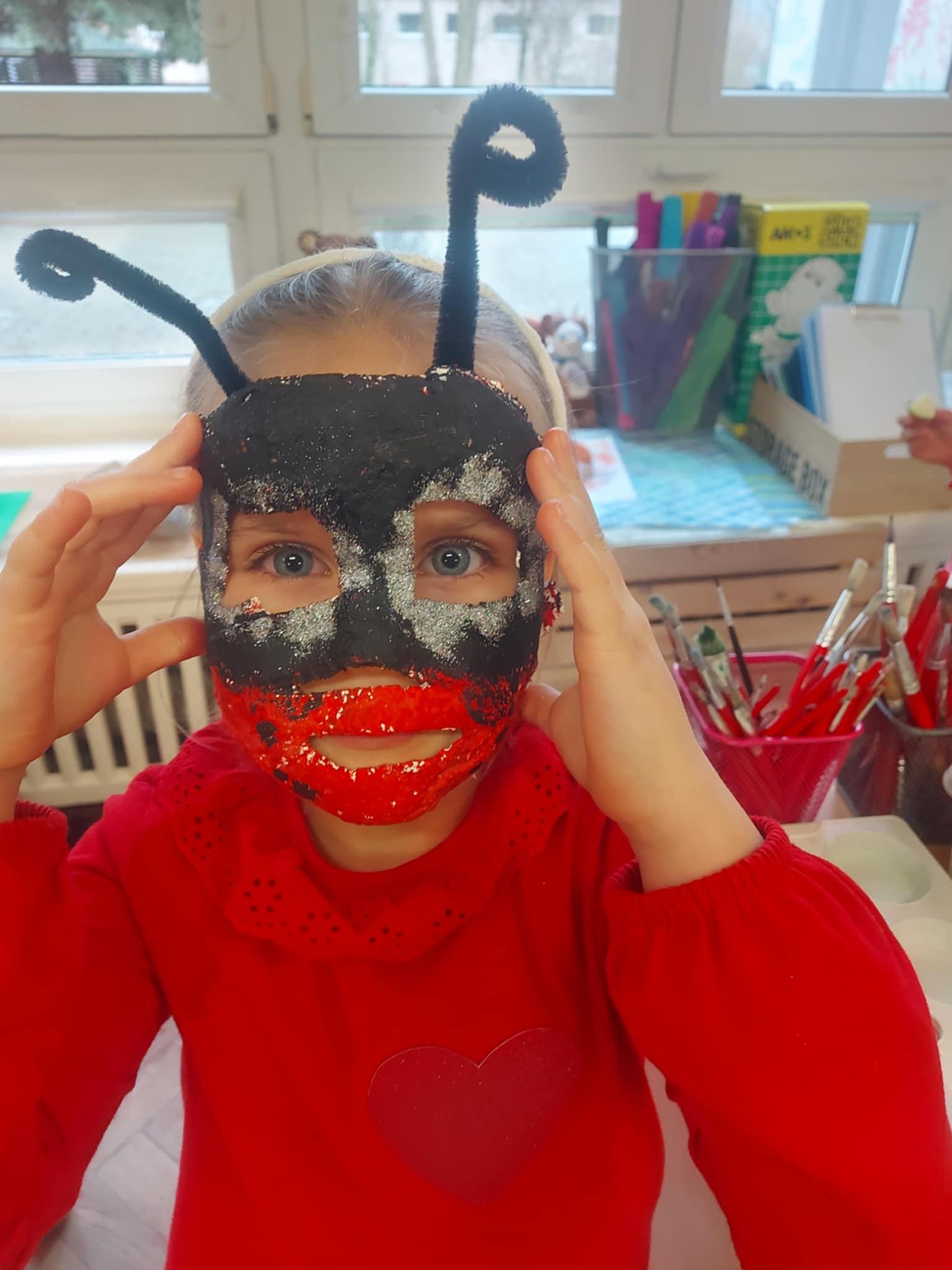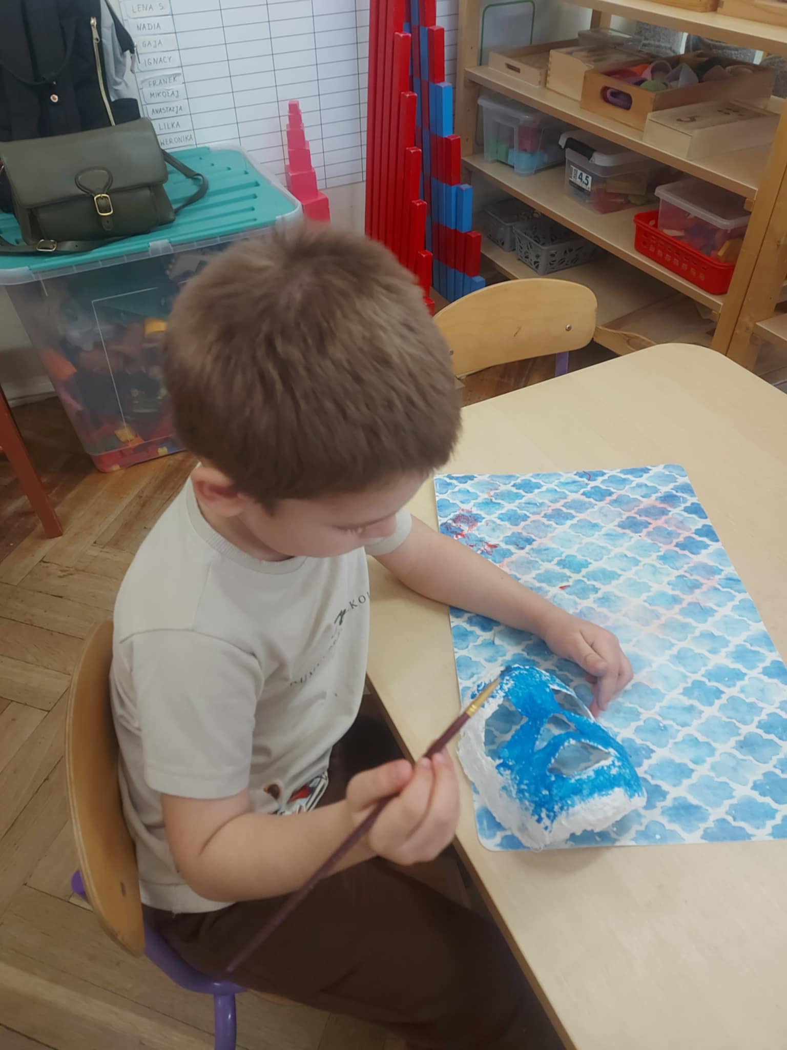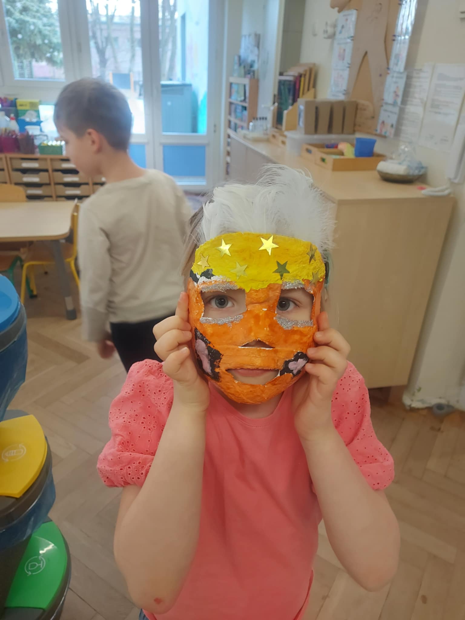 W ostatnich dniach w naszym przedszkolu zrobiło się niezwykle kolorowo i twórczo. Wszystko za sprawą małej Zosi, która za pomocą maski przenosiła nas w różne części świata, zapoznając z karnawałem w Wenecji, Rio De Janeiro, Nowym Orleanie i Polsce. Przy okazji dowiedzieliśmy się, że karnawał w Wenecji jest tajemniczy, w Rio wesoły, taneczny, w Nowym Orleanie pełen jazzu, a Polski jest domowy w rodzinnej atmosferze. Dzieci przyniosły Weneckie maski, które stały się inspiracją do wykonania swoich. Na kartkach zaplanowały swoje maski, a potem......, a potem już tylko odwaga wystarczyła żeby zrealizować swój projekt.
