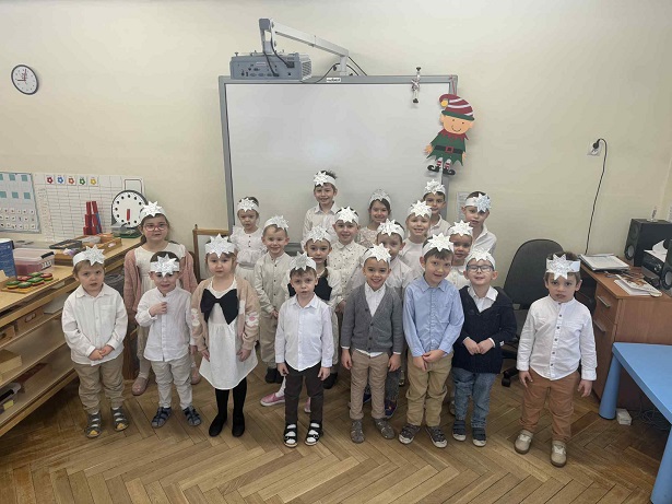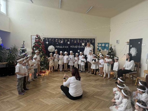 Dziś na naszym corocznym już kolędowaniu, gościliśmy nasze zaprzyjaźnione Seniorki. Wspólne śpiewanie kolęd w blasku światełek, przedłużyło nam okres świąteczny. Spotkania wielopokoleniowe zawsze przynoszą dużo radości i wzruszeń. Nasza grupa zaprezentowała grę na instrumentach do zimowej piosenki i kolędę "Przybieżeli do Betlejem". Oby takich spotkań było więcej. Do zobaczenia następnym razem.