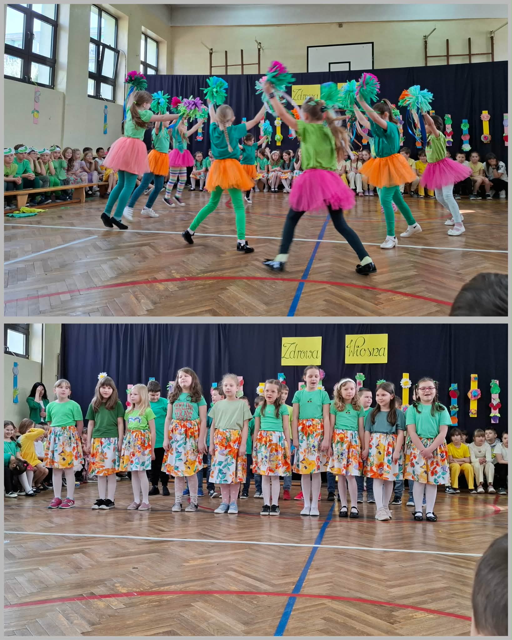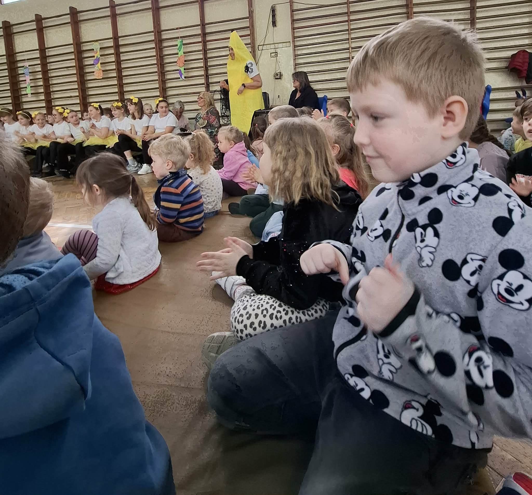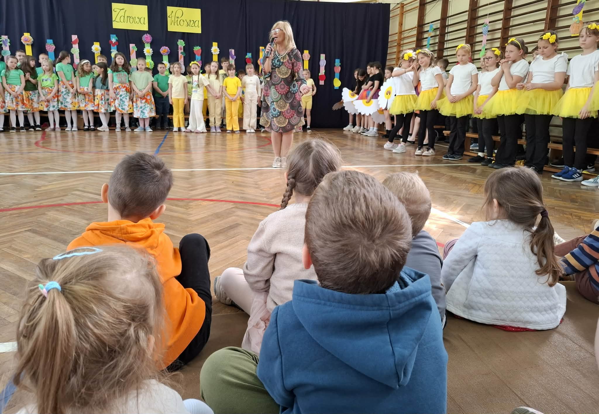 Wyjście do szkoły na koncert „Zdrowa wiosna” było dla naszych przedszkolaków niezwykle miłym i pełnym wrażeń wydarzeniem. Na scenie występowały dzieci z klas 1–3, prezentując piosenki oraz skomplikowane układy taneczne, które wzbudziły duże zainteresowanie i podziw wśród młodszej publiczności.