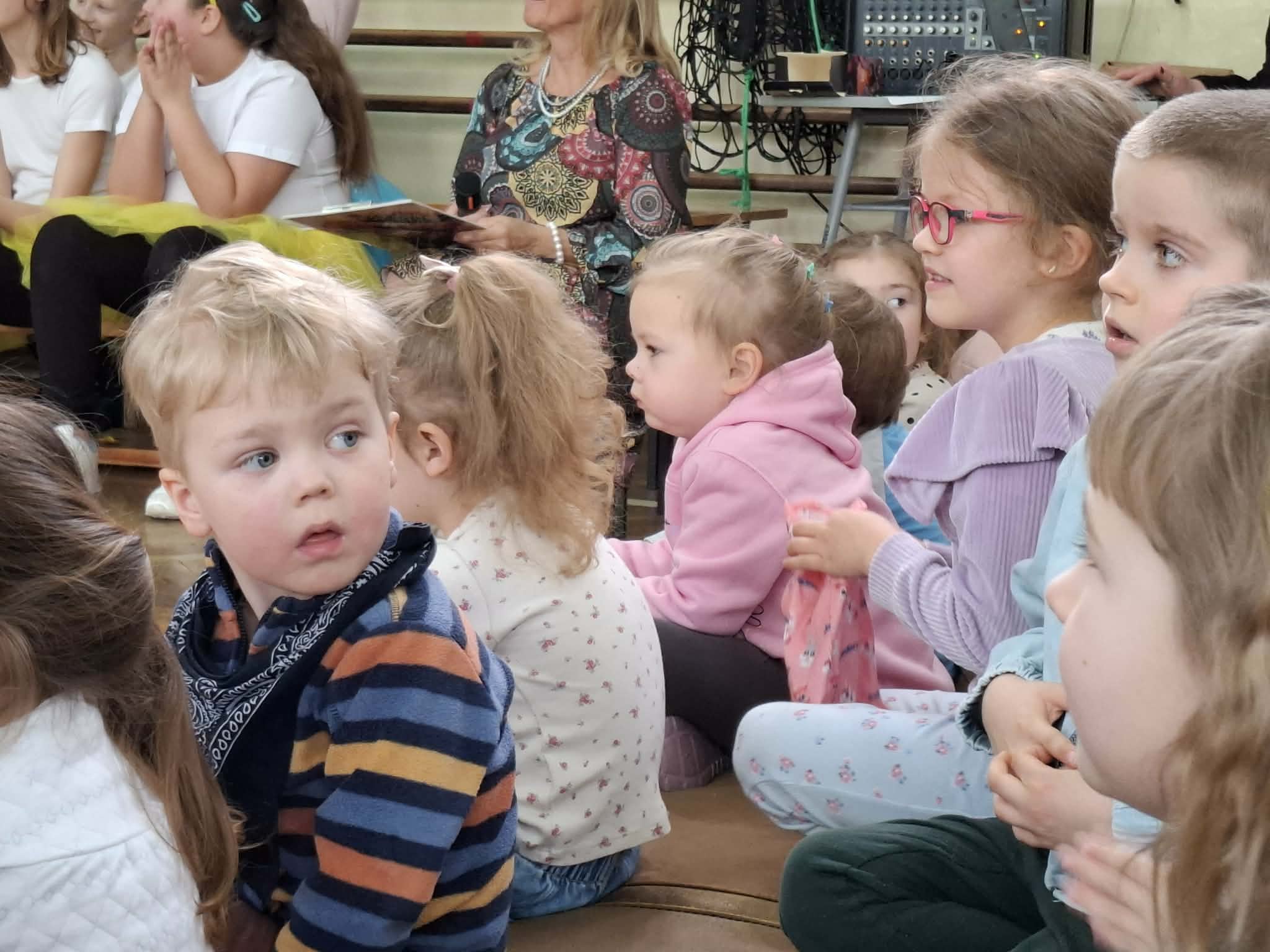 Przedszkolaki z zaciekawieniem i skupieniem oglądały występy uczniów, a szczególną radość sprawiło im rozpoznanie wśród artystów naszych absolwentów.