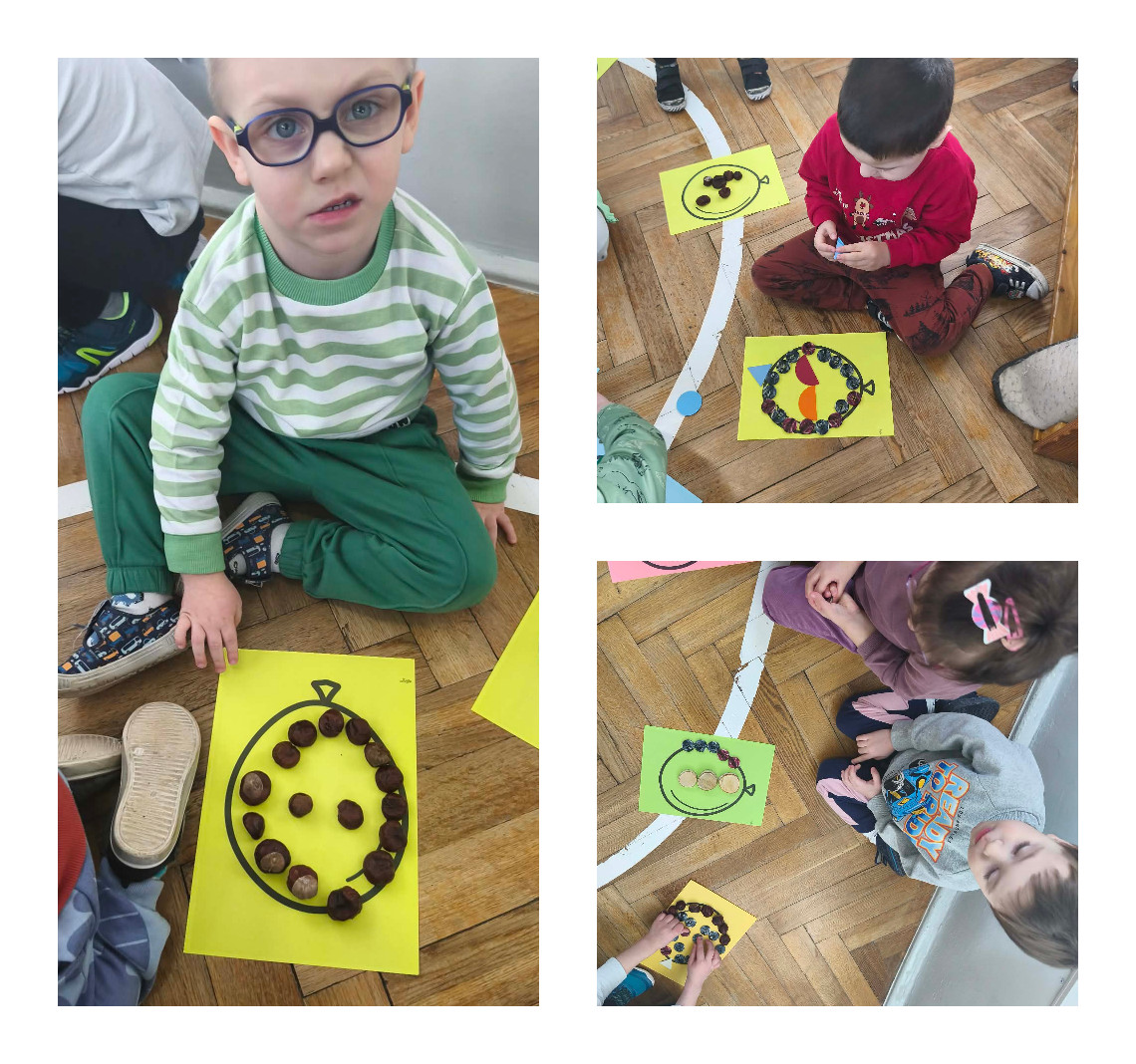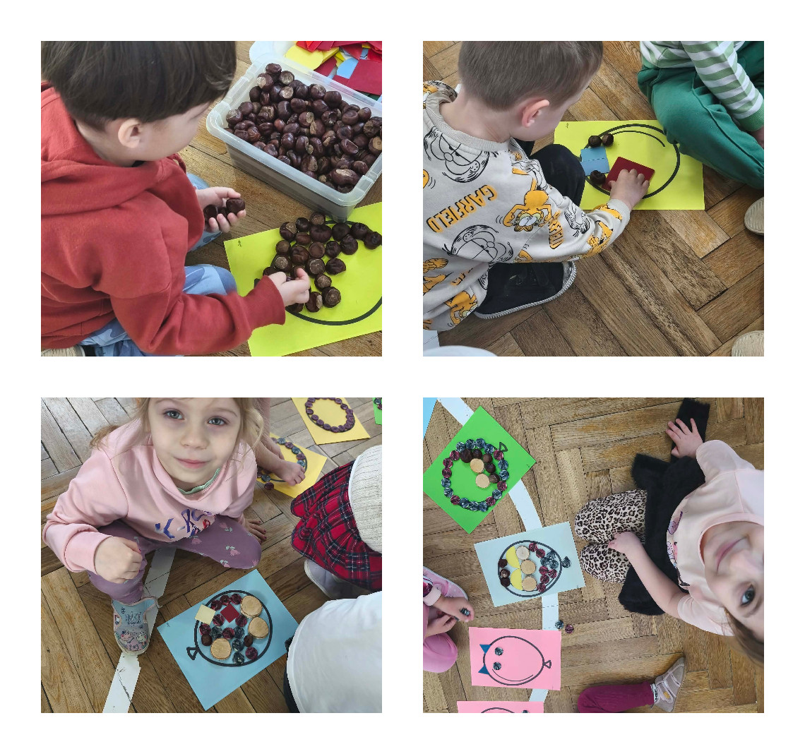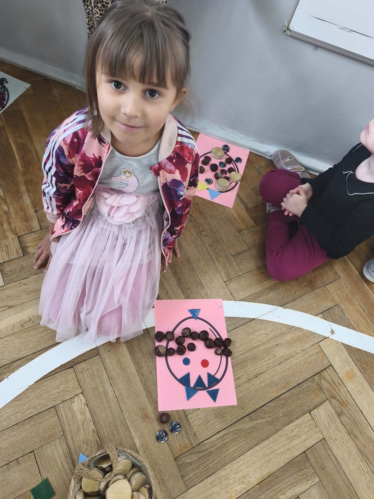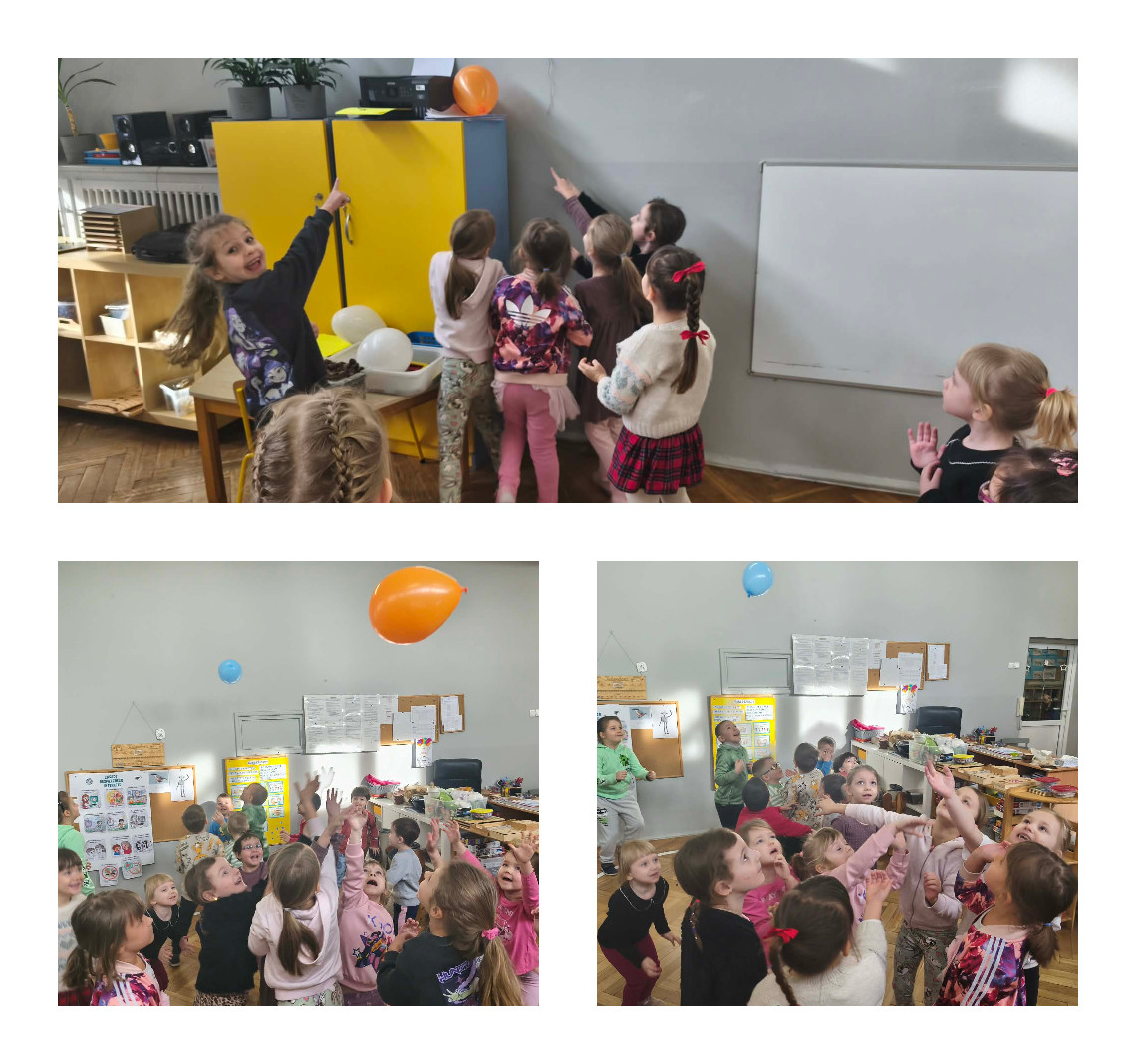 W ramach rozmów o karnawale dzieci wzięły udział w zajęciach, w których głównymi bohaterami były balony. Dzieci uczestniczyły w radosnych zabawach ruchowych, wykazały się ogromną wyobraźnią, tworząc kreatywne konstrukcje i kompozycje z wykorzystaniem guzików, drewnianych krążków, klocków oraz kasztanów. Zwieńczeniem zabaw były barwne prace plastyczne – dzieci stworzyły balony, wykorzystując kolorowe kółeczka konfetti. To był dzień pełen twórczej energii i ćwiczenia rąk.