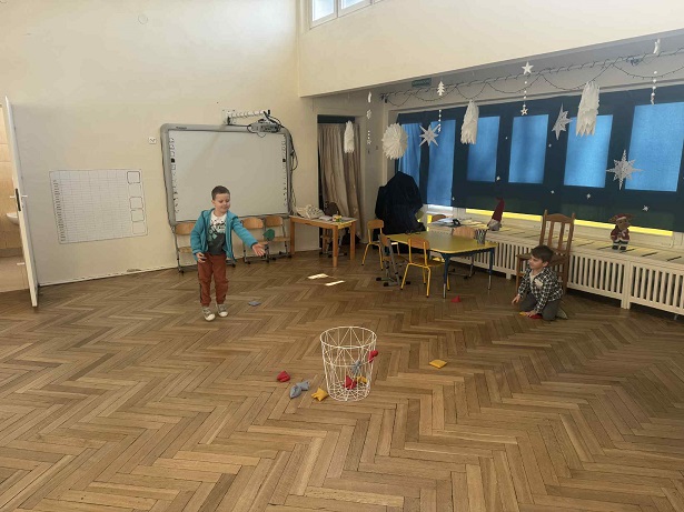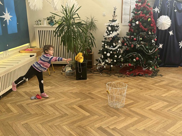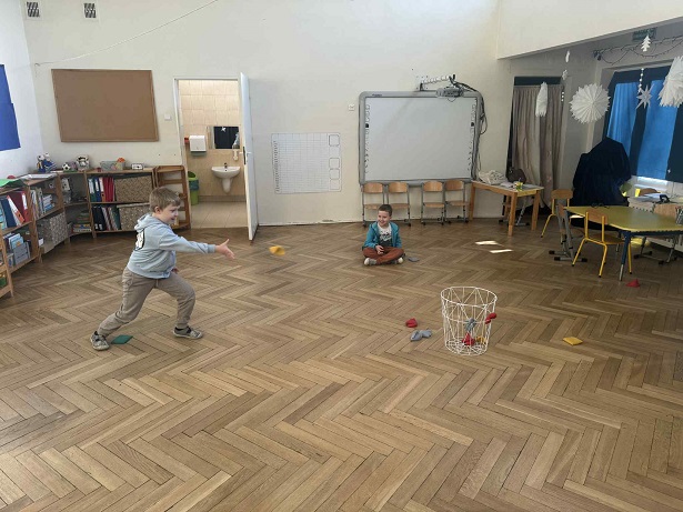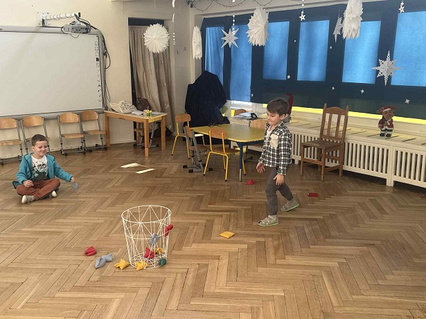 Ruch to coś, co dzieci lubią najbardziej. Dlatego połączyliśmy go z gimnastyką buzi i prawidłową wymową głosek. Ćwiczyliśmy również uważność, koncentrację uwagi, precyzję rzuty i oczywiście cierpliwość.