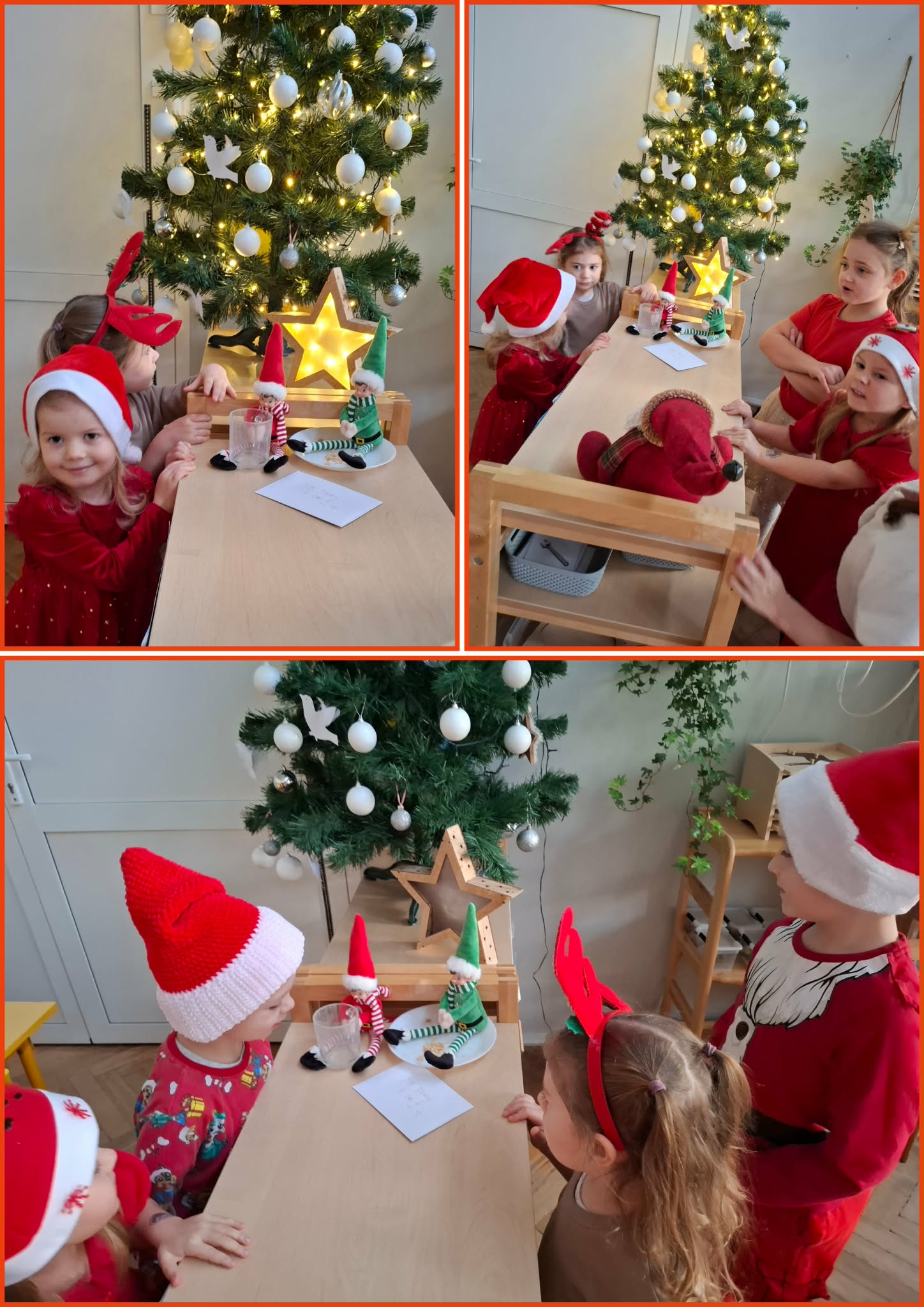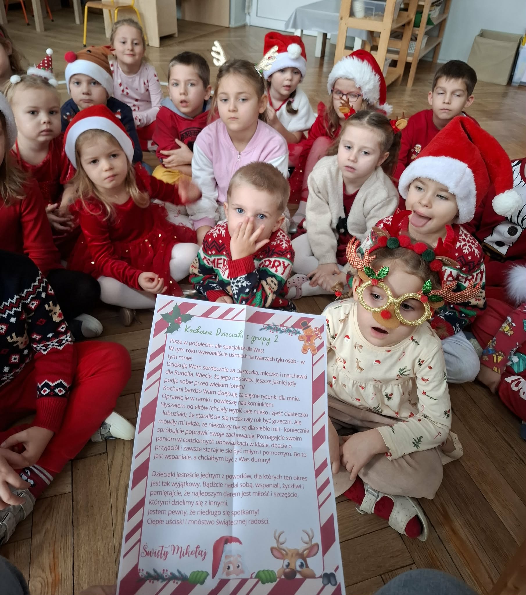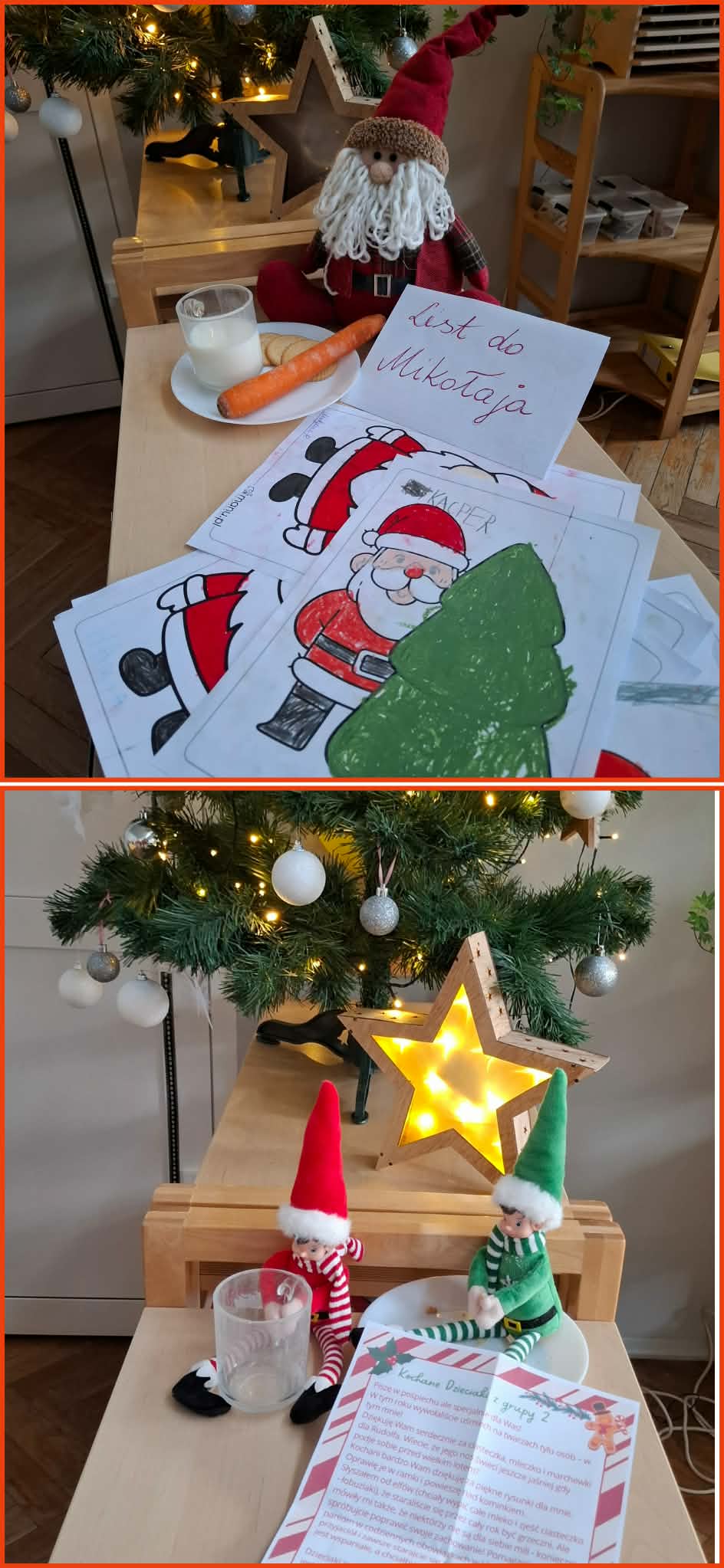 Najpierw był list do Mikołaja, ciasteczka, mleko oraz marchewka dla reniferów i oczekiwanie przez cały weekend czy przyjdzie do nas i coś nam odpisze. W poniedziałek 8.12 od rana ogromna radość bo okazało się, że był i zostawił dla nas odpowiedź. Psotne elfy próbowały przeszkodzić Mikołajowi ale On okazał się sprytniejszy. Po odczytaniu listu spotkała nas ogromna niespodzianka i osobiste spotkanie z samym Mikołajem.