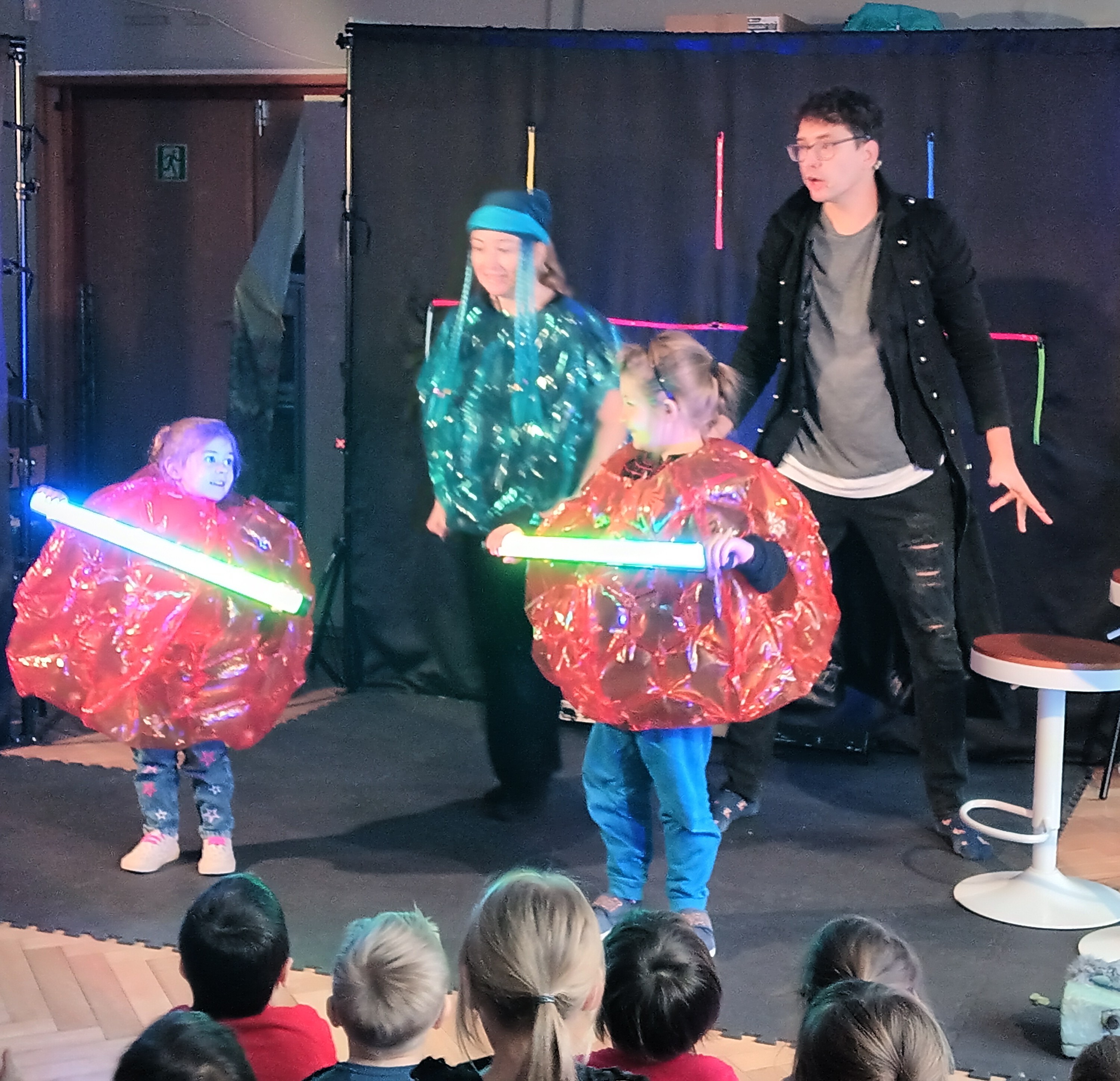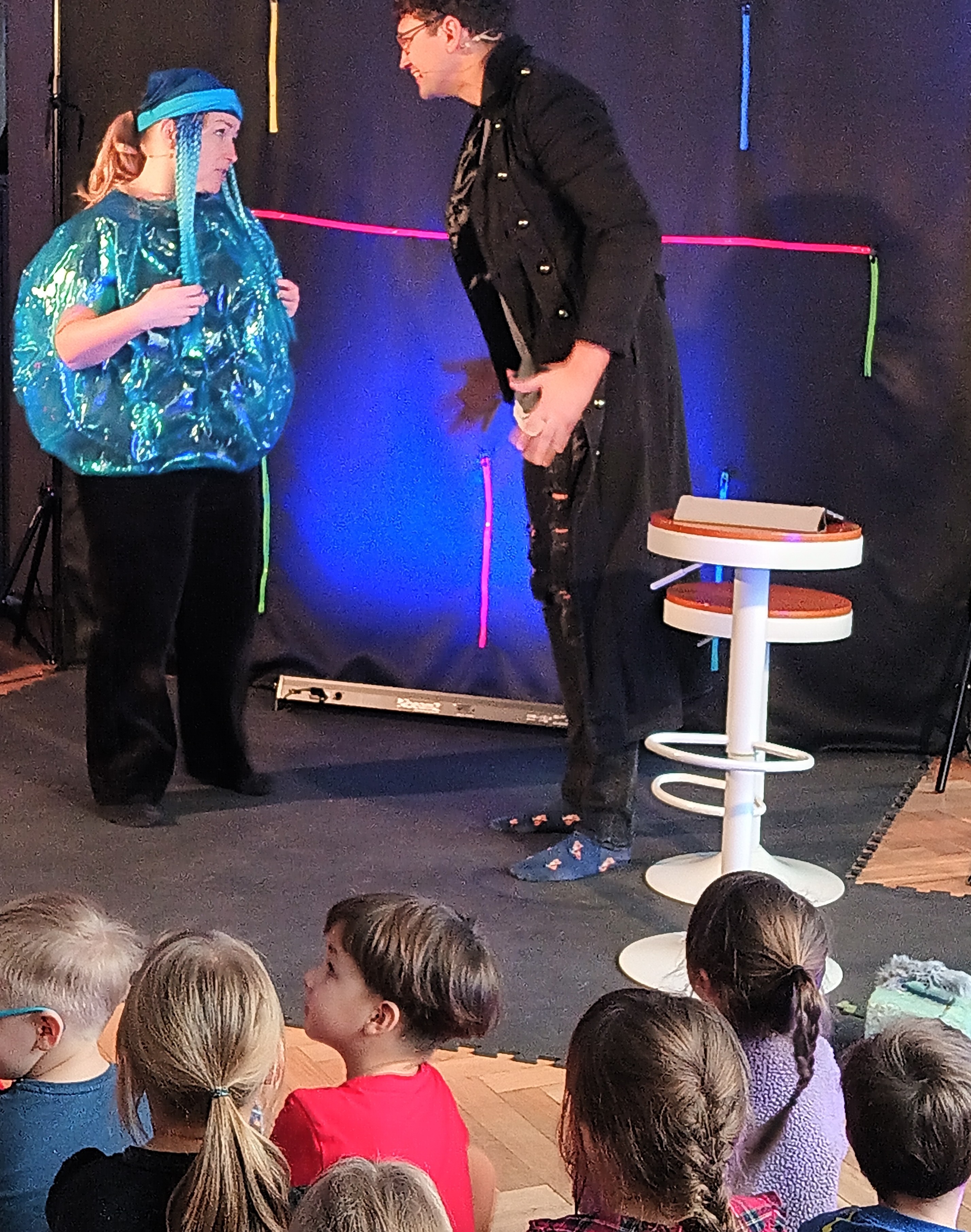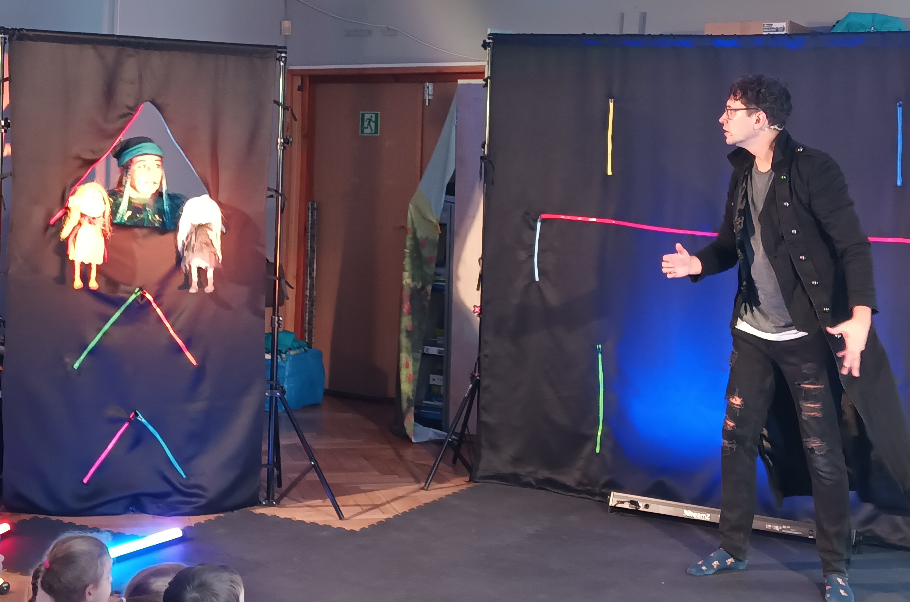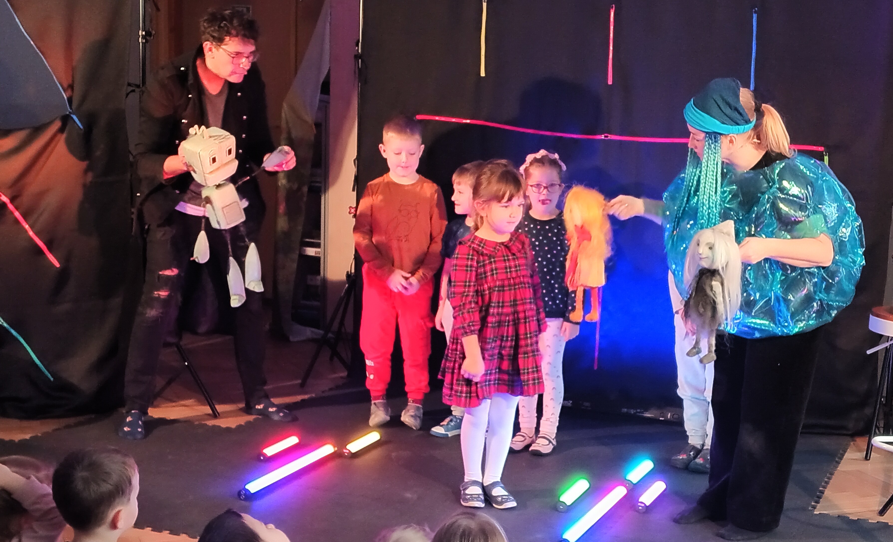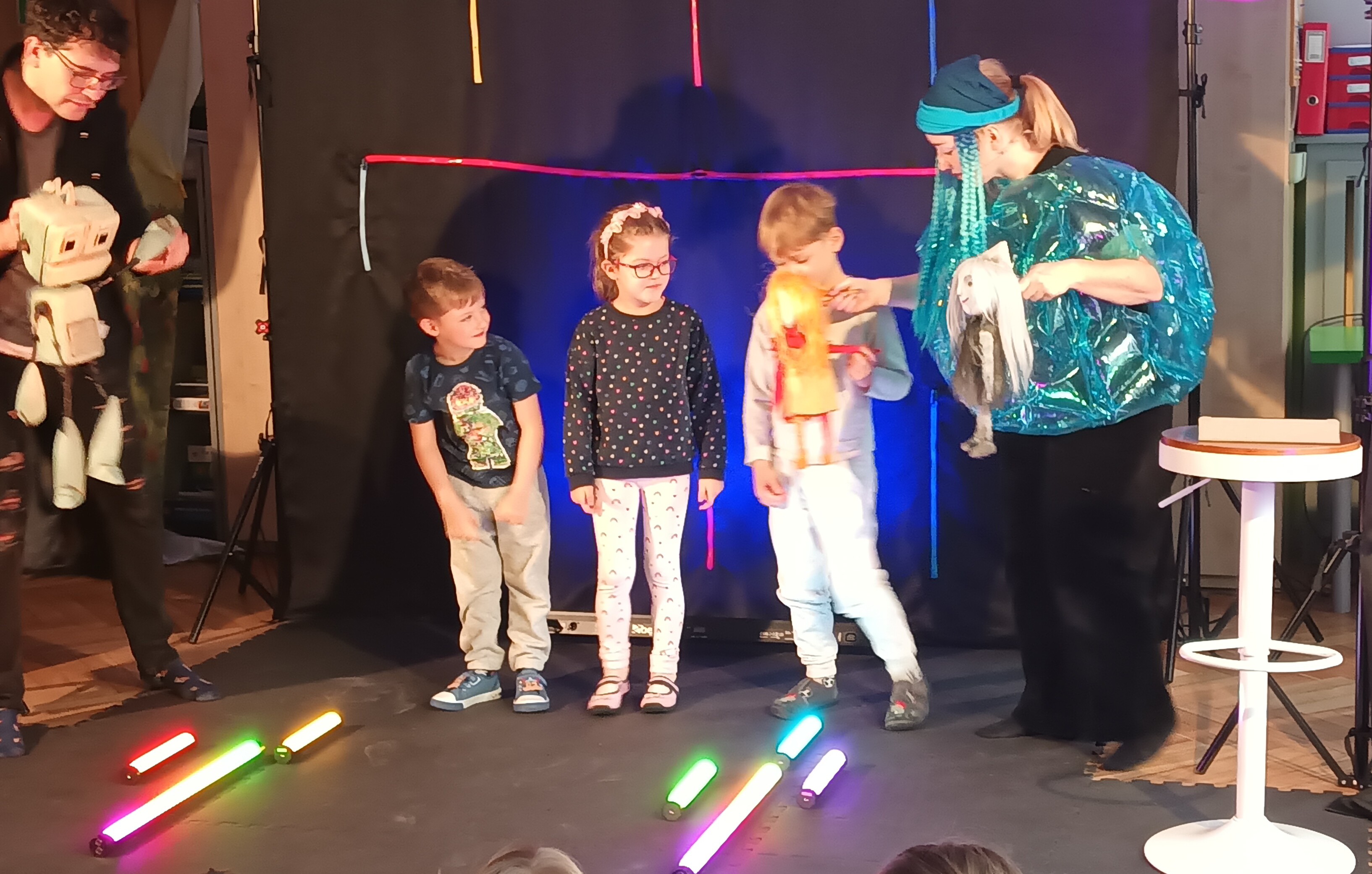 Również w poniedziałek oglądaliśmy przedstawienie teatralne pt. "Żelka, Pan Wykałaczka i Robot". Mali widzowie pomagali bohaterom oswoić złość i dawali pomysły jak sobie z nią radzić.