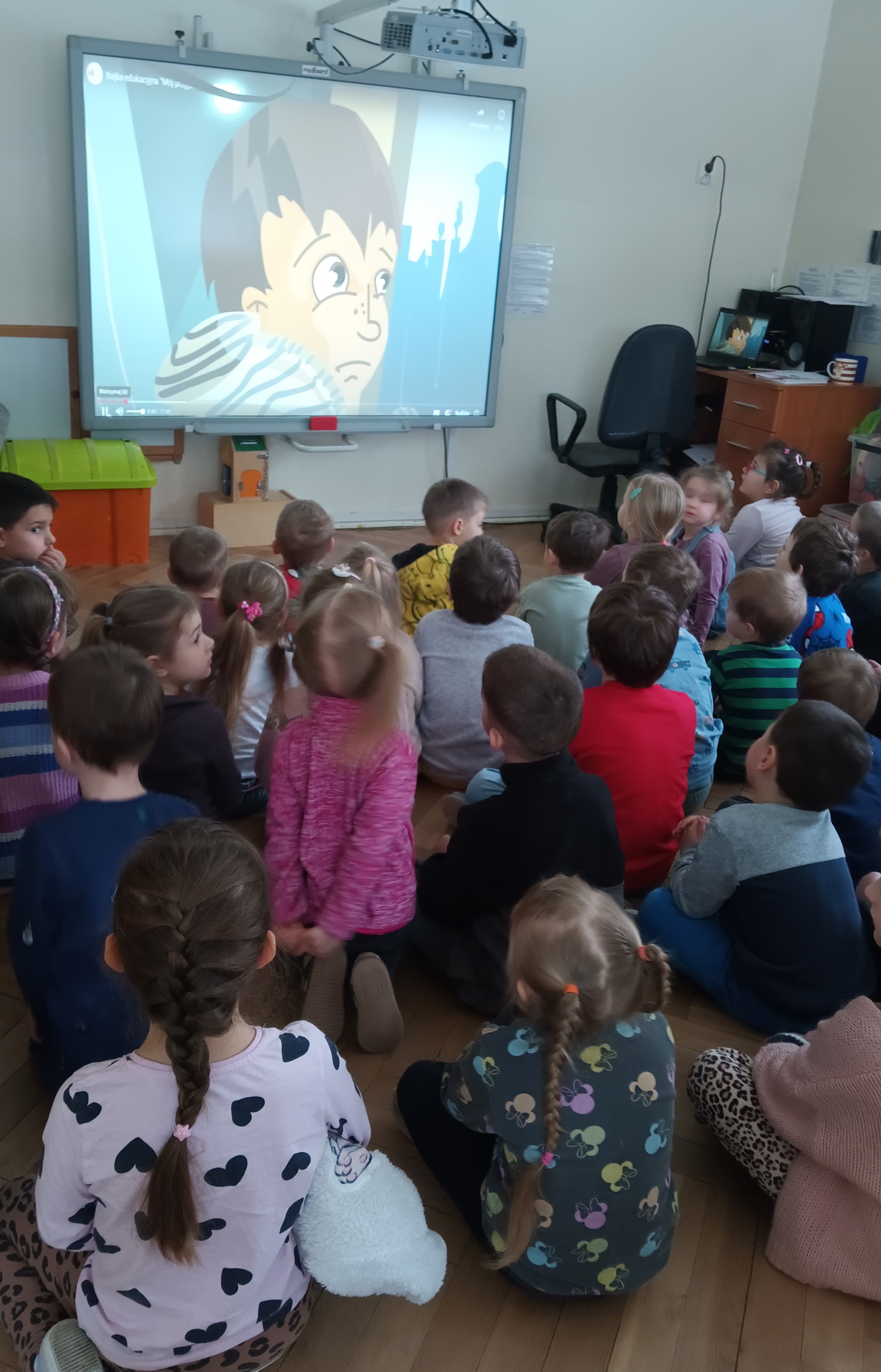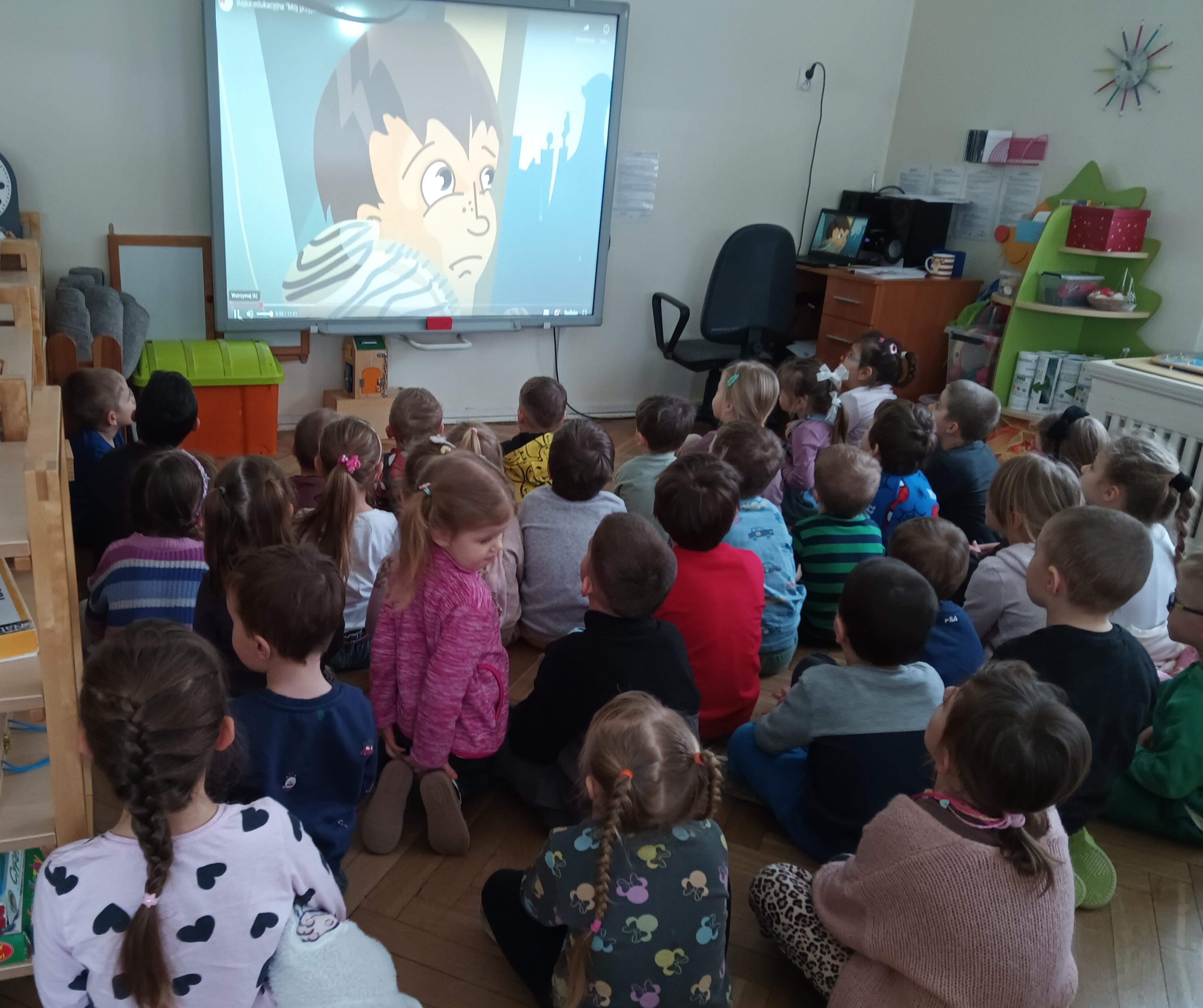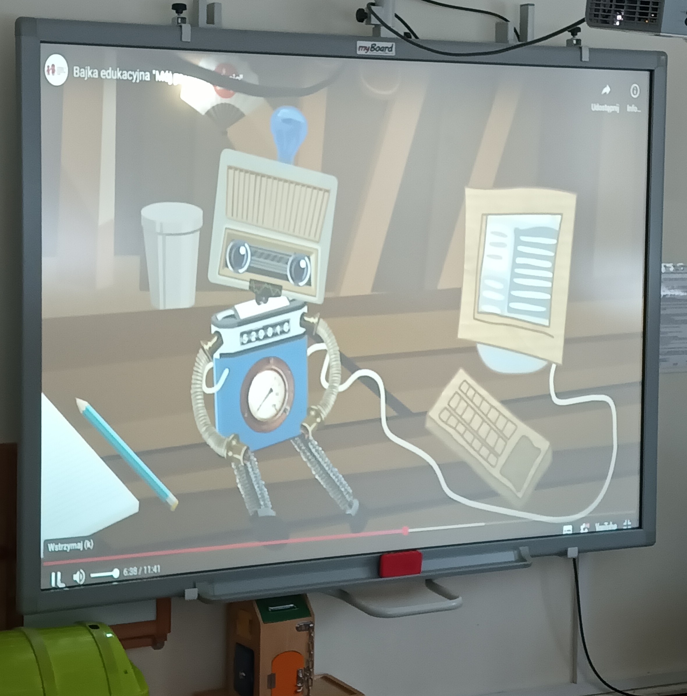 W poniedziałek oglądaliśmy bajkę na tablicy interaktywnej pt. "Mój przyjaciel Necio". Był to nasz wstęp do zajęć dotyczących bezpiecznego korzystania z Internetu. Po obejrzeniu bajki rozmawialiśmy na jej temat oraz każdy wykonał własnego robota Necia.