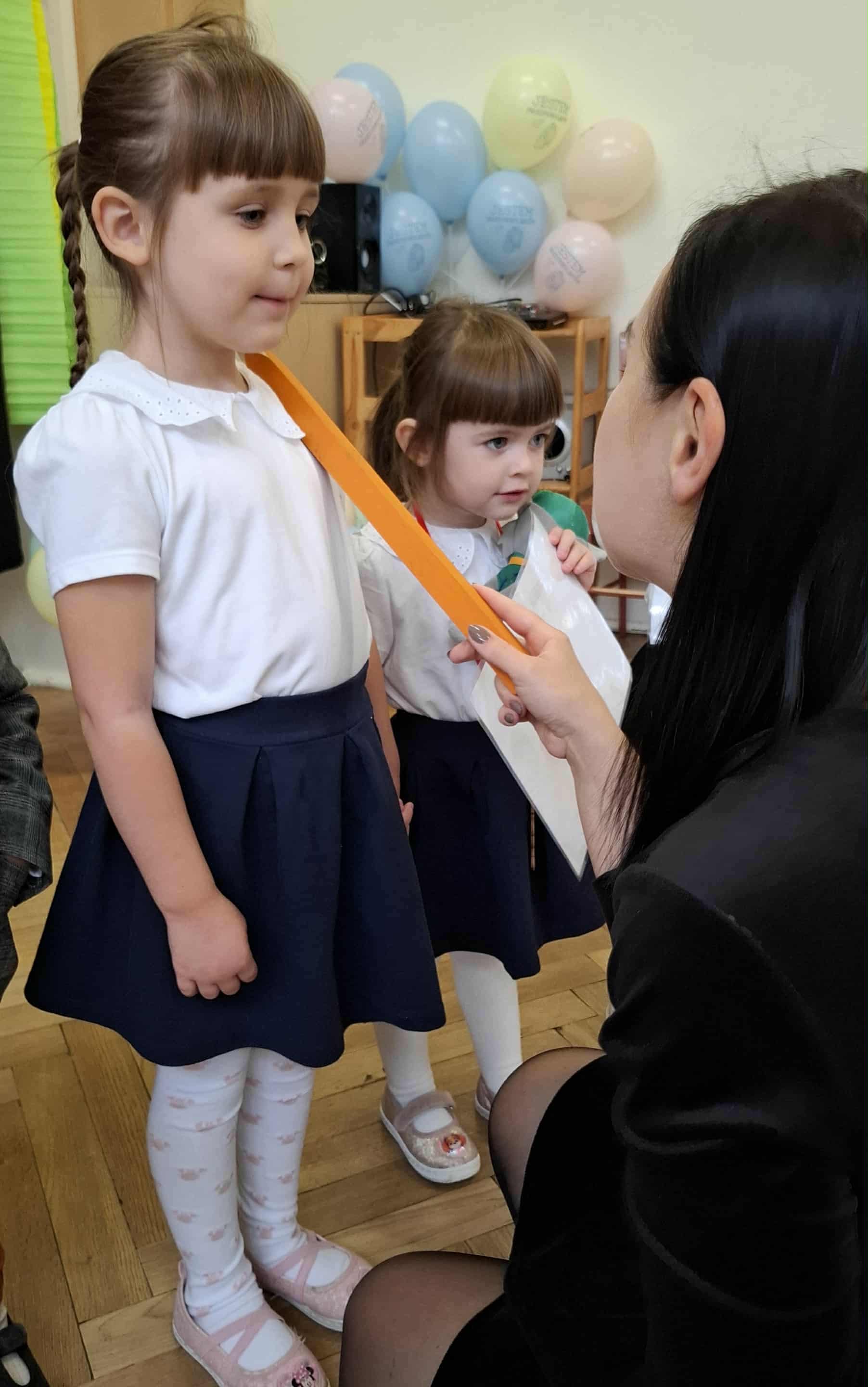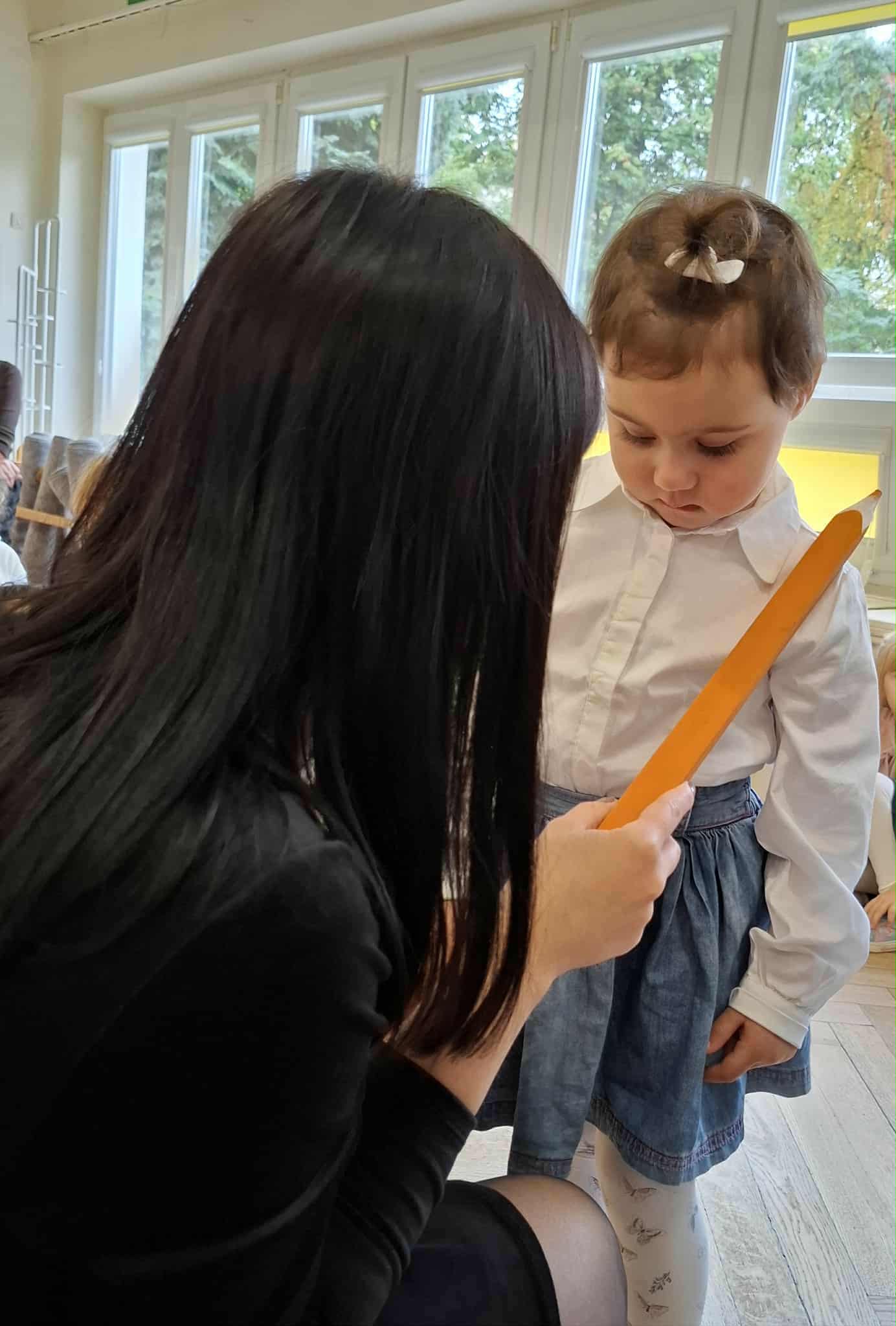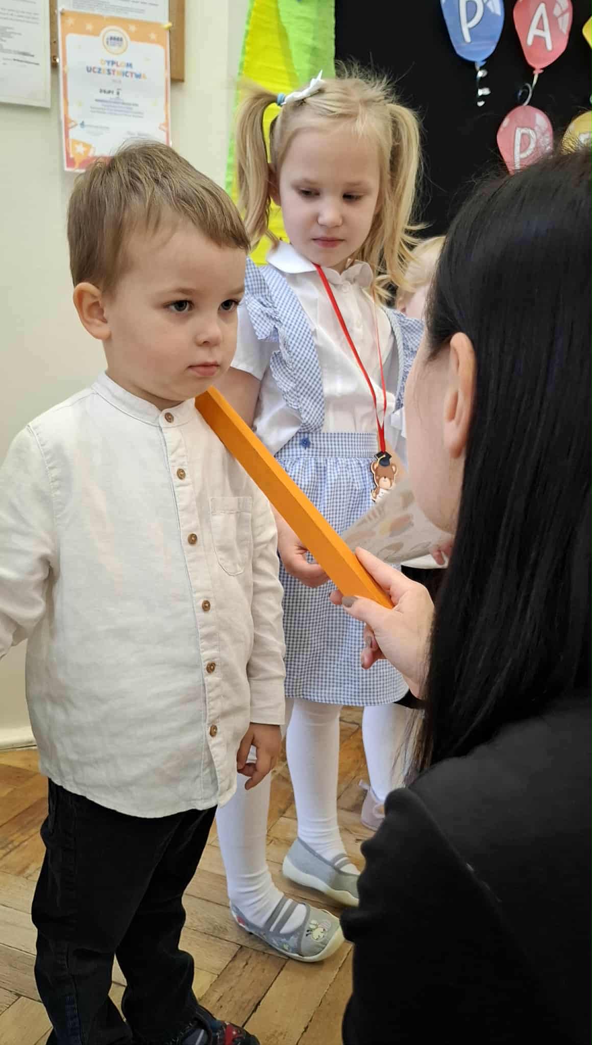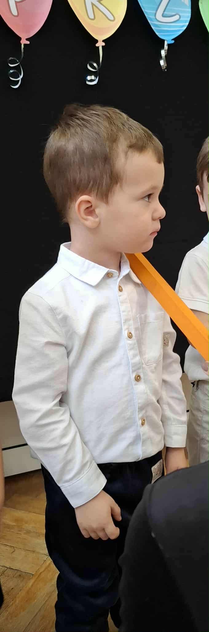 i koleżankami, słuchać pani i pomagać innym, będzie dzielnym przedszkolakiem. Następnie dzieci pasowane zaśpiewały piosenkę „Jestem przedszkolakiem”. Po części artystycznej nastąpił akt pasowania, czyli dotknięcia ramienia każdego przedszkolaka ogromną kredką przez panią Dyrektor. Na pamiątkę tego ważnego wydarzenia każdy przedszkolak otrzymał dyplom pasowania, medal z misiem oraz kolorowy balon.