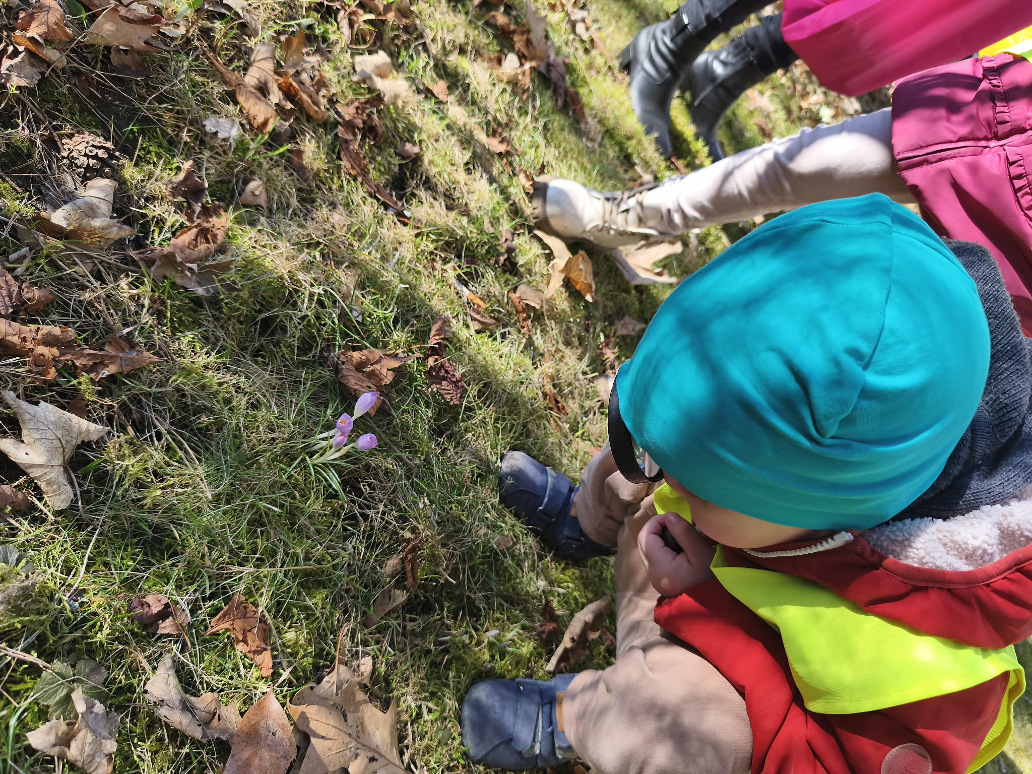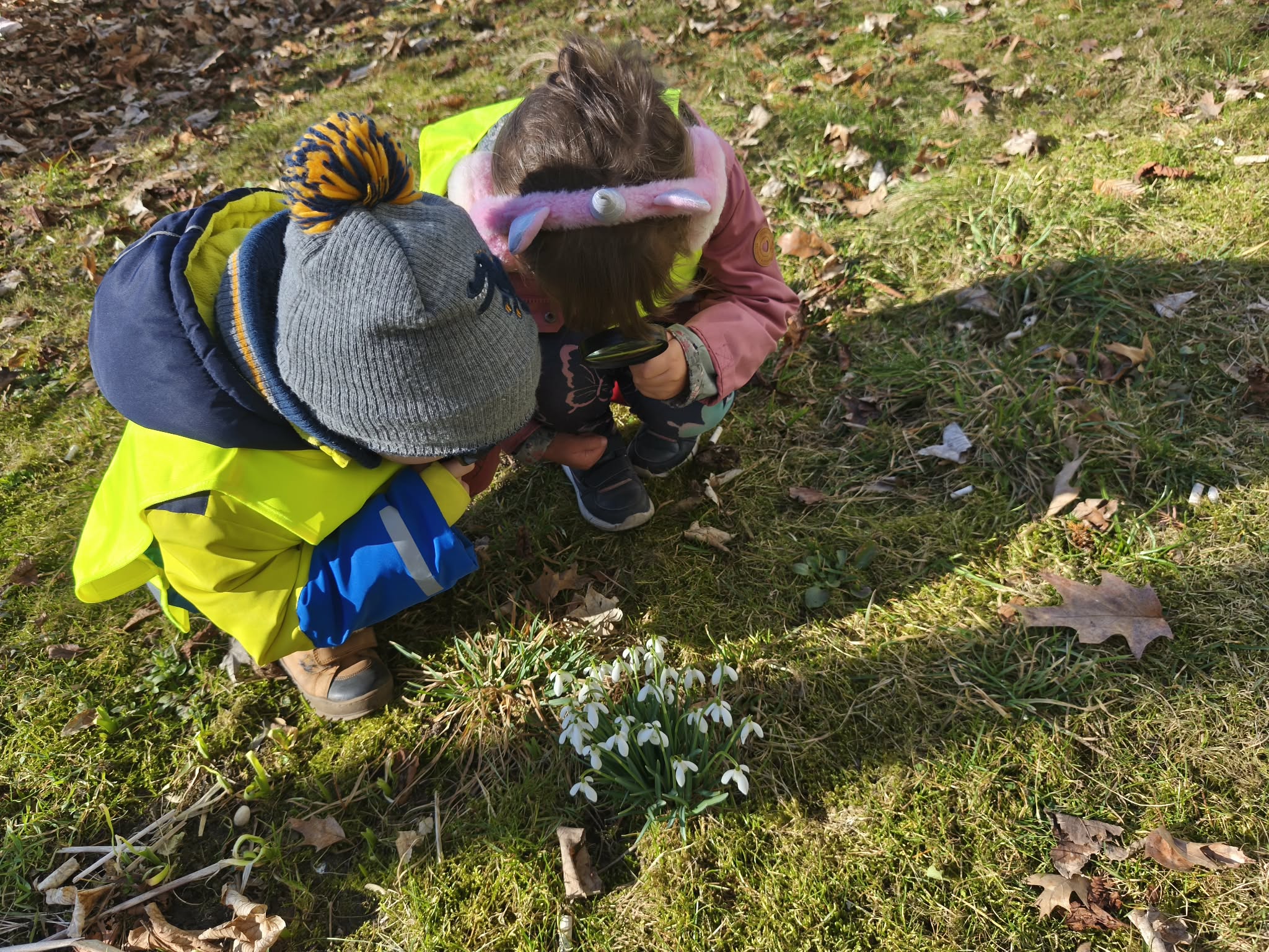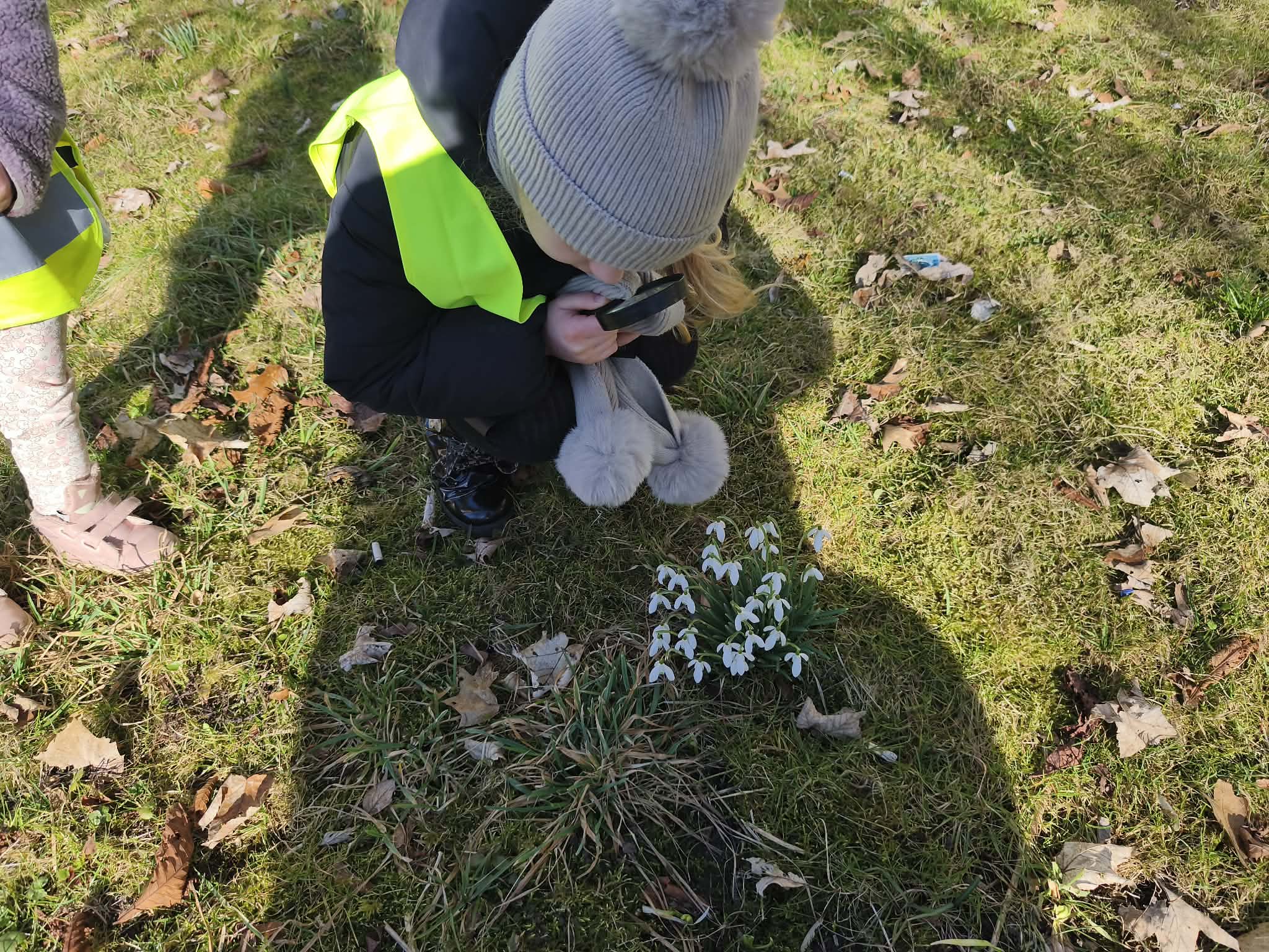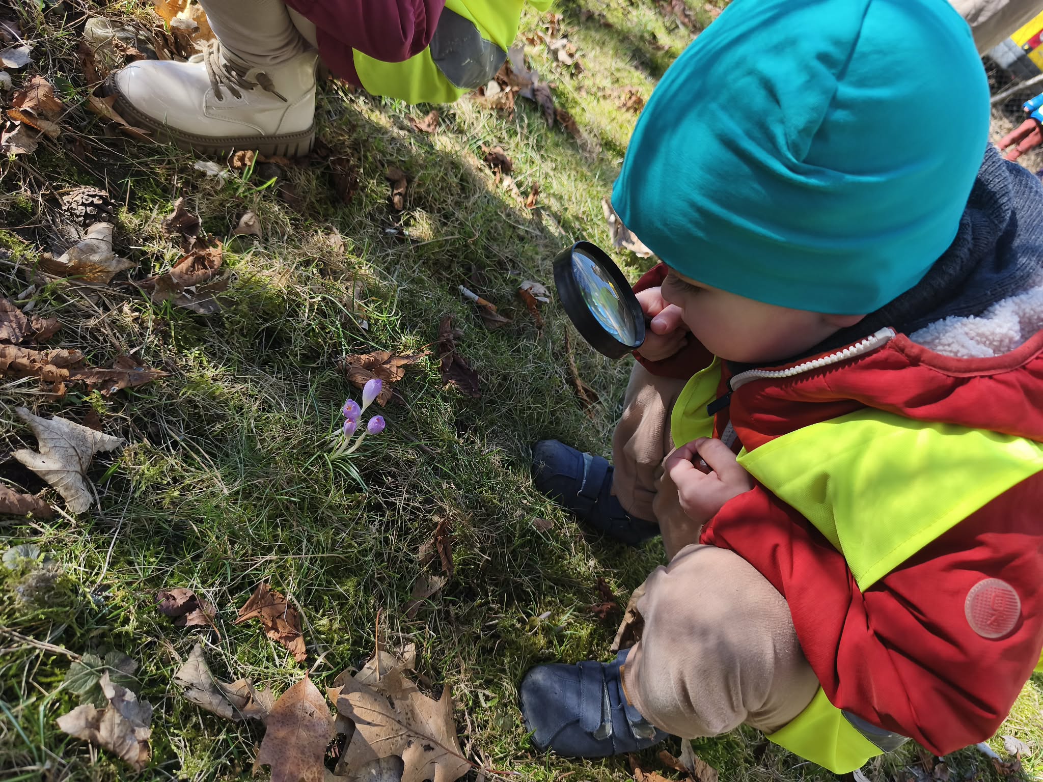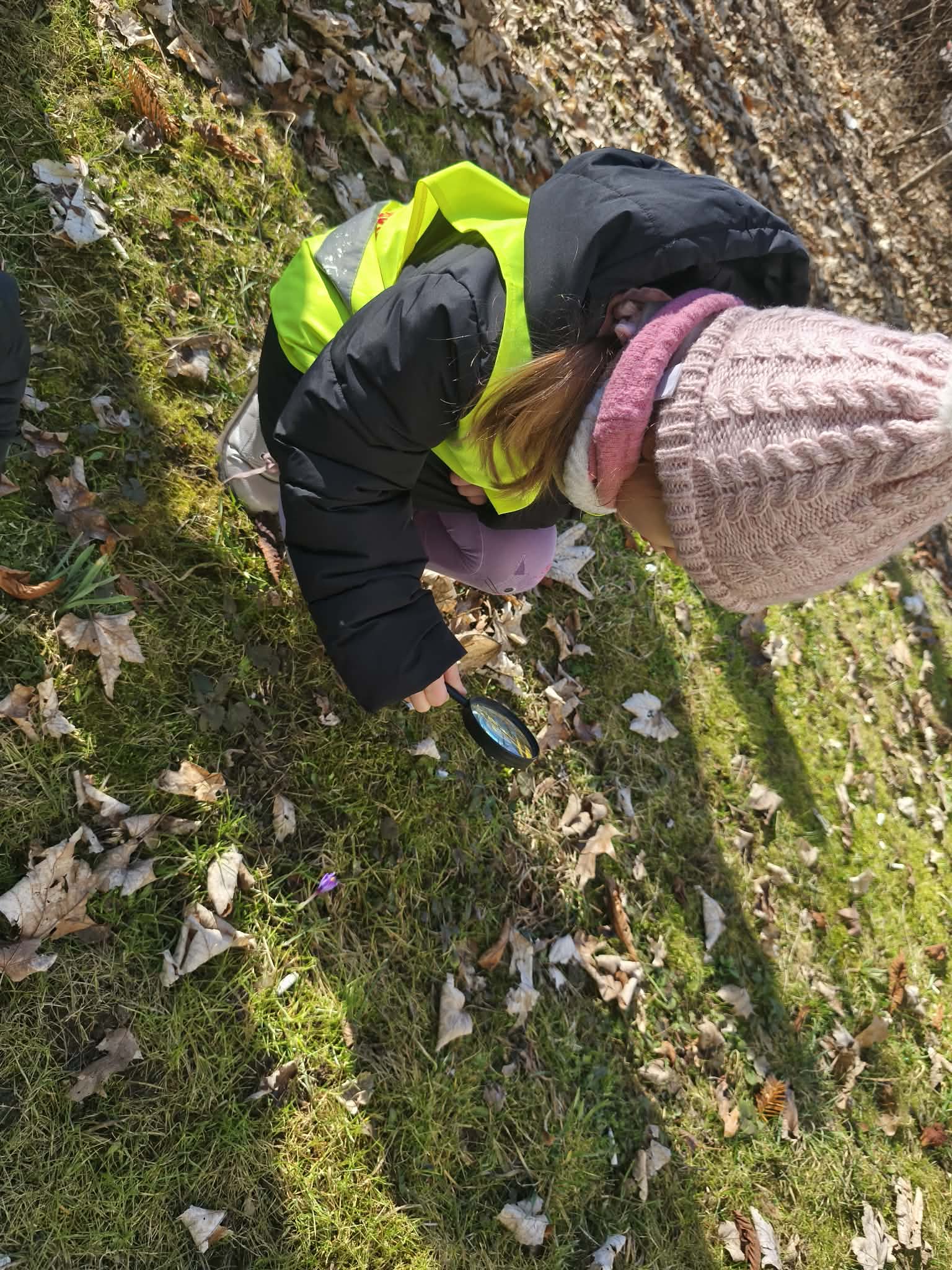Szukając źródeł dymu, naszą uwagę przyciągnęły pierwsze, radosne oznaki wiosny. Pod lupą oglądaliśmy delikatne przebiśniegi i kolorowe krokusy, a na drzewach wypatrzyliśmy już puszyste pąki magnolii.