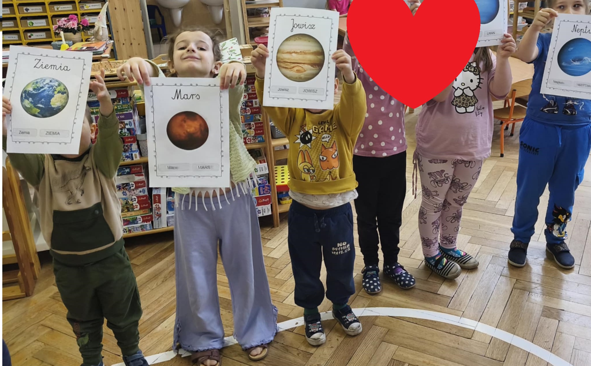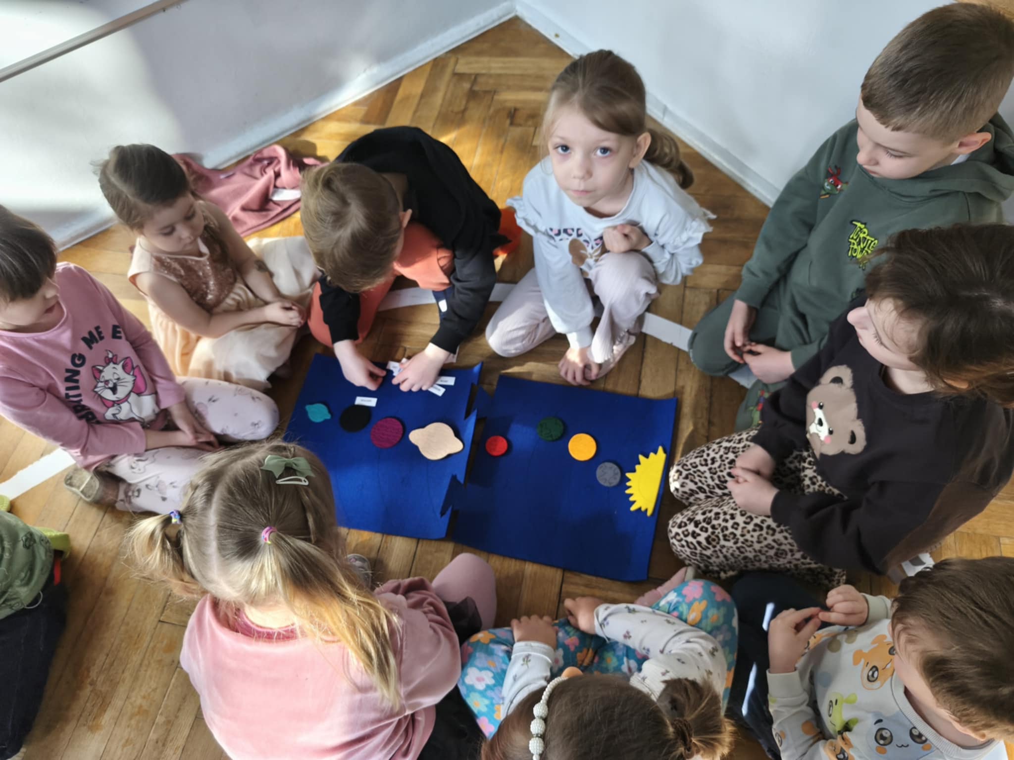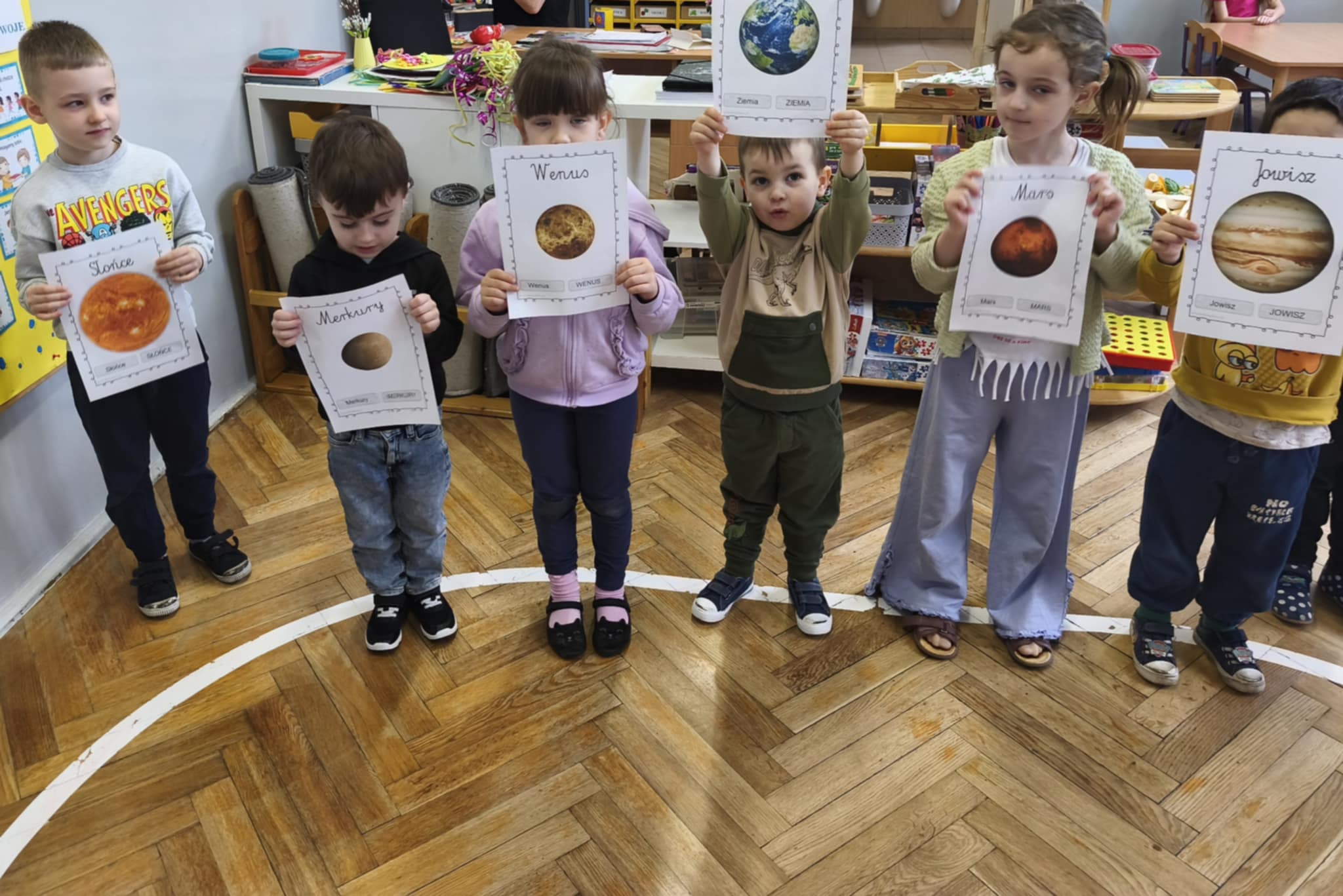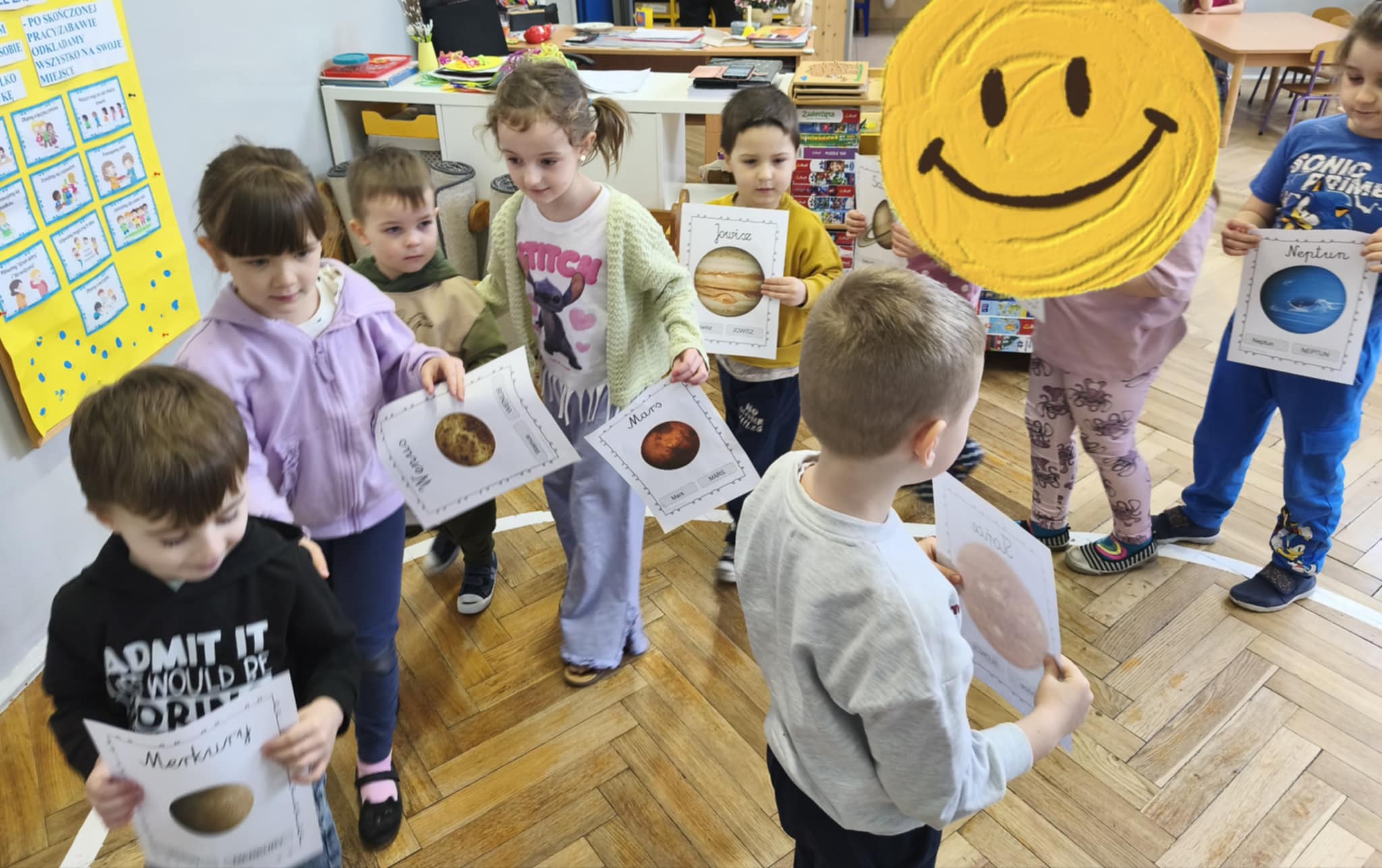 W tym tygodniu nasze przedszkolaki wyruszyły w wielką podróż do gwiazd. Dzieci poznały bądź utrwalały imiona wszystkich planet i dowiedziały się, że nasza Ziemia zawsze krąży wokół gorącego Słońca.